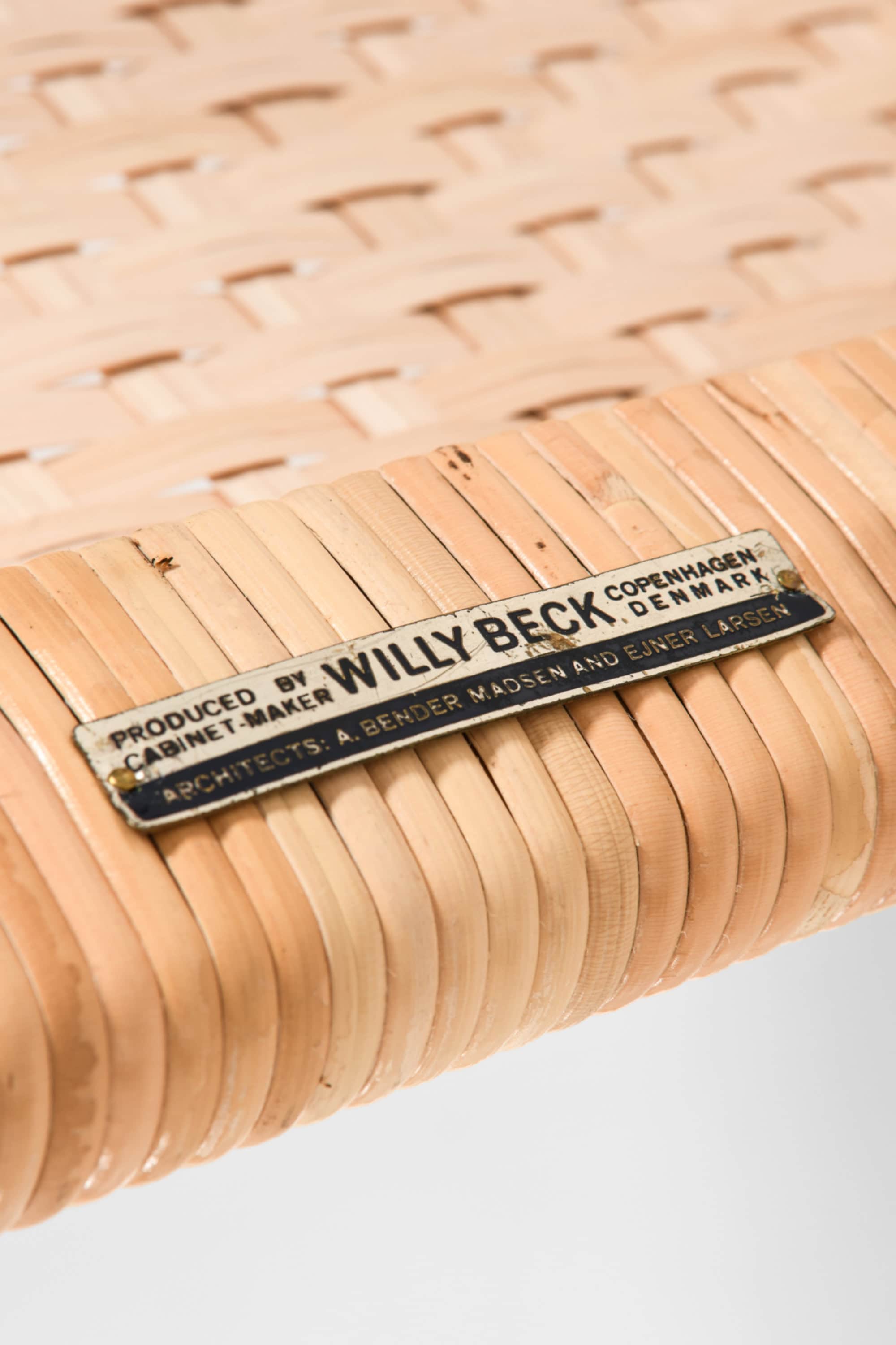 The overall construction demonstrates the high standard of Danish cabinetmaking during the period, particularly the precision and finish associated with the workshop of Willy Beck. The chair’s proportions and transitions between materials reveal the influence of the Danish tradition of human-centered design, where aesthetic refinement and functional clarity are held in equal balance.