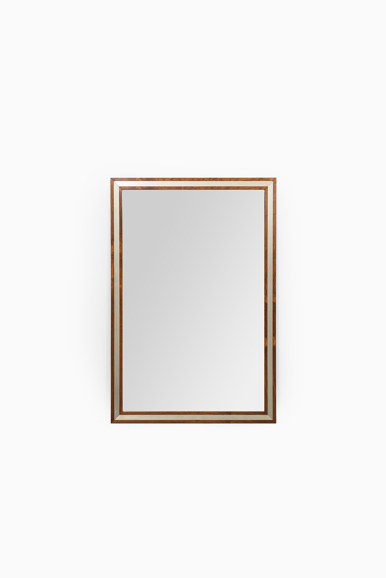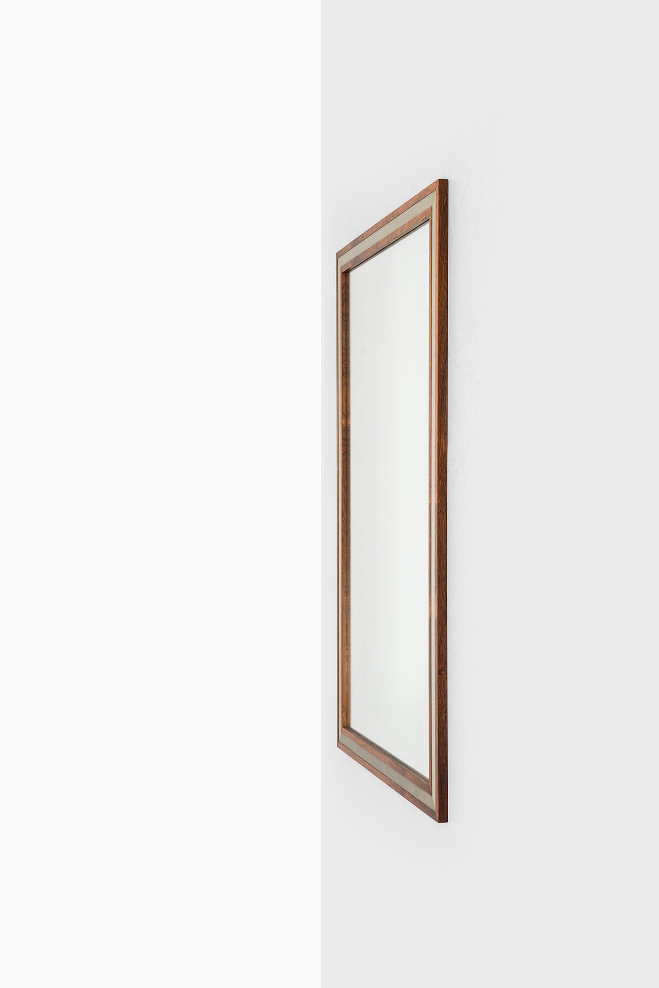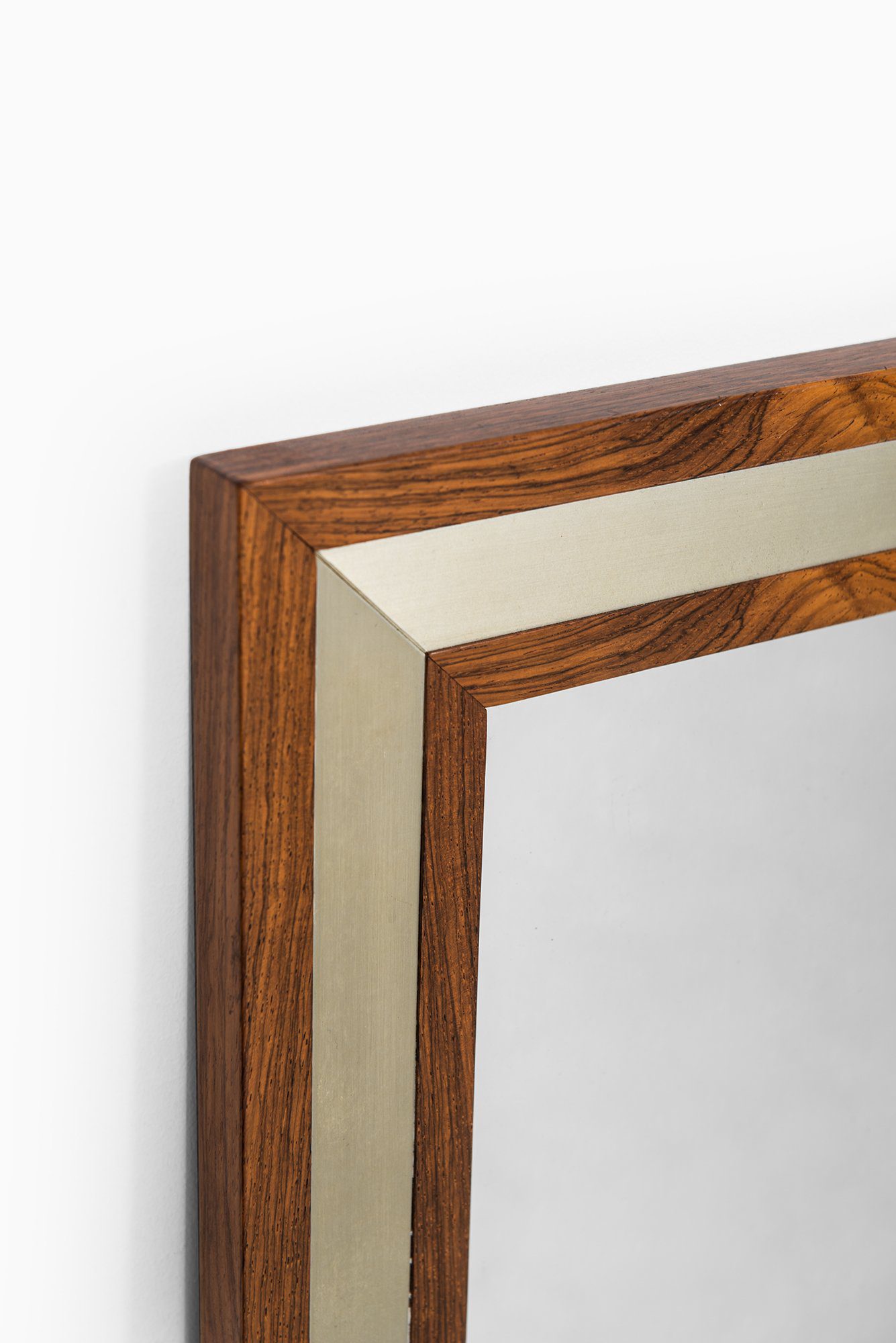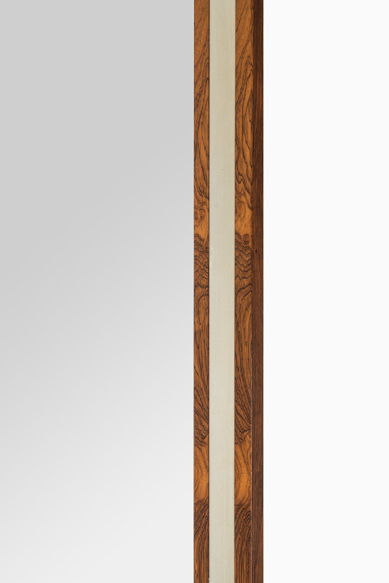 This rare and large mirror was designed and produced by Aksel Kjersgaard in Odder, Denmark, during the 1960s. The mirror features a frame in richly grained rosewood with a brushed aluminium inlay running along the inside edge, adding a refined contrast and an elegant, linear detail. The combination of the warm, natural wood grain with the cool, matte metal creates a balanced composition characteristic of Danish modern design, where materiality and proportion were central concerns.