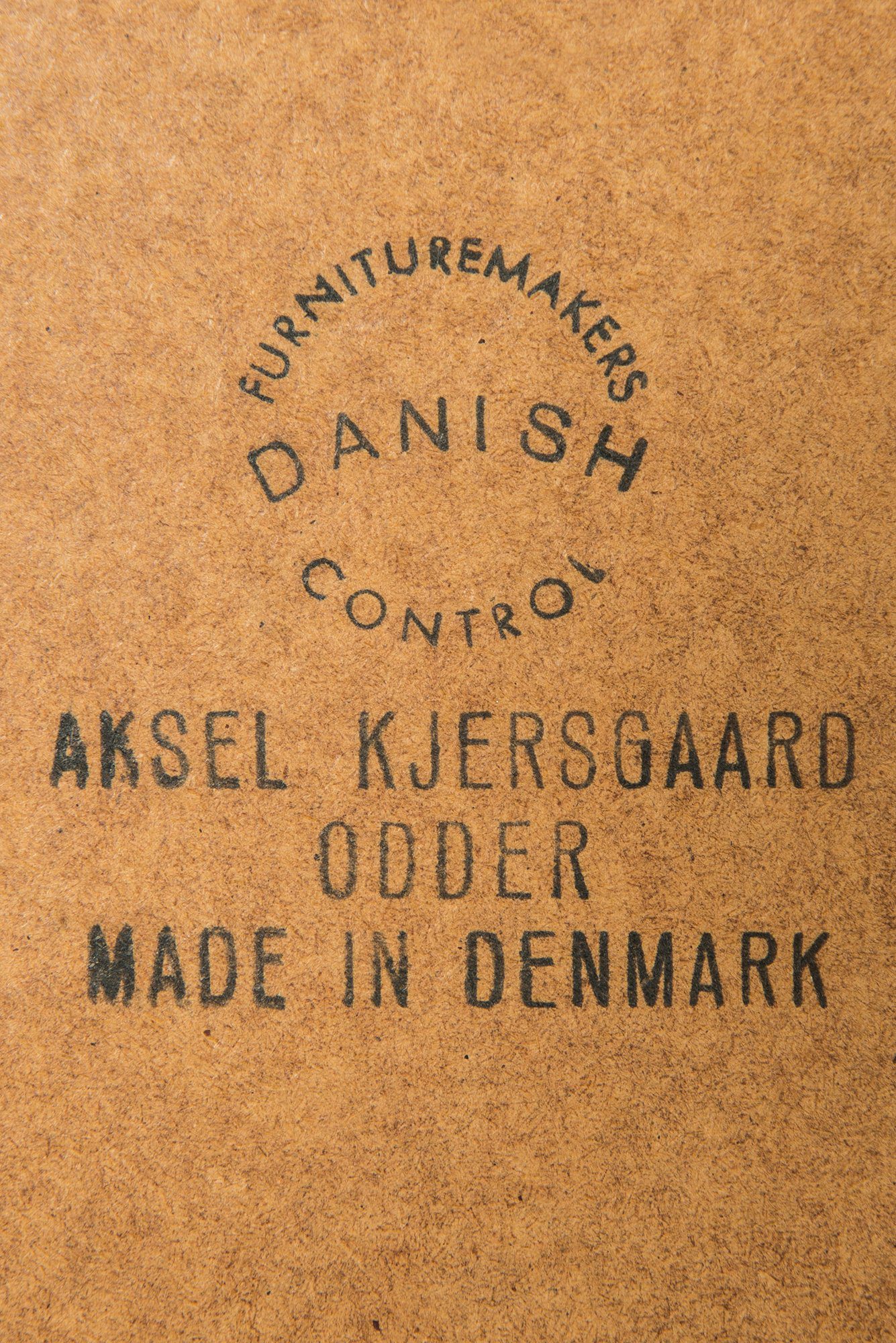 Aksel Kjersgaard was a respected Danish cabinetmaker, known for producing finely crafted furniture and mirrors that often featured subtle yet sophisticated design elements. His work, marked with the Danish Furnituremakers’ Control stamp, reflects the quality standards associated with mid-century Danish woodworking traditions.