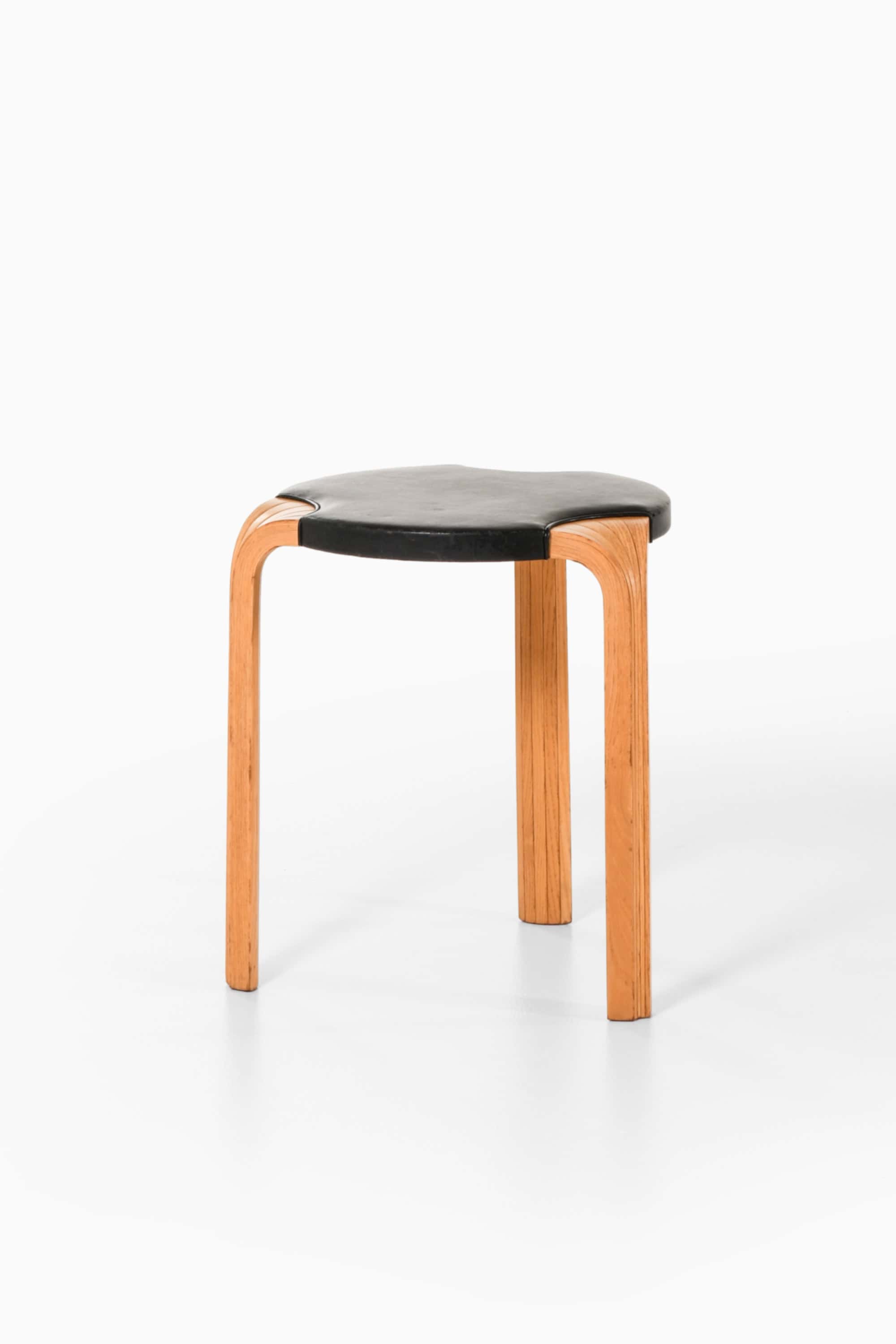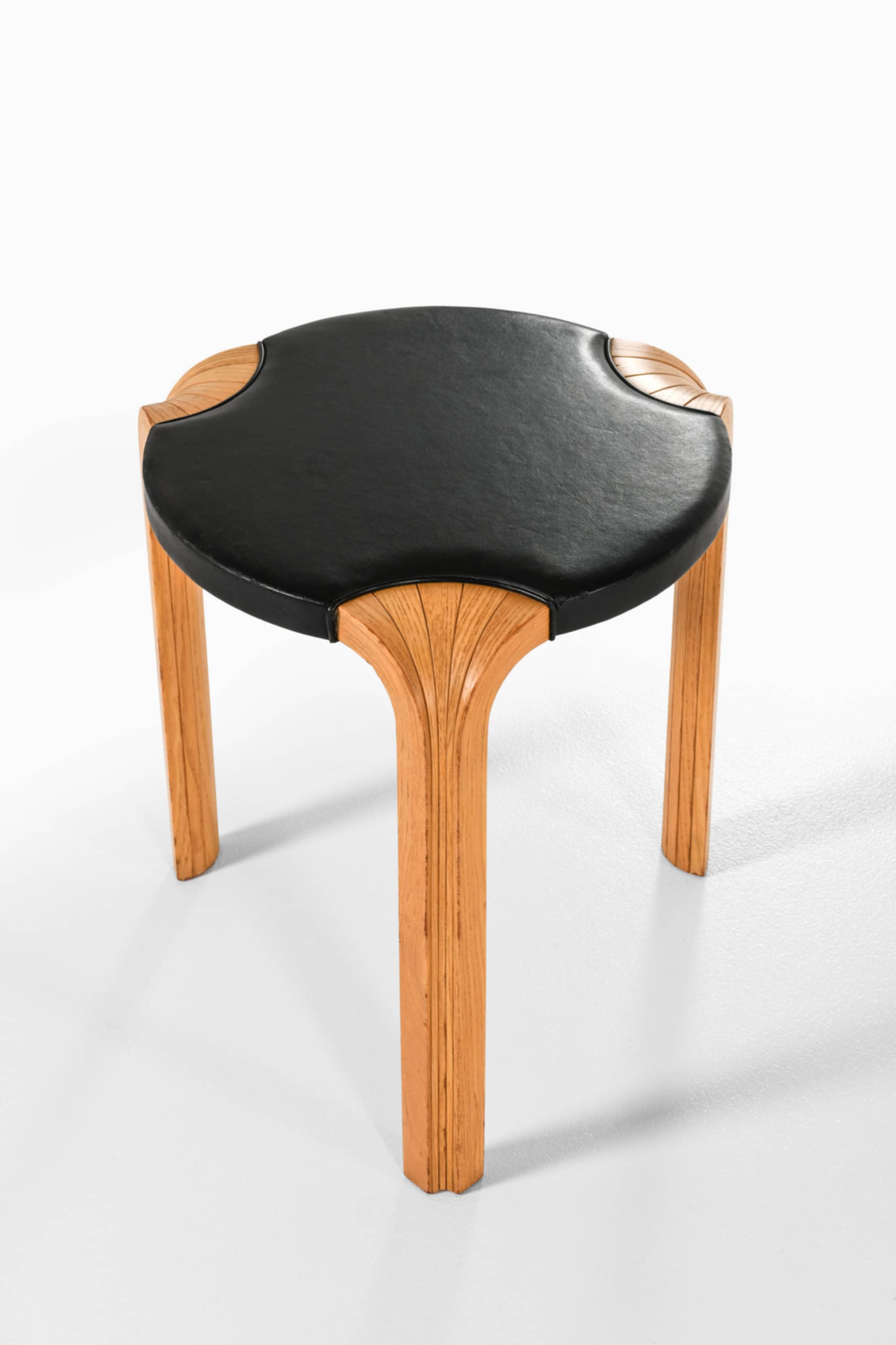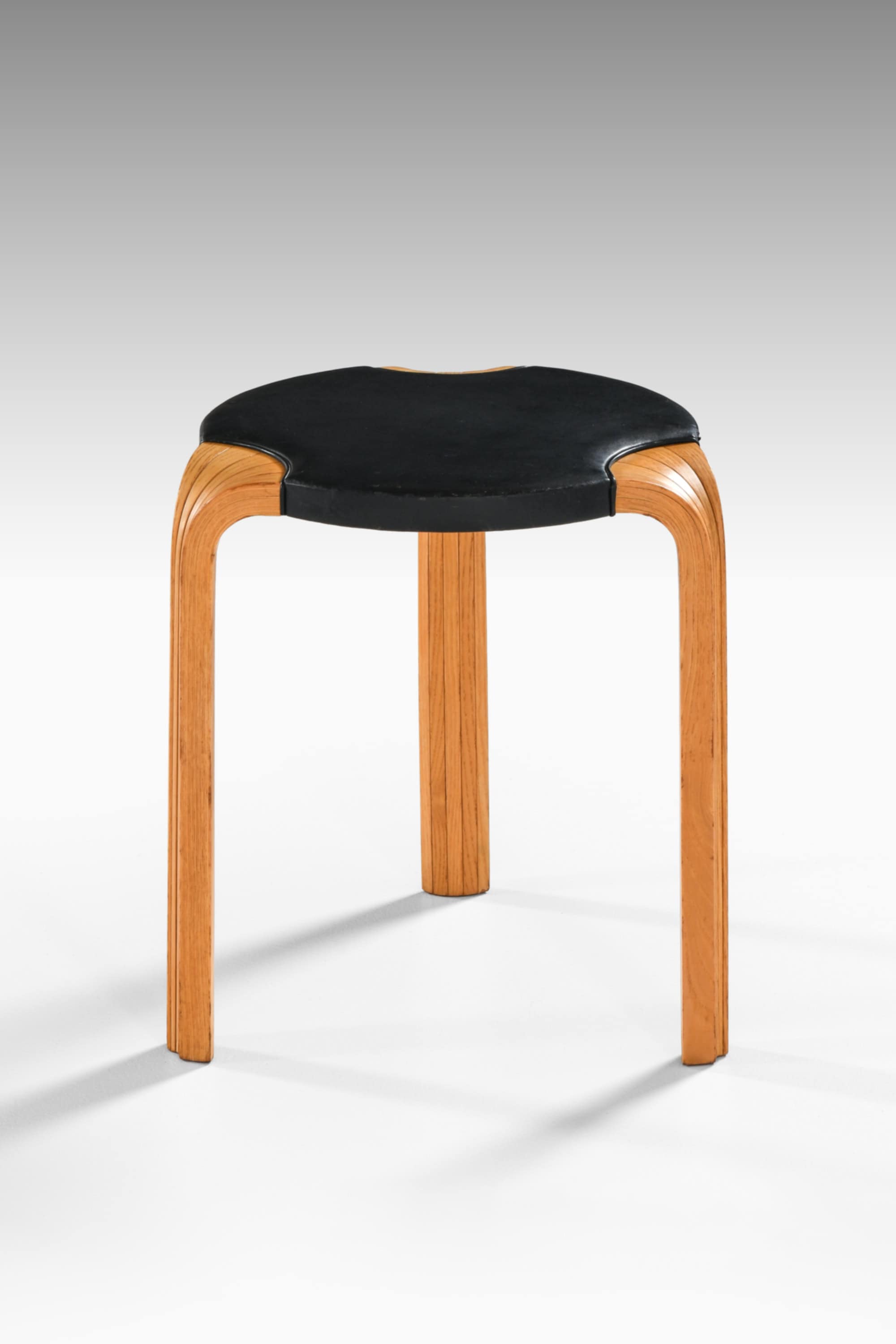 This stool, model X 602, was designed by Alvar Aalto and produced by Artek in Finland. It represents one of Aalto’s explorations into bentwood construction and functional seating, combining practicality with a distinctive sculptural character. Aalto’s designs often challenged traditional furniture-making techniques, and this model is a clear example of his continuous refinement of laminated birch and bentwood methods that became synonymous with Finnish modernism.
