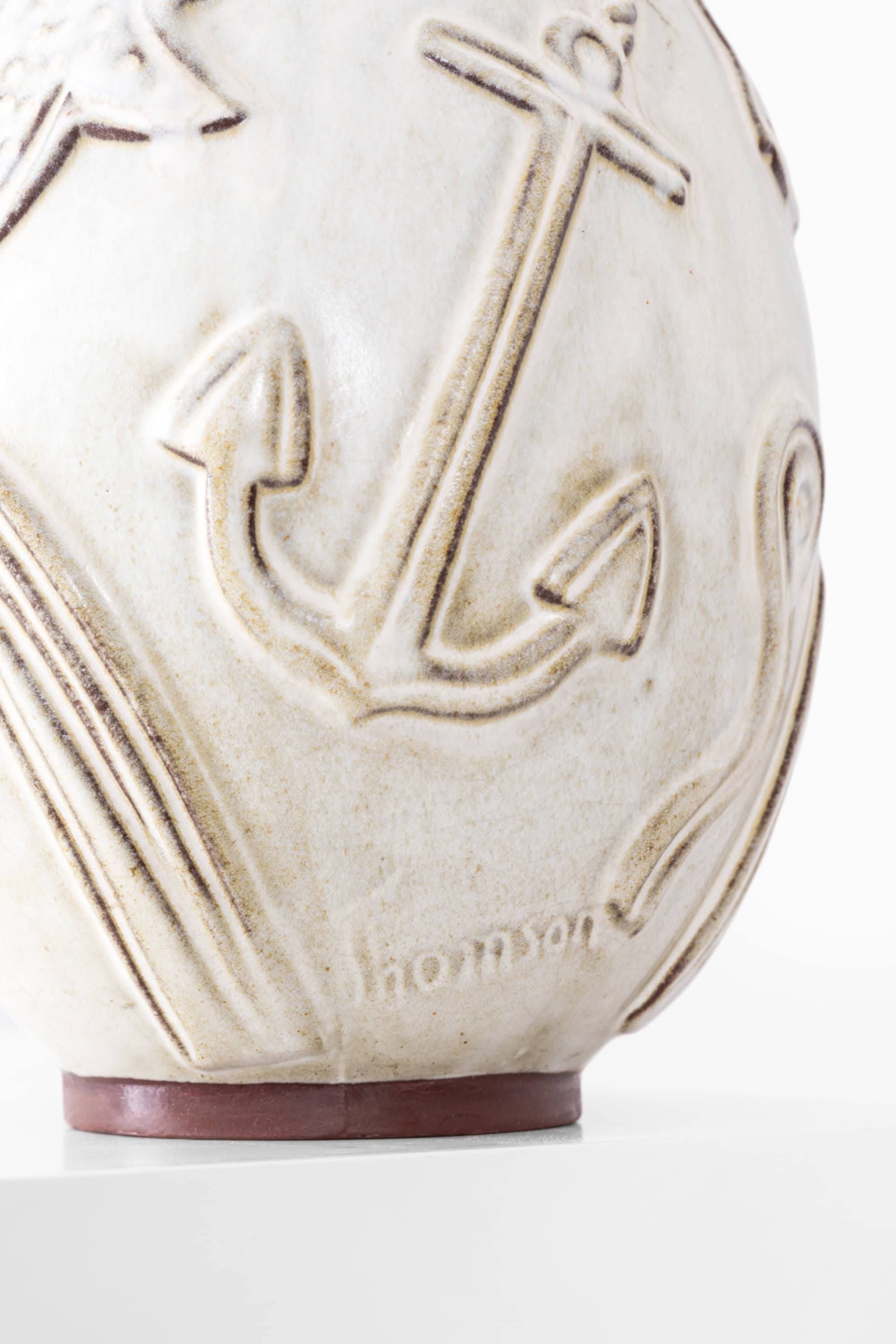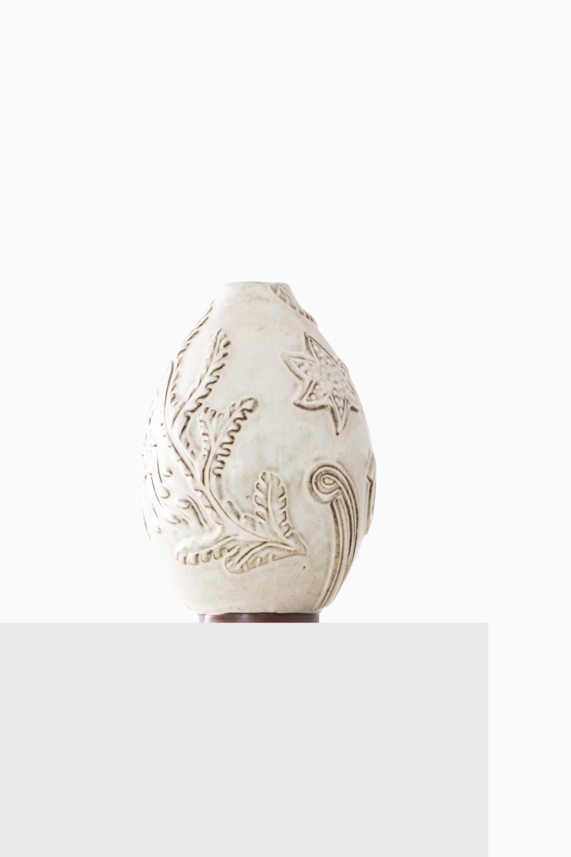 Ceramic vase executed in earthenware designed by Anna-Lisa Thomson and produced by Upsala Ekeby in Gefle, Sweden during the 1940s. The piece reflects Thomson’s distinctive ability to merge stylized natural motifs with softly sculptural forms, characteristic of her work in earthenware.