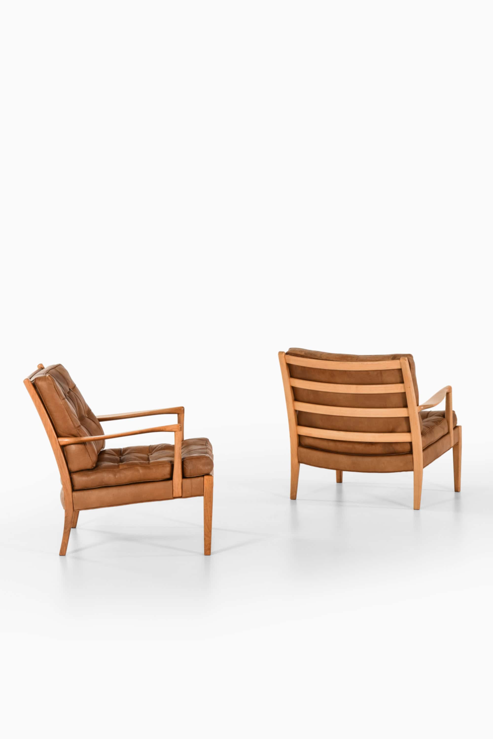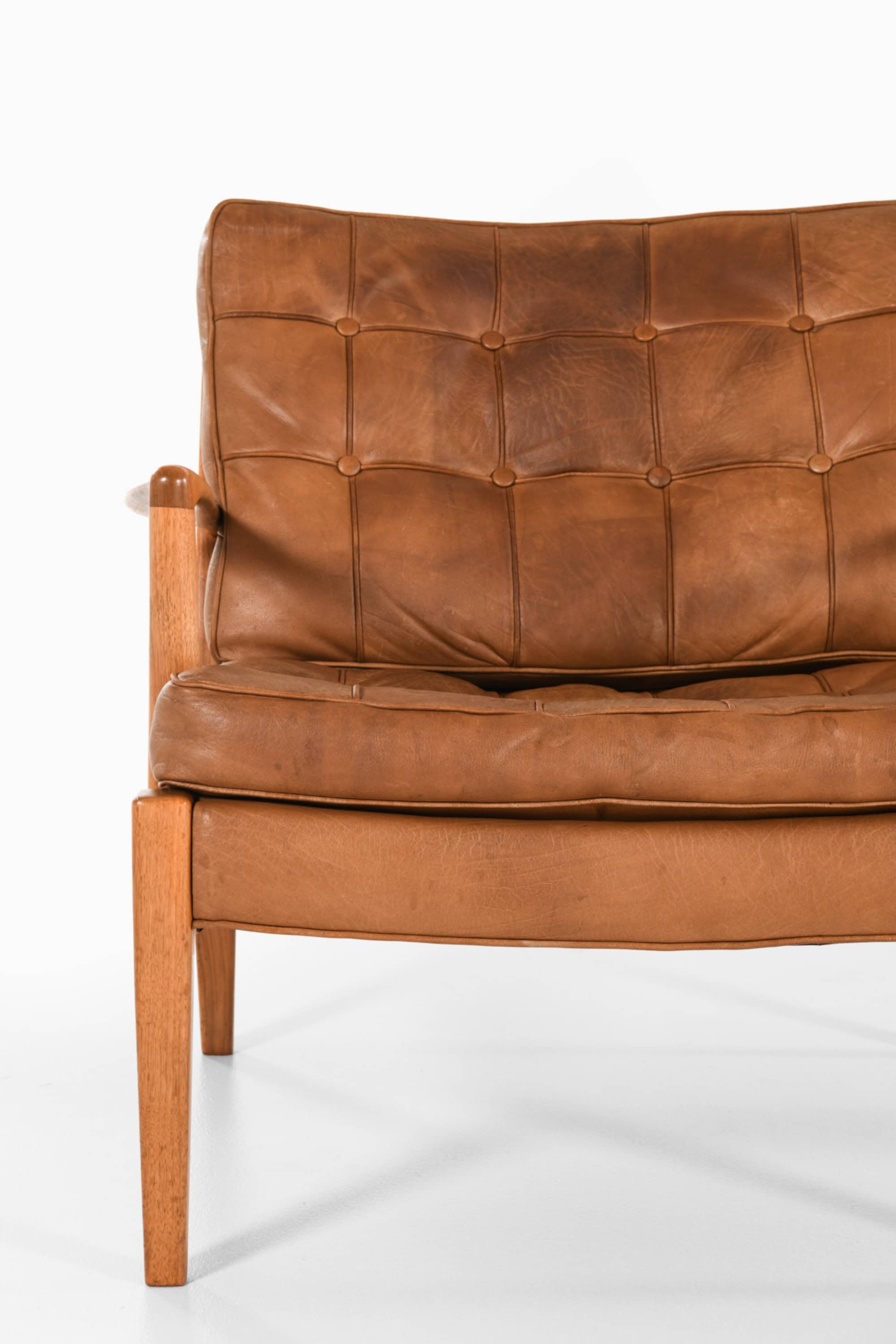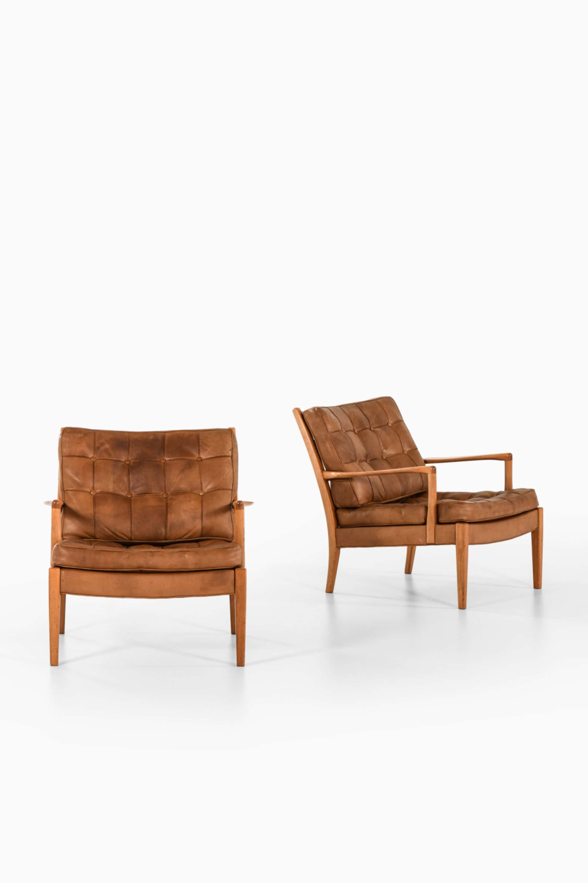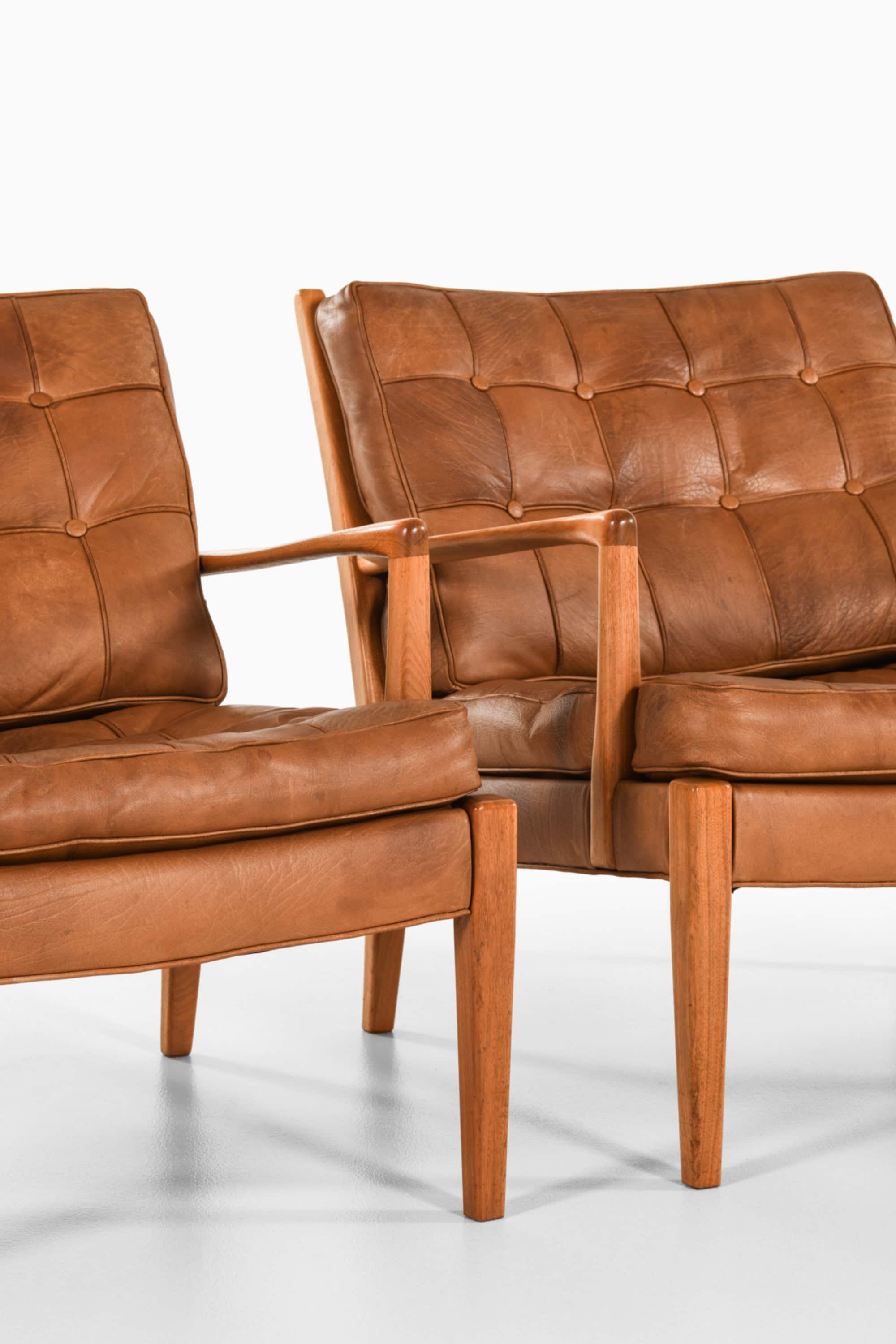 This rare pair of Löven easy chairs was designed by Arne Norell during the 1960s and produced by Arne Norell AB in Aneby, Sweden. The model is distinguished by its simple yet refined proportions, generous cushions, and the characteristic combination of natural materials. The Löven chair reflects Norell’s philosophy of creating seating that is both visually elegant and highly comfortable, emphasizing timeless design through craftsmanship and materials.