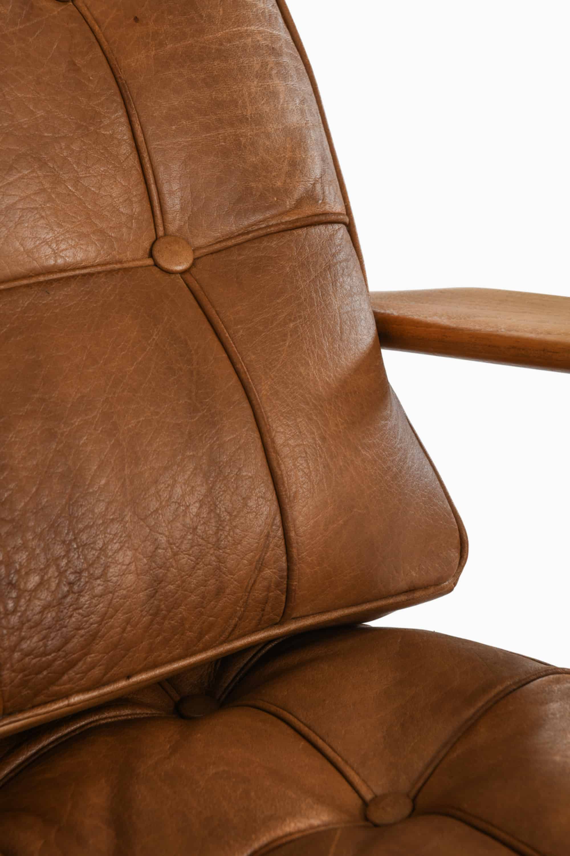 Arne Norell (1917–1971) was a Swedish designer known for his versatile approach to furniture, where modern Scandinavian ideals met an appreciation for traditional craft techniques. He founded his own workshop, Arne Norell AB, in the town of Aneby in 1958, producing furniture that often emphasized strong wooden structures combined with supple leather upholstery. Many of his designs, including the Löven chair, are celebrated for their balance of comfort and refined form, qualities that remain highly regarded in Scandinavian modern design.