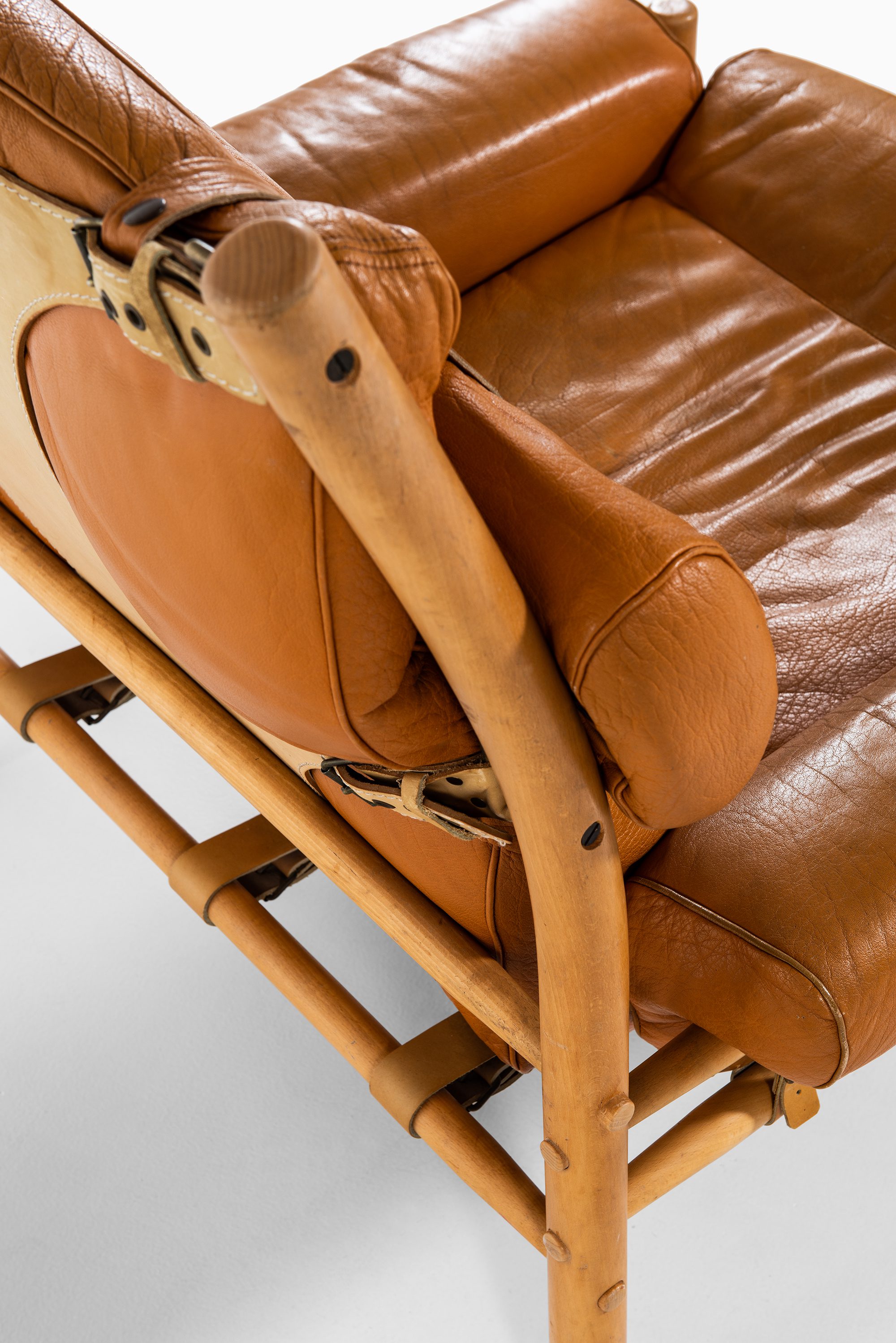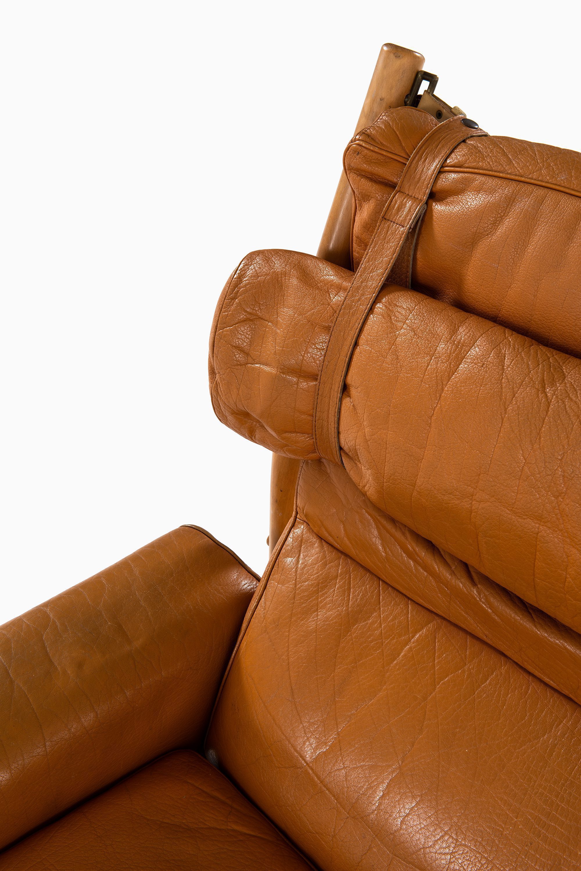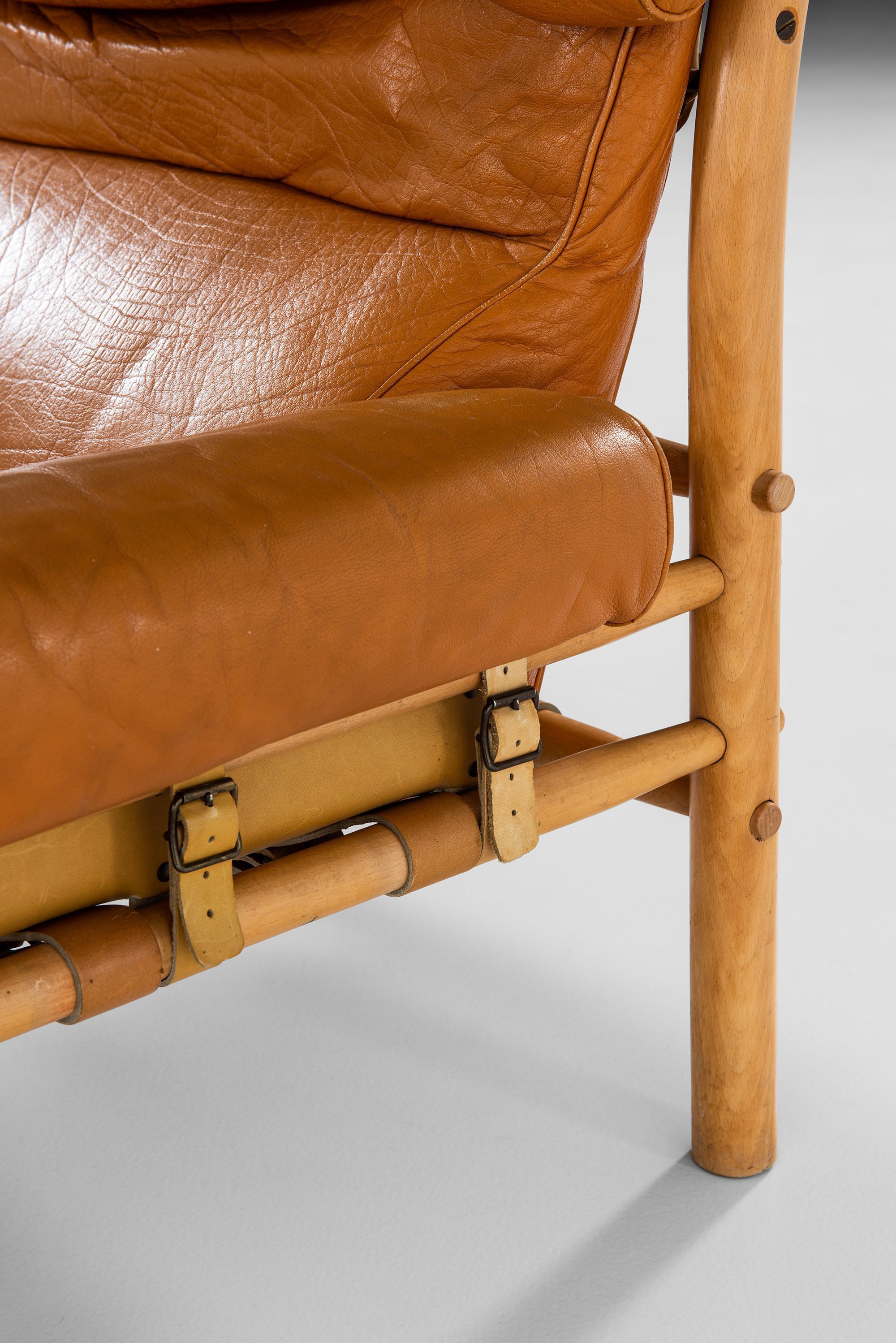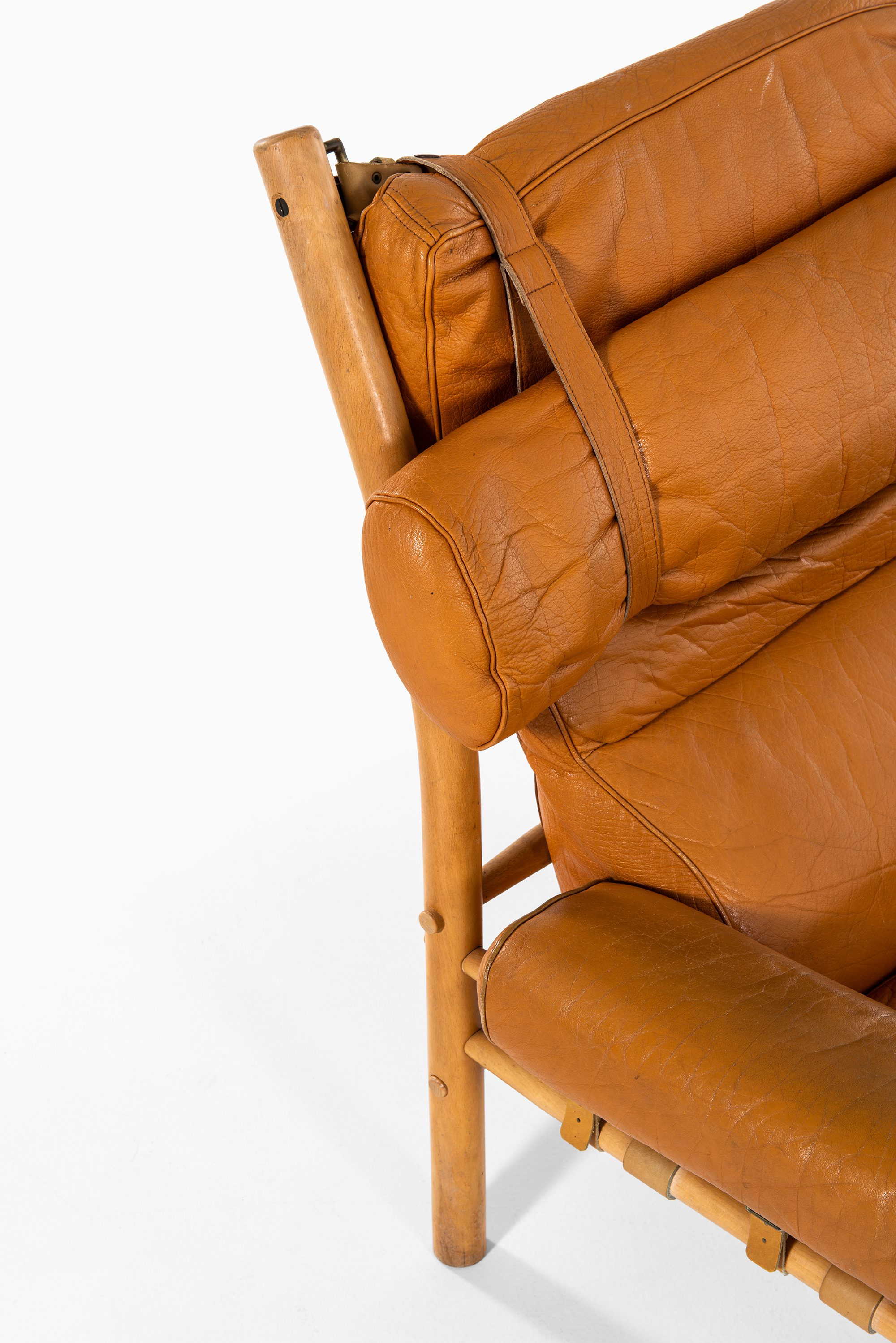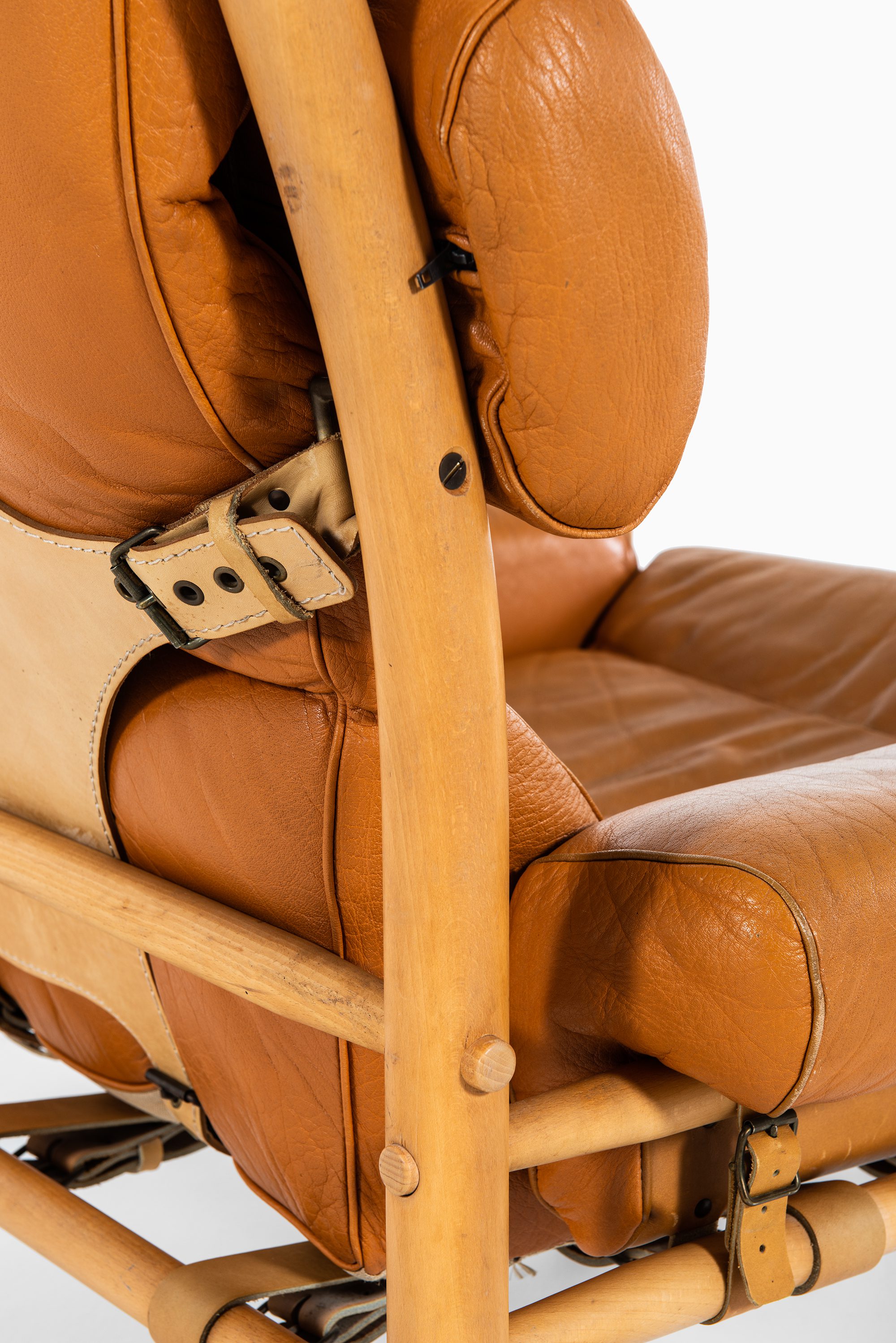The Inca model, designed by Arne Norell in the 1960s, is one of his most recognizable and enduring furniture designs. This pair of easy chairs with matching stools was produced by Arne Norell AB in Sweden and demonstrates his characteristic approach of combining generous comfort with robust yet elegant construction.