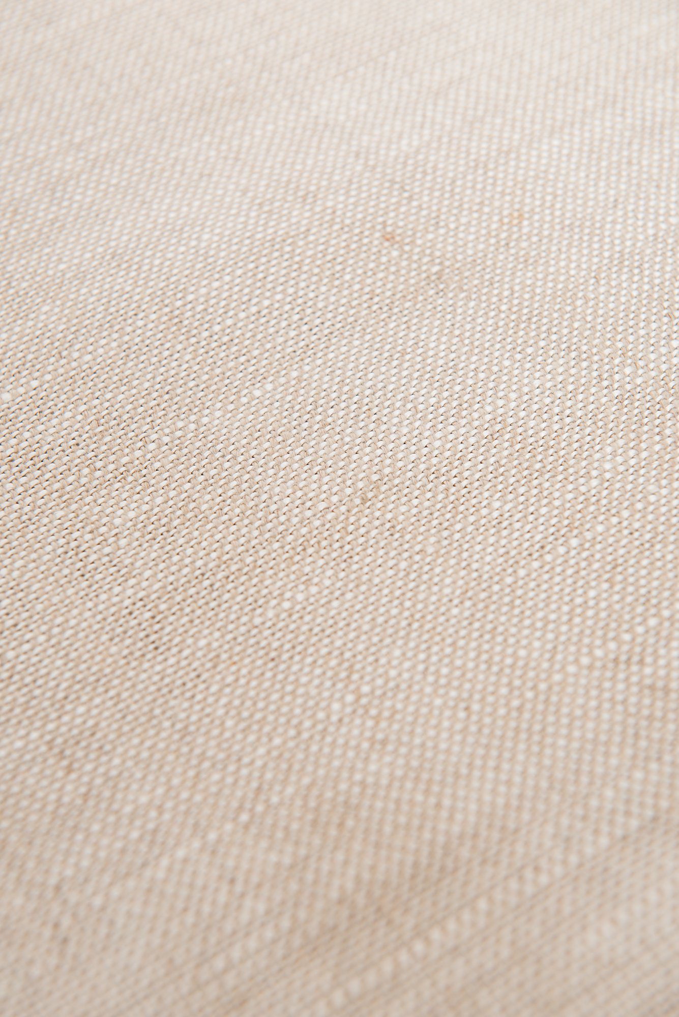 The frames are made of richly grained rosewood, displaying the natural depth and variation of the wood with a warm, expressive tone. The construction emphasizes clean lines with a subtle sculptural quality, particularly visible in the tapering legs and gently curved backrest supports. The seat and back are upholstered in the original linen fabric, which introduces a soft, tactile contrast to the dark rosewood. The fabric retains its authenticity but shows visible signs of use and light staining, consistent with age and careful domestic use.
