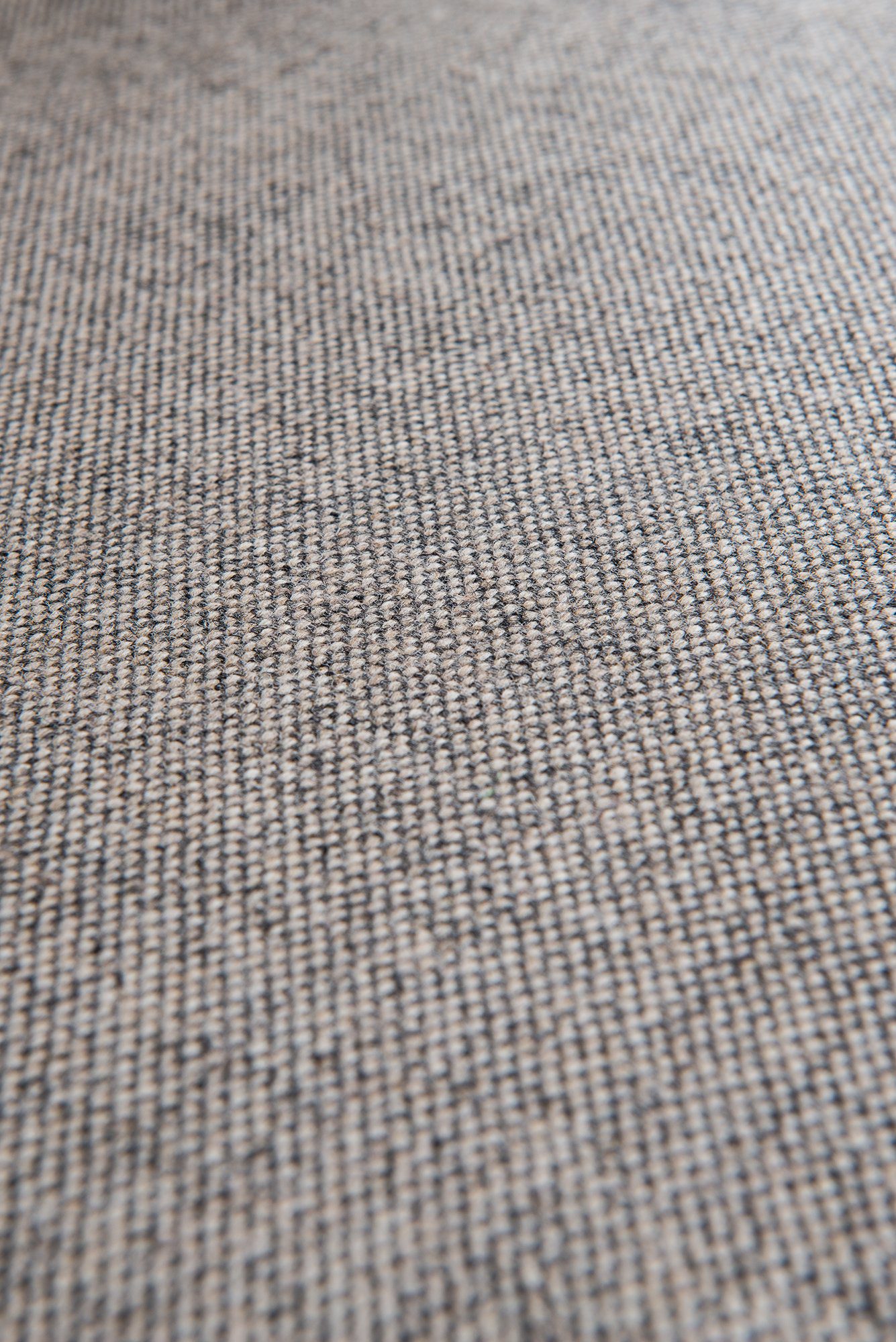 The sofa is designed with two adjustable backrest positions, a feature that combines comfort with functional sophistication. The structure is defined by softly tapered legs and angled supports, resulting in a light and dynamic silhouette. The teak armrests are smoothly curved and finely shaped, demonstrating precise joinery and tactile craftsmanship. The grey upholstery introduces a subtle contrast to the natural hues of the wood, emphasizing the sculptural quality of the frame while maintaining an overall harmonious appearance.