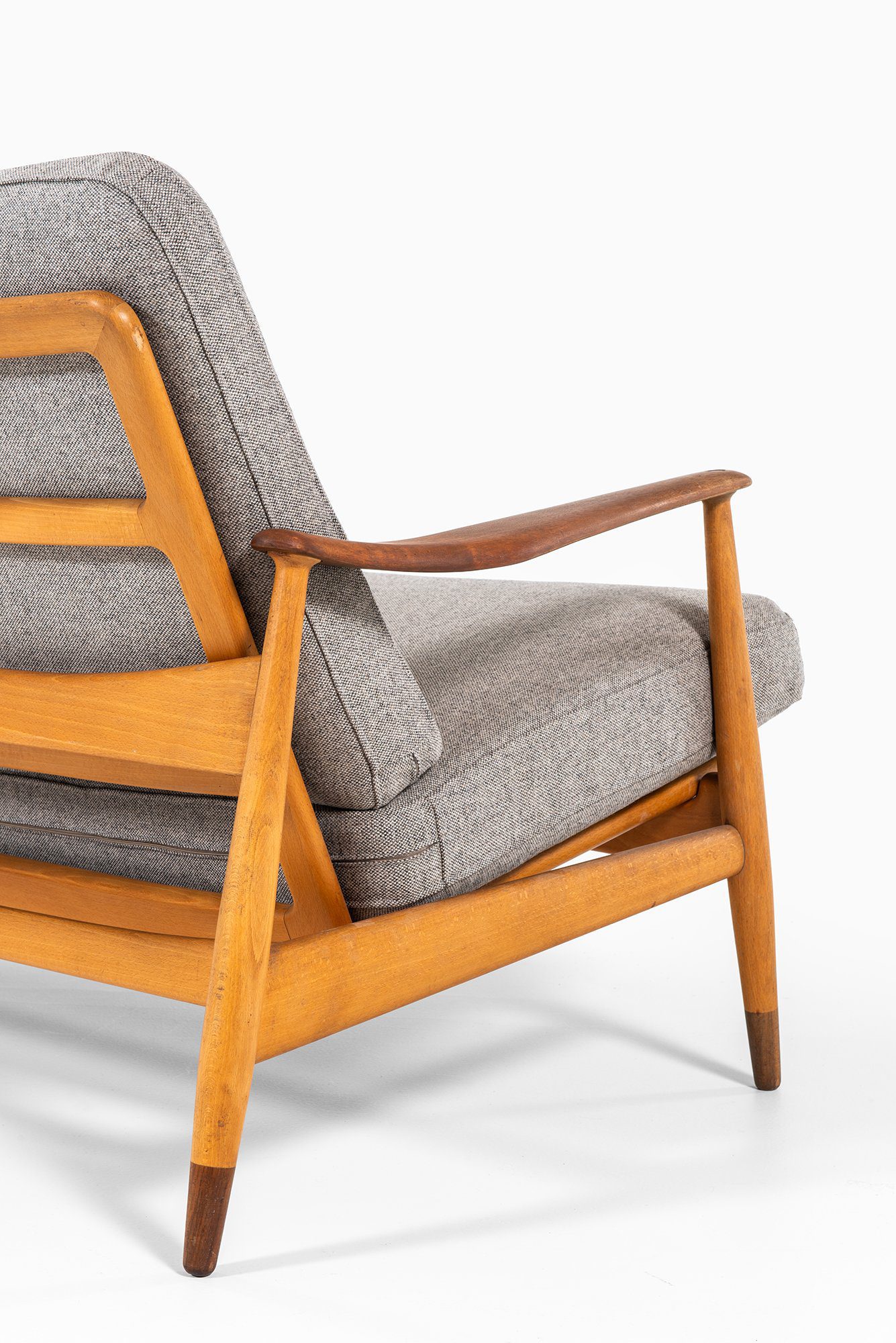This example is in excellent vintage condition with minor signs of wear consistent with age. The frame has developed a rich patina, and the newly upholstered cushions ensure both visual freshness and comfortable usability. The piece represents the timeless balance of function and form that defines Scandinavian mid-century design.