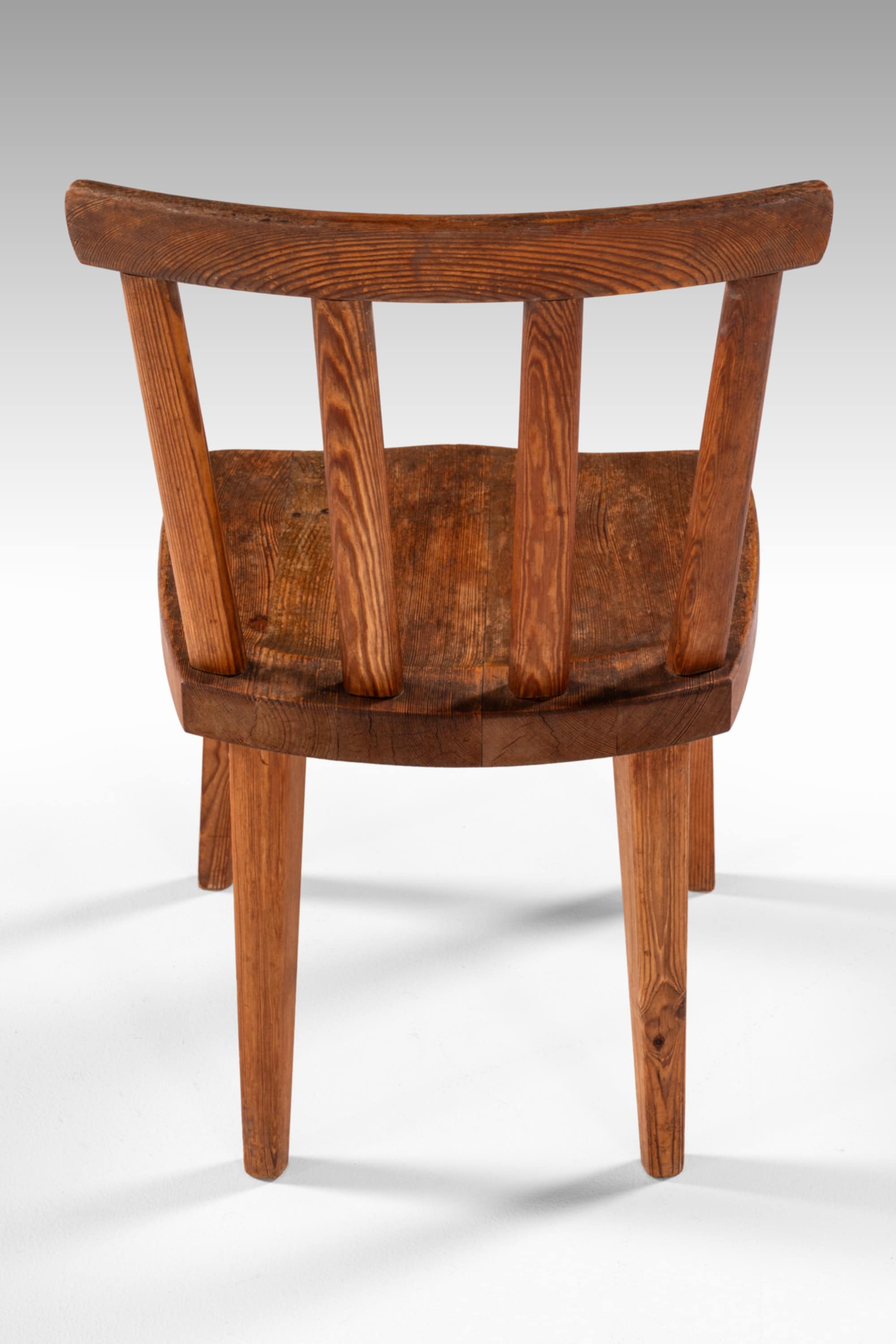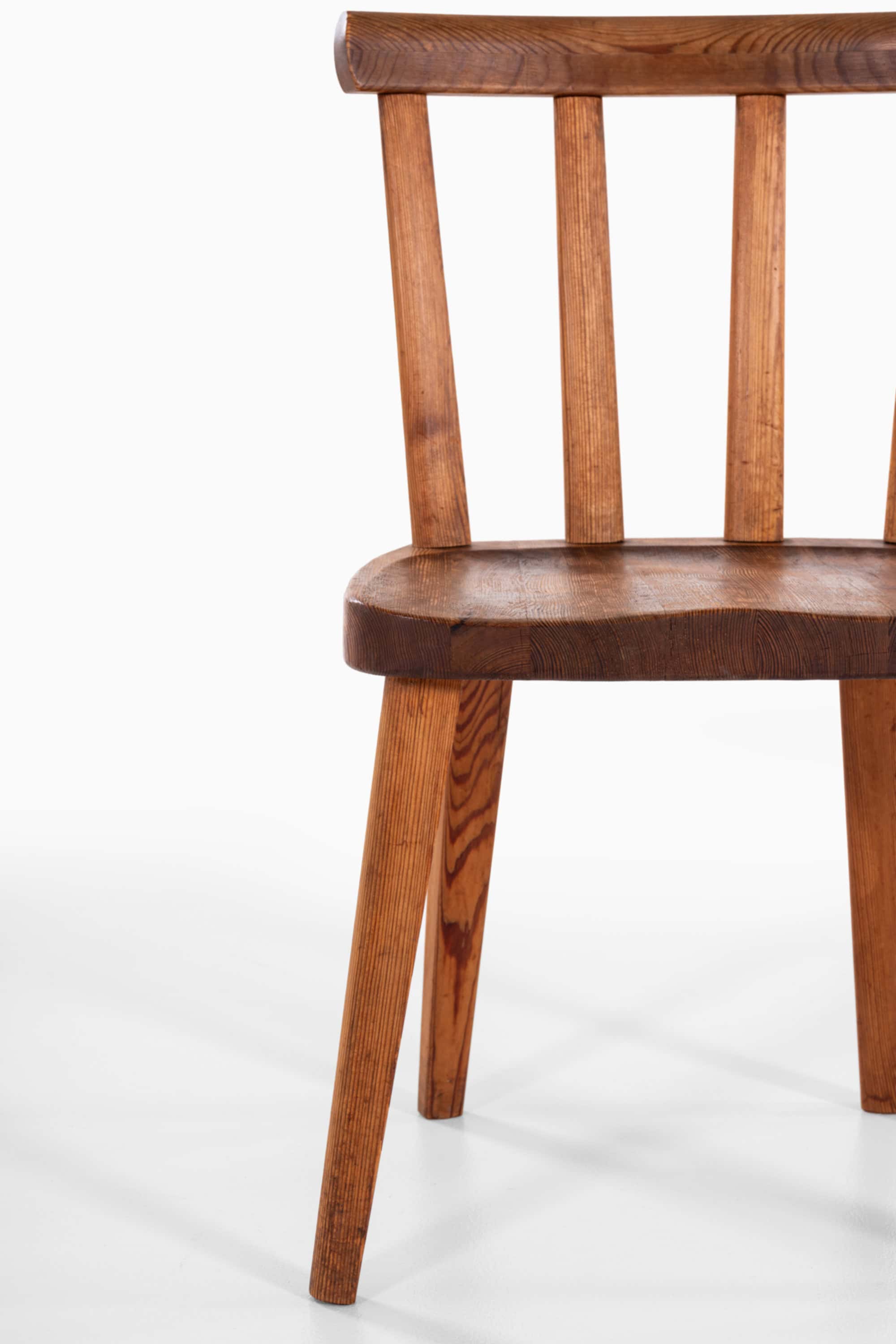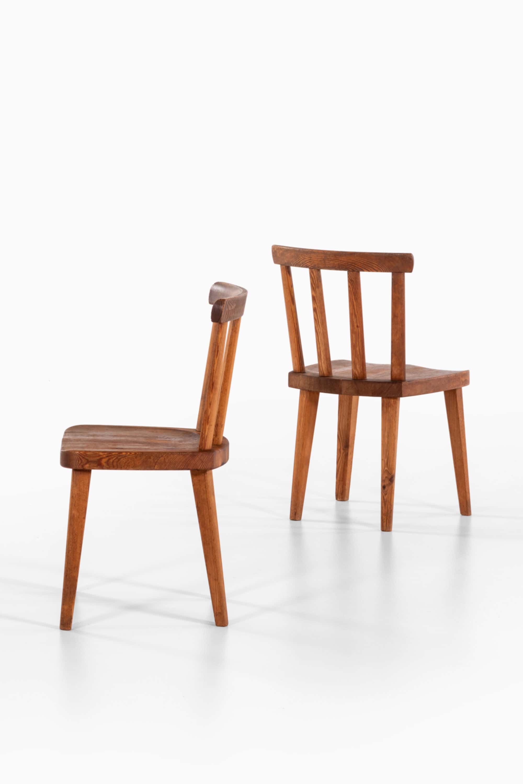 With their strong presence and compact proportions, these chairs work beautifully around a dining table but also stand well on their own as accent seating. The combination of restrained form and tactile material makes them a timeless example of Swedish functionalism interpreted through a traditional vernacular language, which is exactly what has made Axel Einar Hjorth’s pine furniture so highly sought after today.