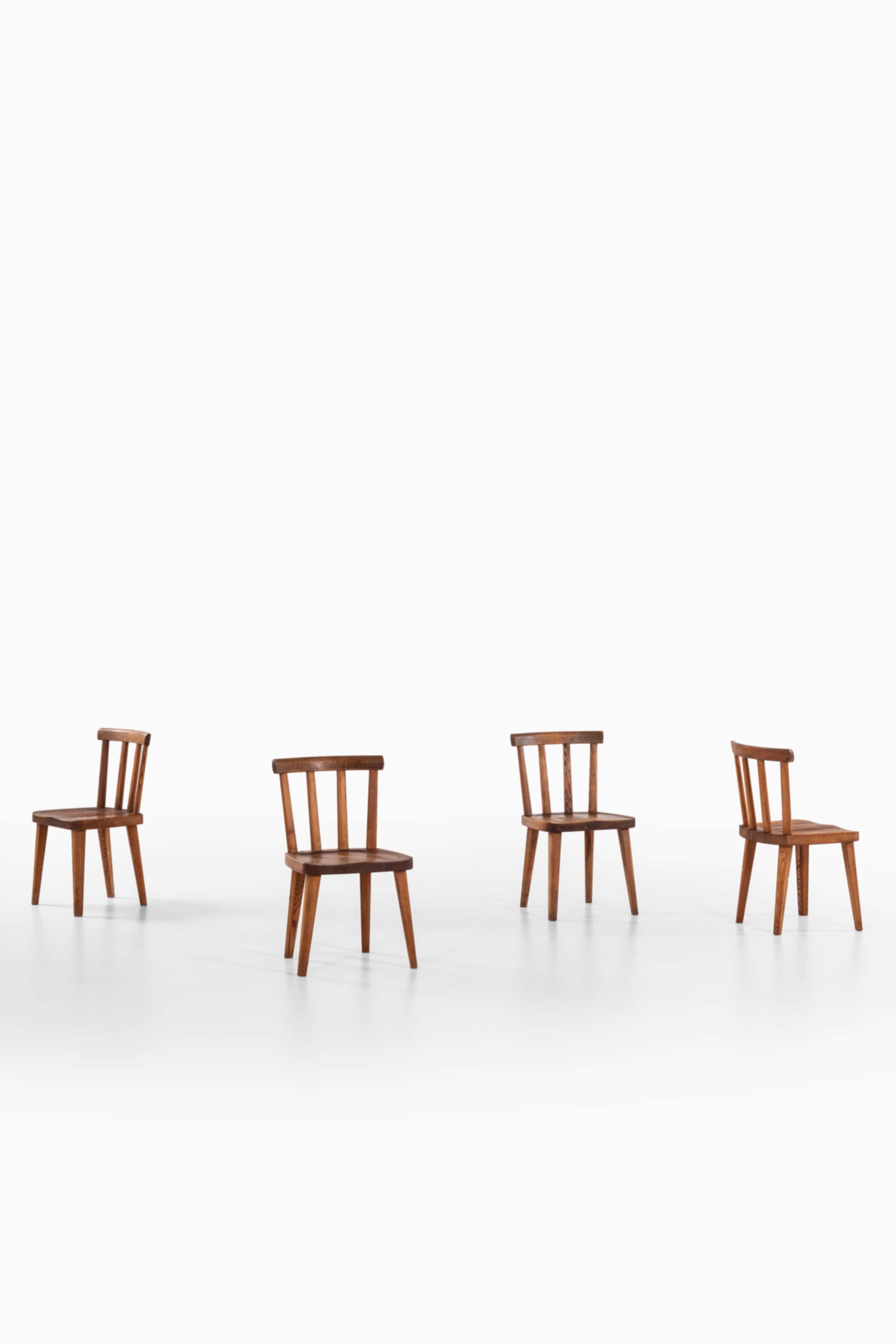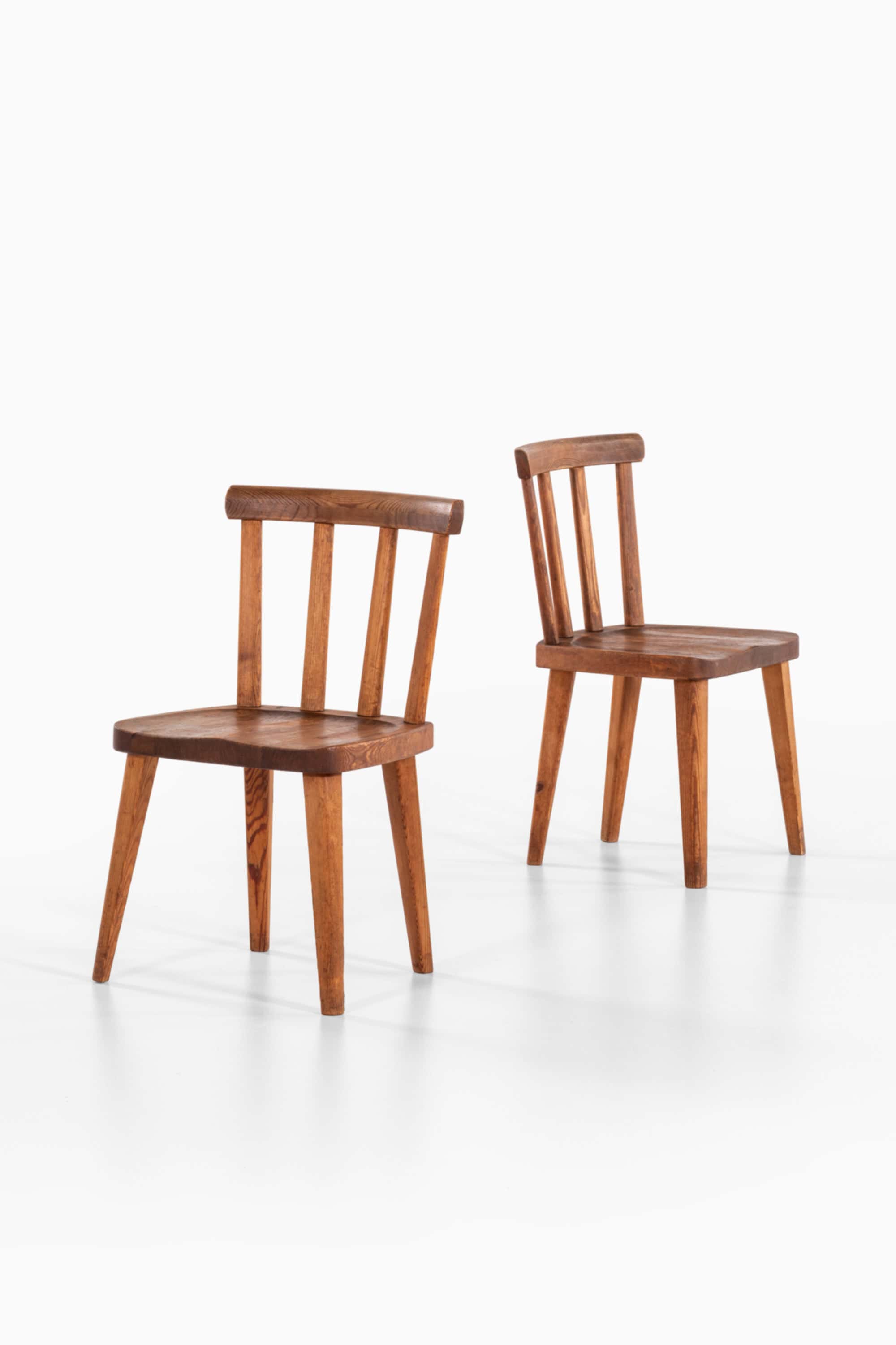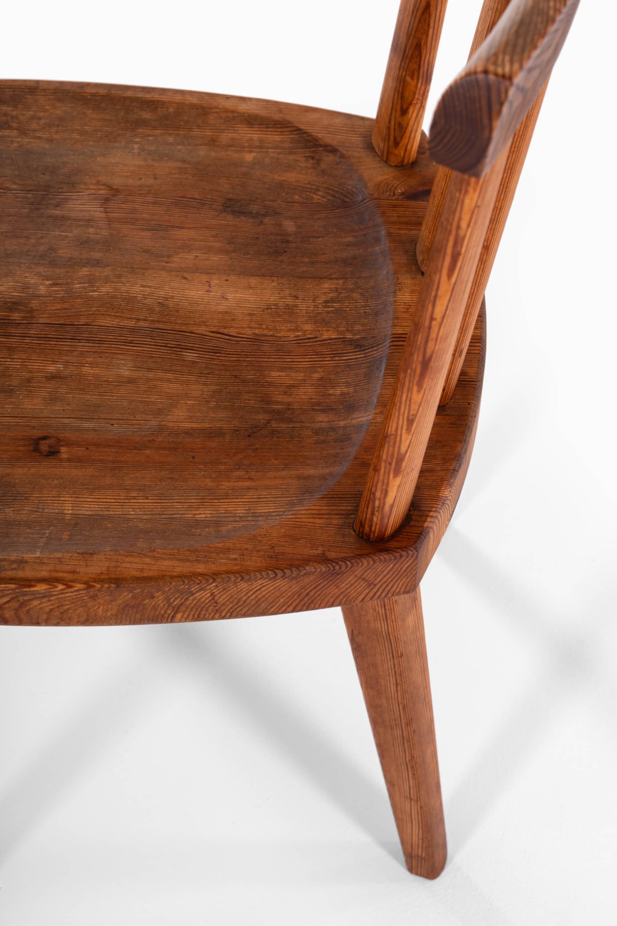 With their strong presence and compact proportions, these chairs work beautifully around a dining table but also stand well on their own as accent seating. The combination of restrained form and tactile material makes them a timeless example of Swedish functionalism interpreted through a traditional vernacular language, which is exactly what has made Axel Einar Hjorth’s pine furniture so highly sought after today.
