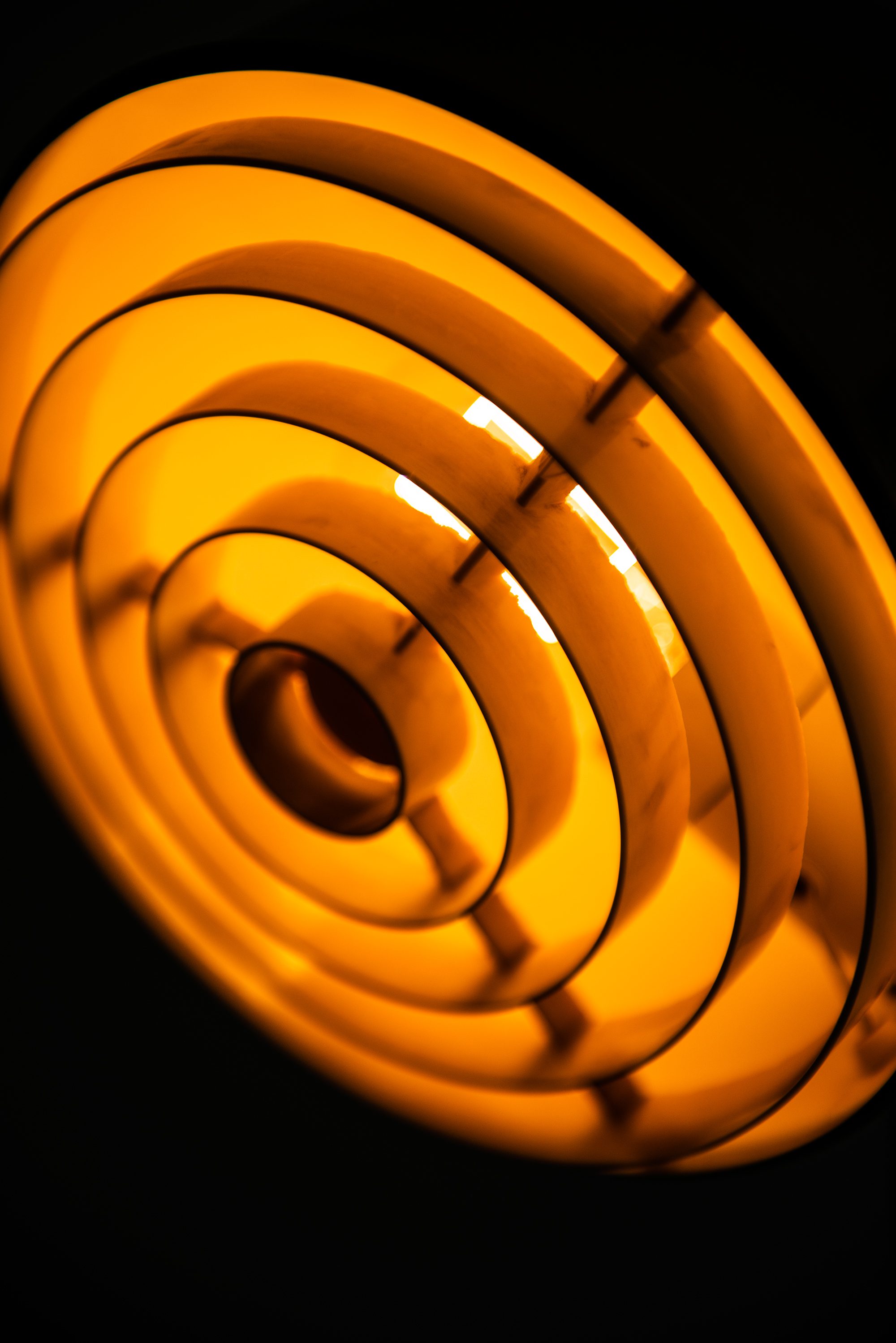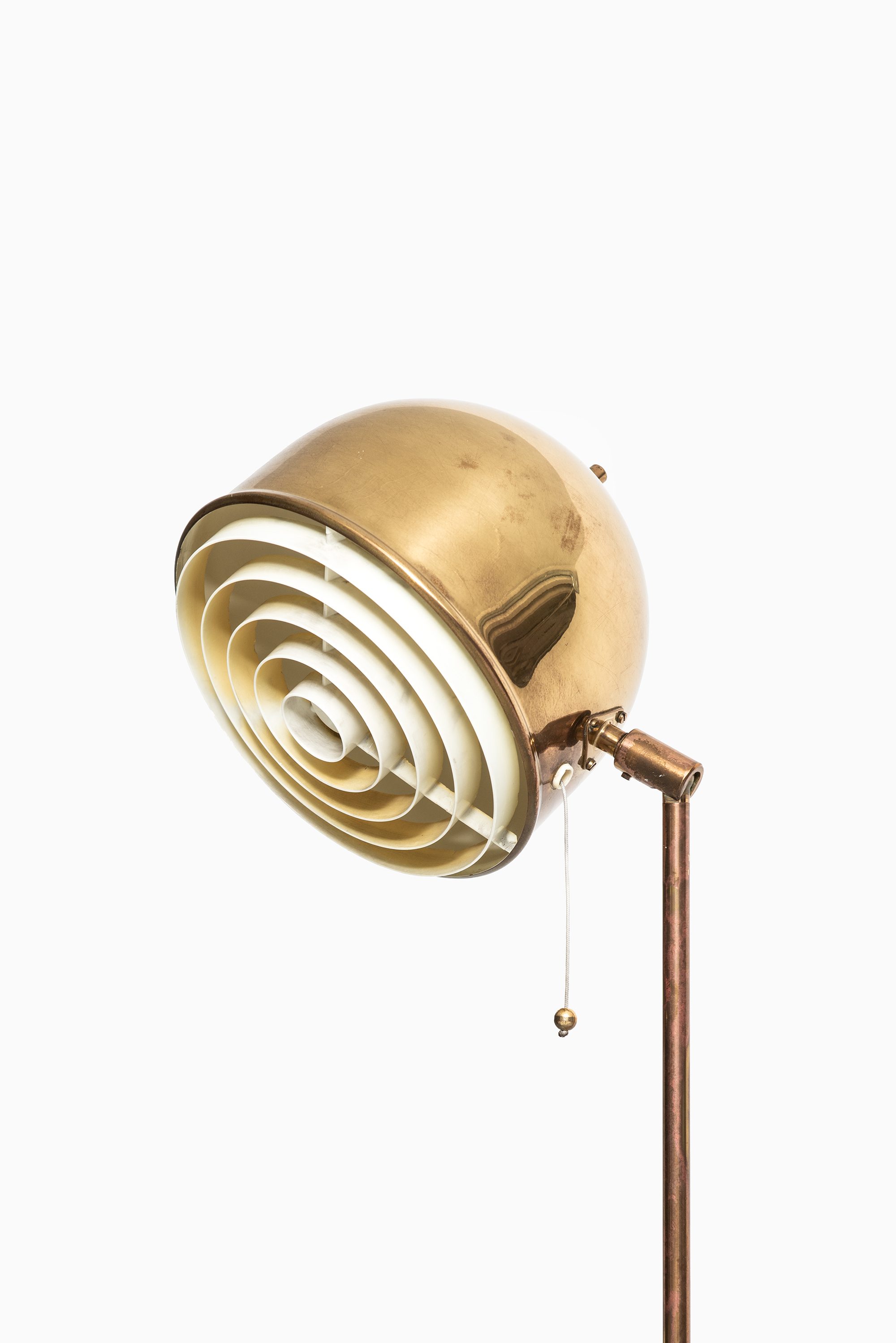 One of the defining features of this model is its sculptural lampshade, which houses a series of concentric rings that diffuse the light, creating a soft and even glow. The pull-chain switch, characteristic of the era, remains intact and adds to the lamp’s period authenticity. The polished brass surface has developed a warm patina over time, enhancing its visual depth and historical character while reflecting the quality craftsmanship typical of Bergboms’ production.