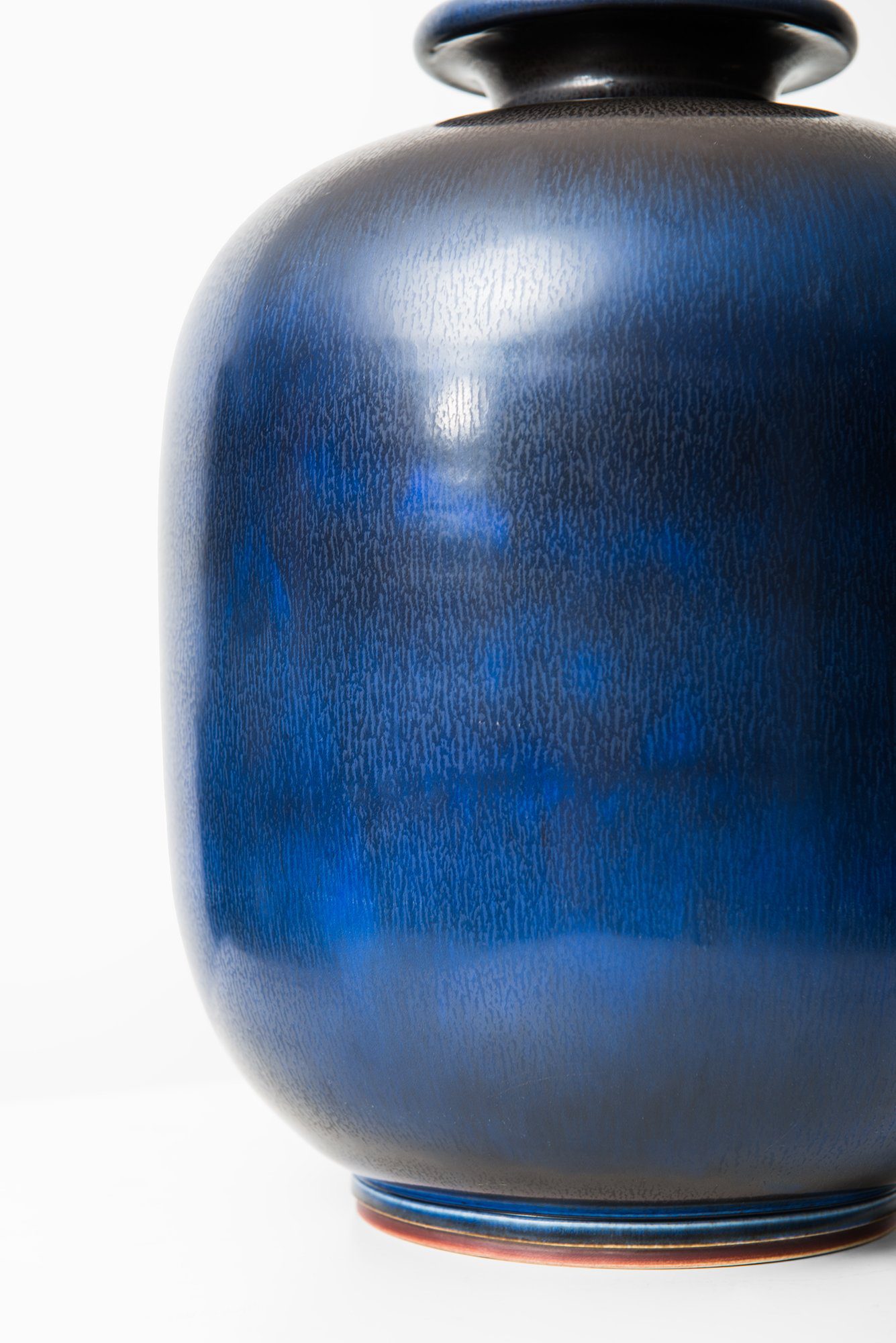 Berndt Friberg (1899–1981) was one of Sweden’s most celebrated studio potters and a central figure in Scandinavian modern ceramics. Known for his meticulous approach, Friberg produced each piece by hand on the wheel, often discarding works that did not meet his exacting standards. His glazes, especially the hare’s fur type, are renowned for their depth and optical complexity. Gustavsberg, where Friberg worked from 1934 onward, was one of Sweden’s leading porcelain and stoneware manufacturers, and its studio department became a key site for Scandinavian ceramic innovation in the mid-century period.