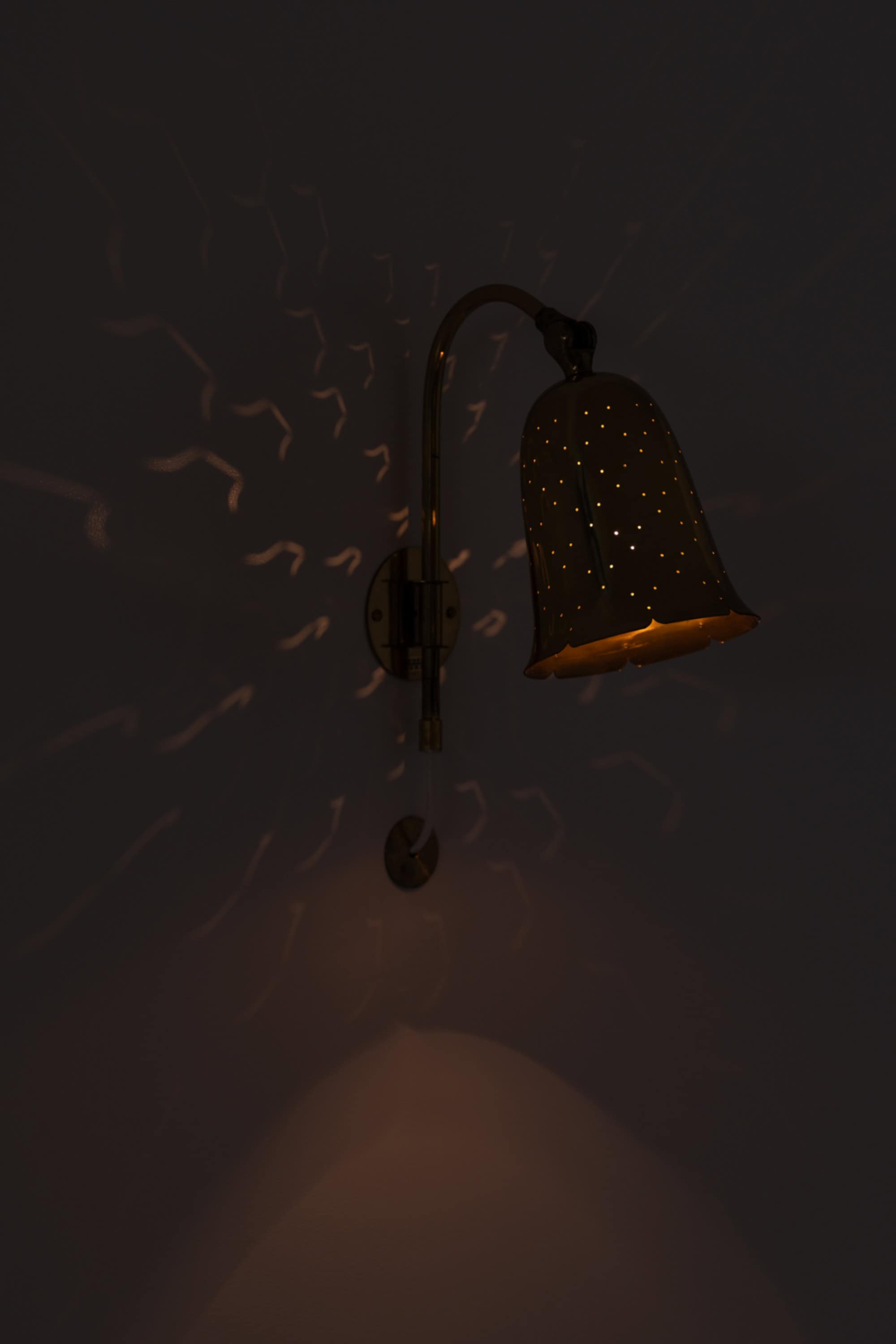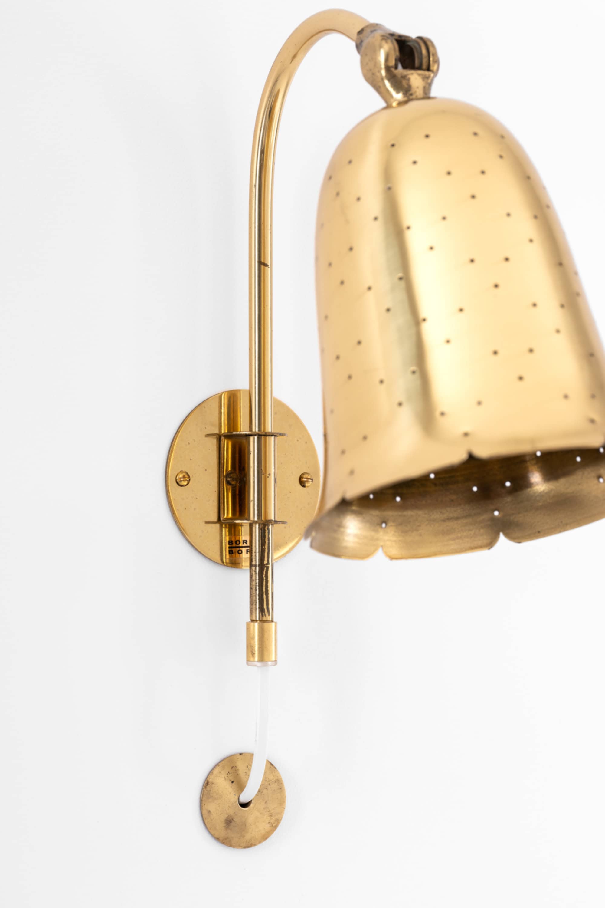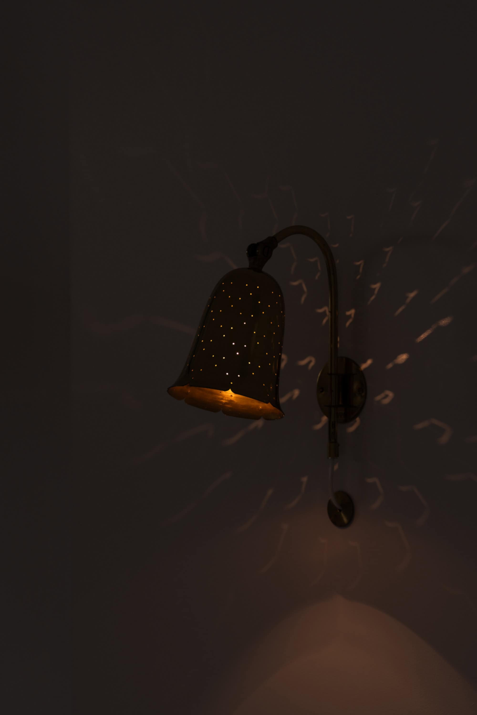 A very rare wall lamp produced by Boréns in Borås, Sweden during the 1950s, executed entirely in brass and characteristic of Scandinavian mid-century lighting with subtle decorative detailing and refined craftsmanship.