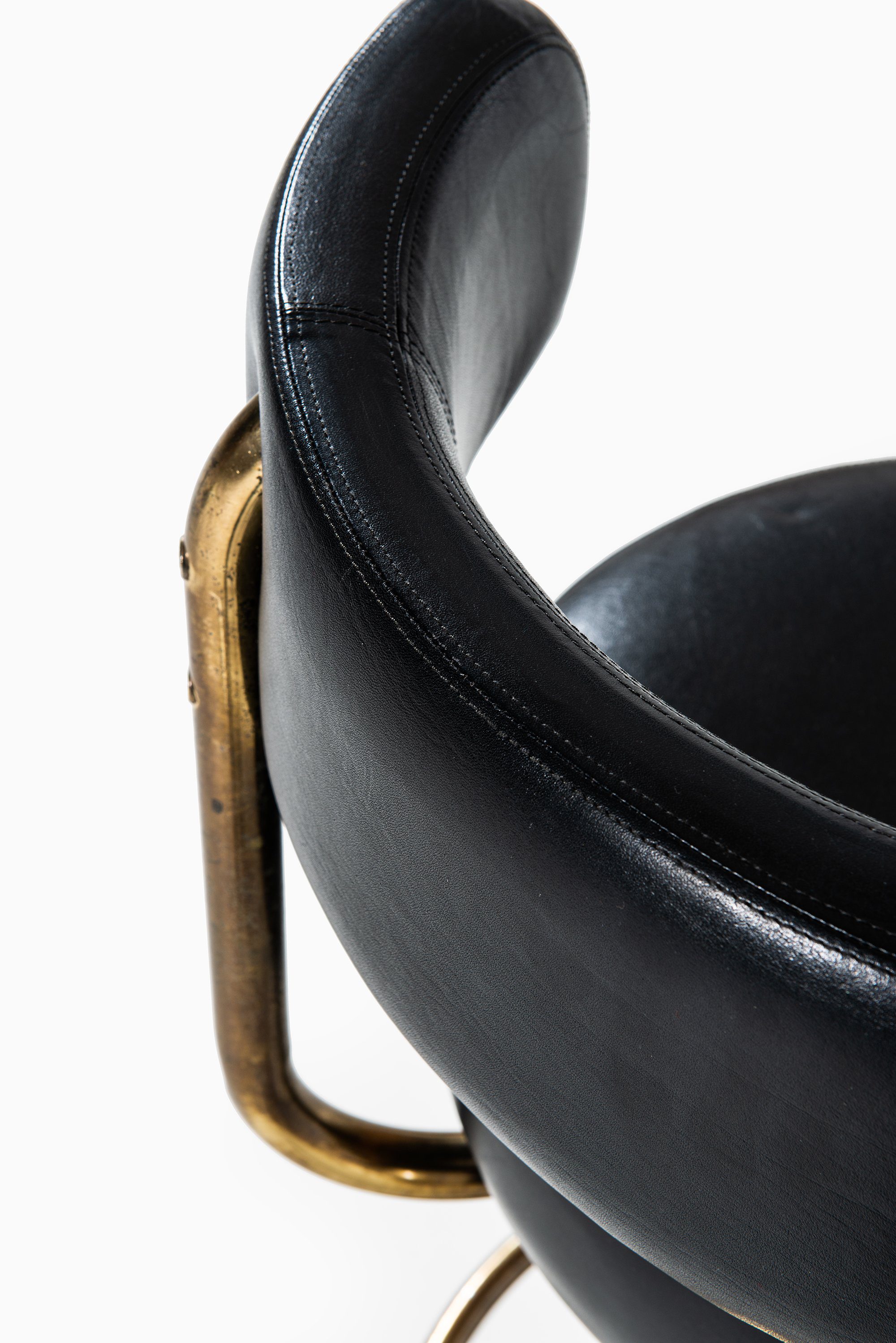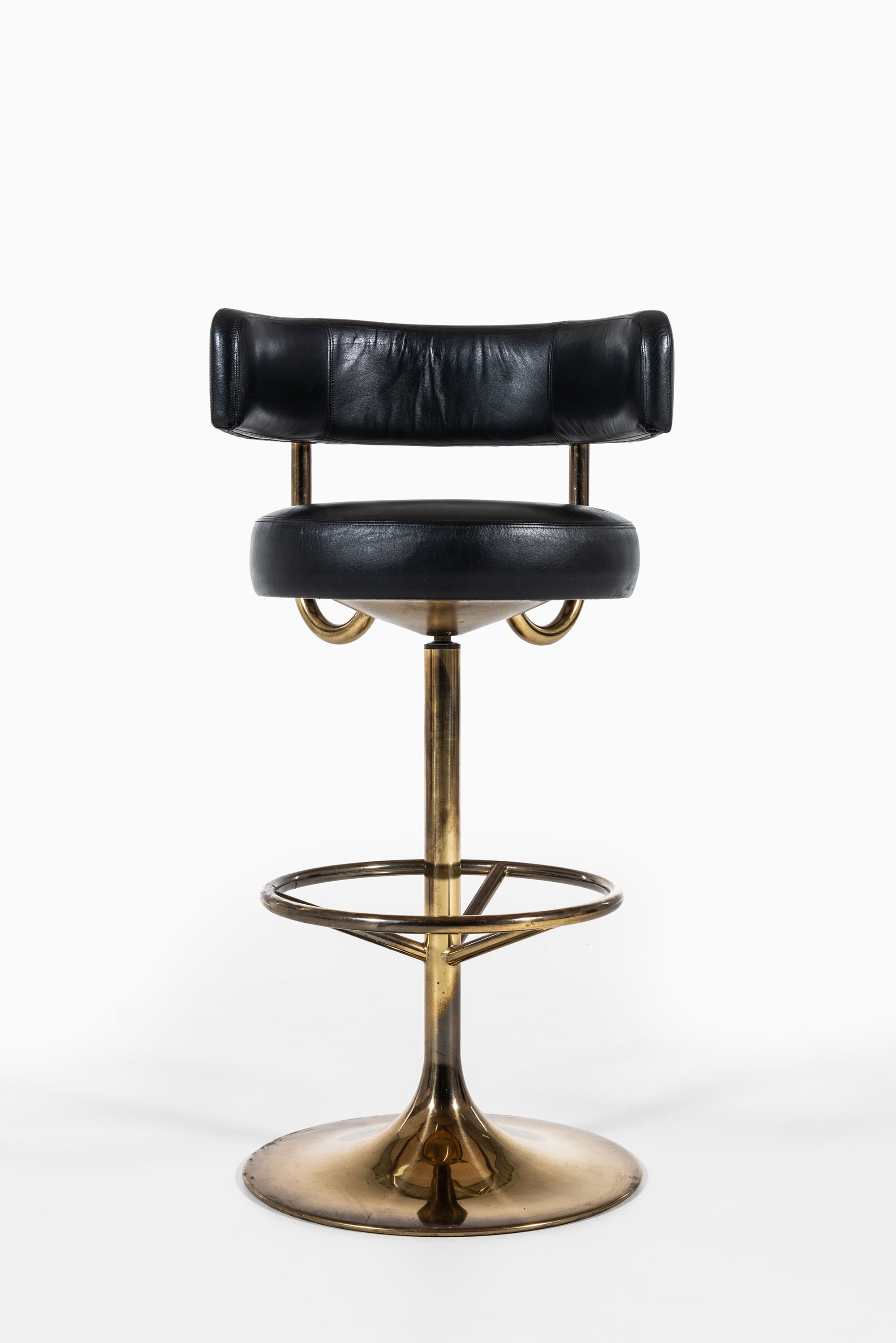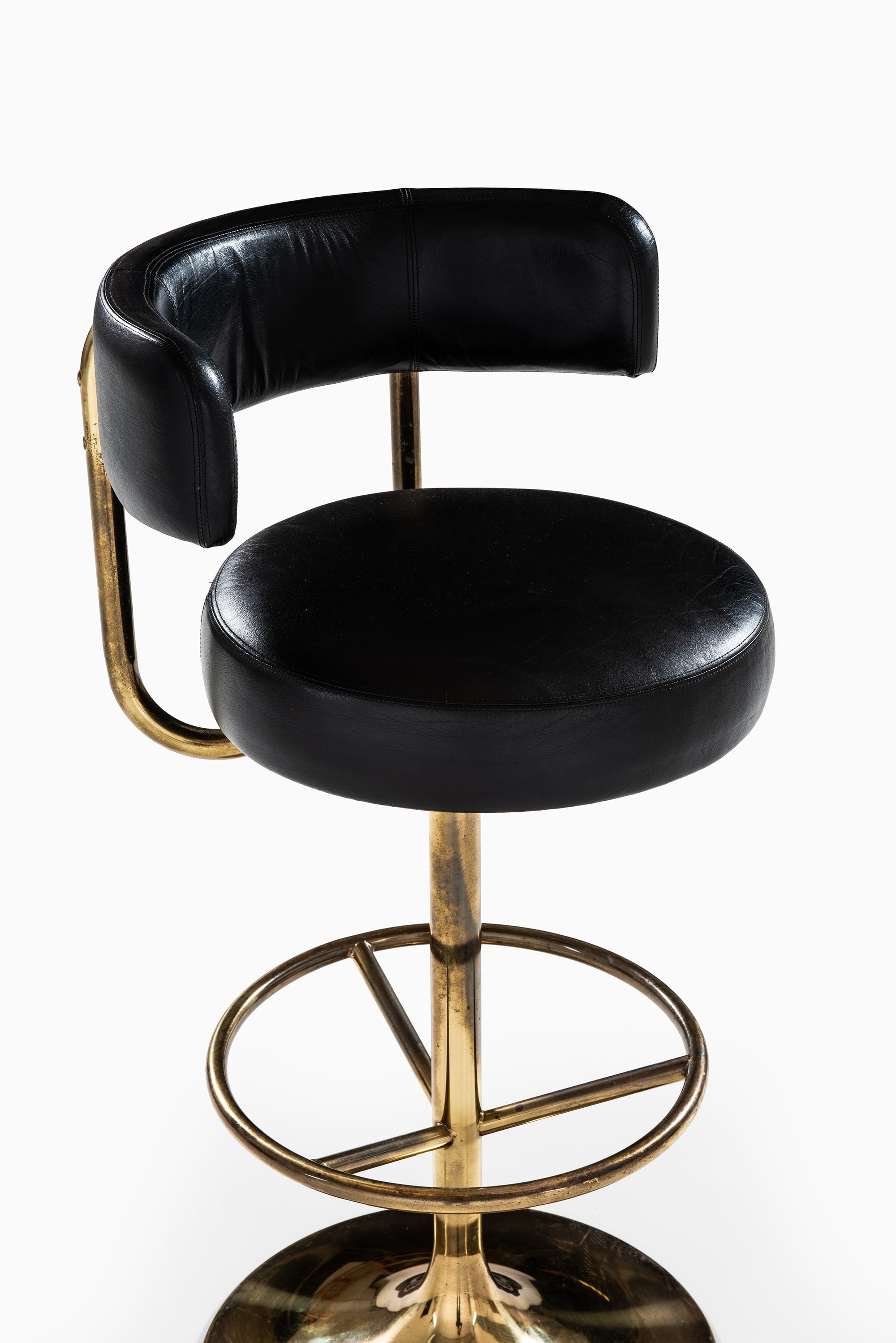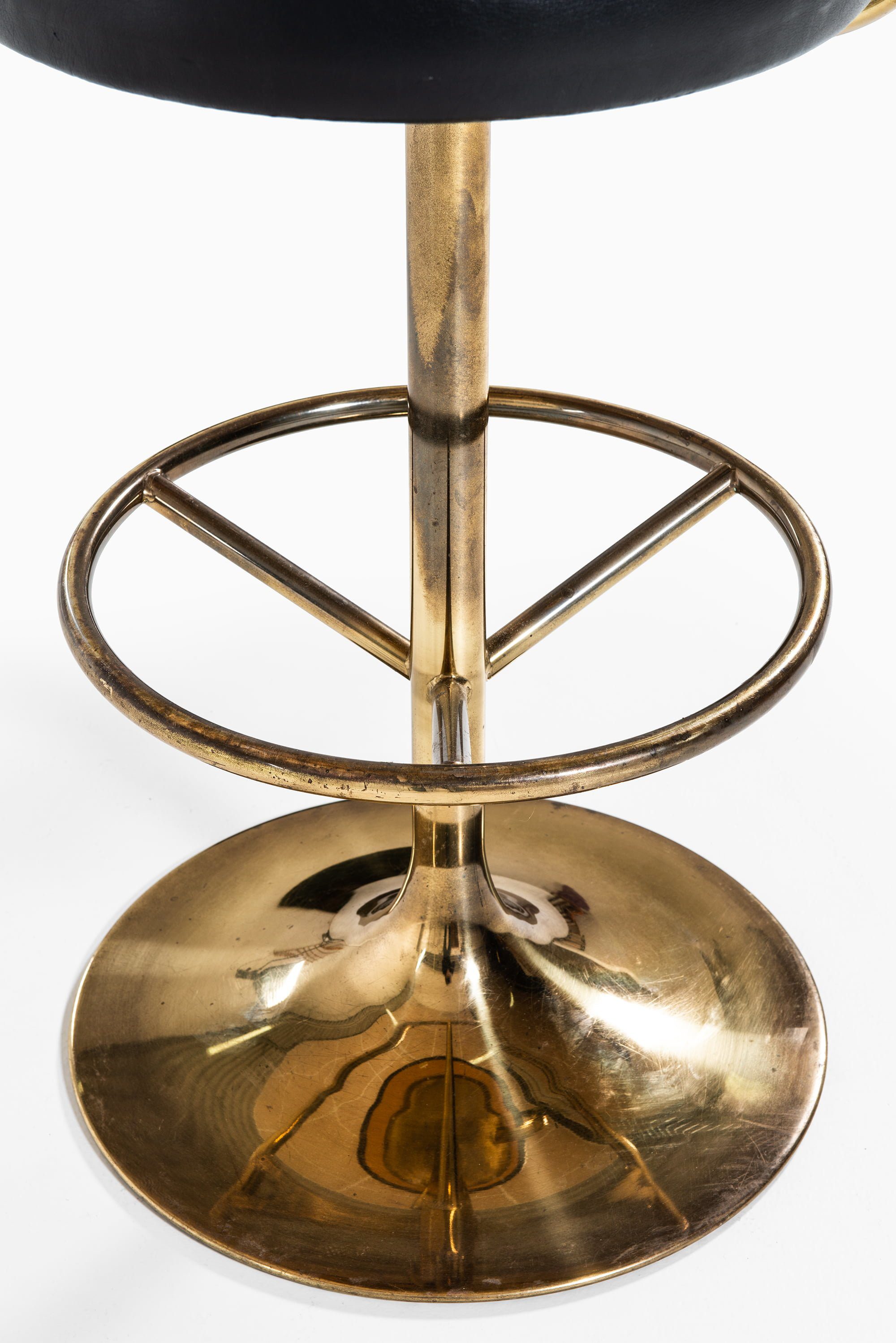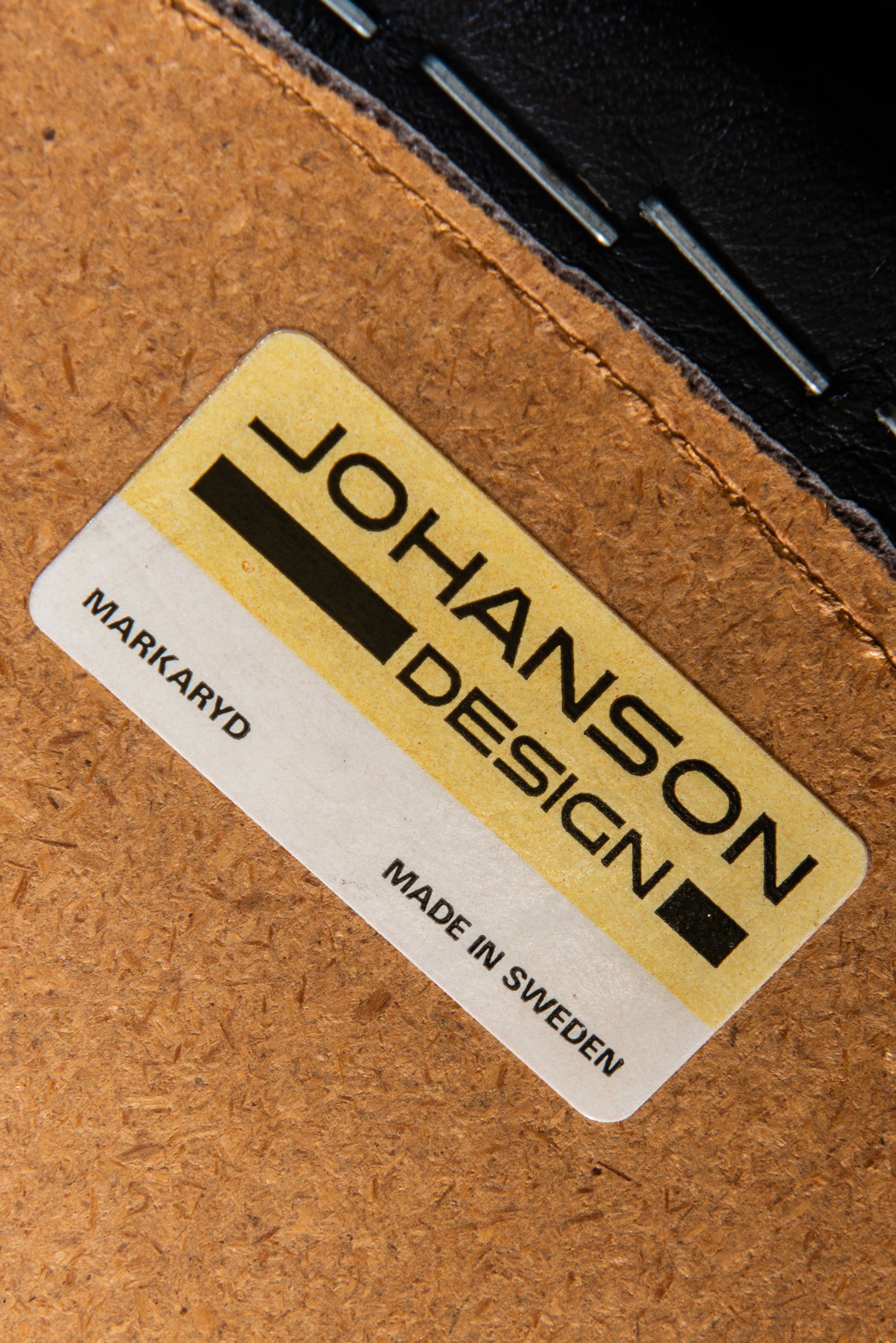 The combination of brass and black upholstery lends the stools a sophisticated, almost architectural presence—equally at home in a refined residential setting or a high-end hospitality environment. Their design reflects Johanson’s focus on comfort, proportion, and timeless form, while the patina of the brass surfaces adds a layer of authenticity and depth that enhances their mid-century character.
