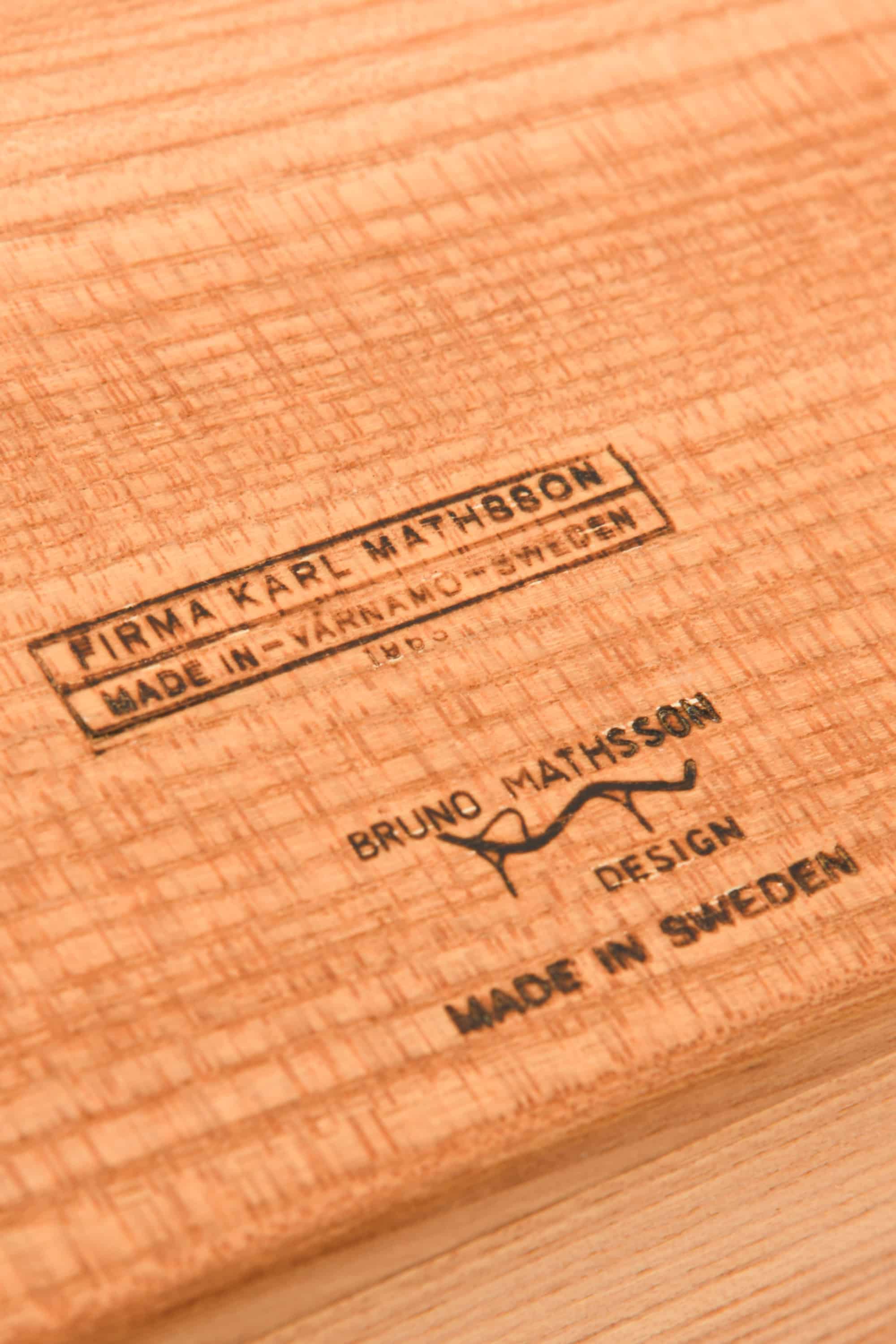 Designed in the 1940s and produced in 1965, this example illustrates the lasting influence of Mathsson’s early modernist ideas on postwar Scandinavian design. The design language reveals Mathsson’s pursuit of functional elegance, reducing construction to the essentials while emphasizing craftsmanship and material tactility. The visible grain of the ash wood accentuates the geometric planes, giving the object a warm and natural presence despite its architectural form.