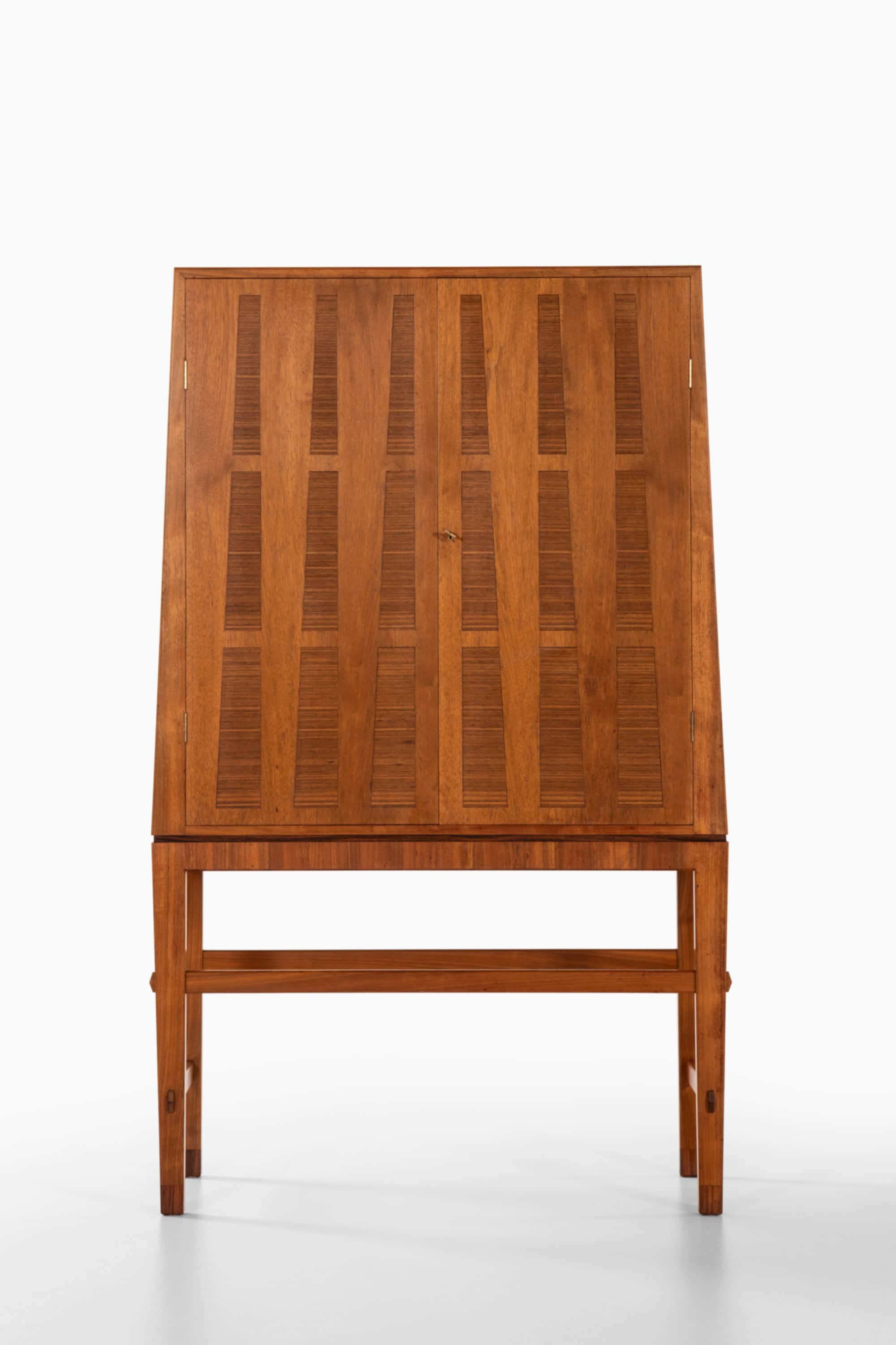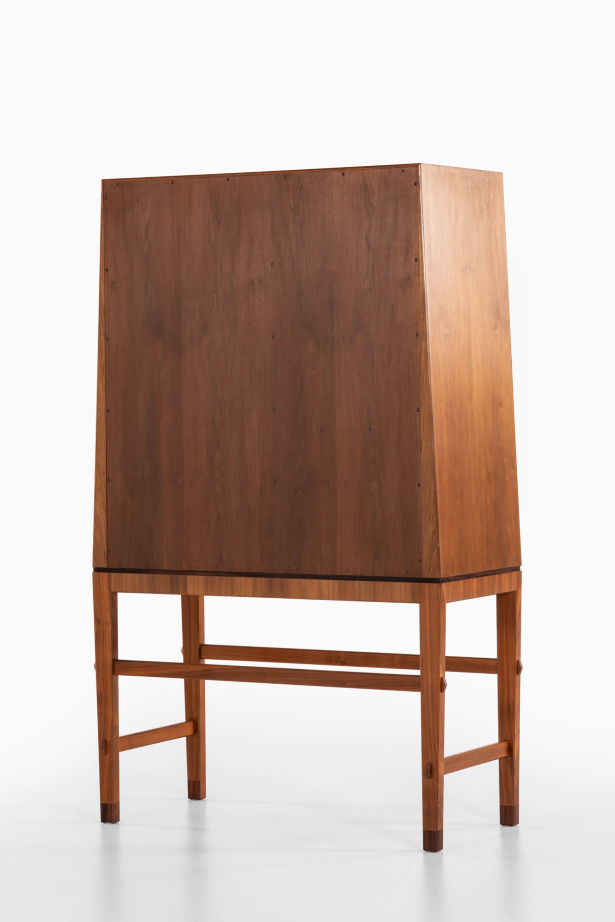 This unique Swedish cabinet is an exceptional example of mid-century craftsmanship, made as an apprentice’s examination piece in the 1950s. Executed in richly grained walnut, it combines a strong architectural silhouette with refined detailing, resulting in a highly personal and characterful storage piece that feels both practical and sculptural.