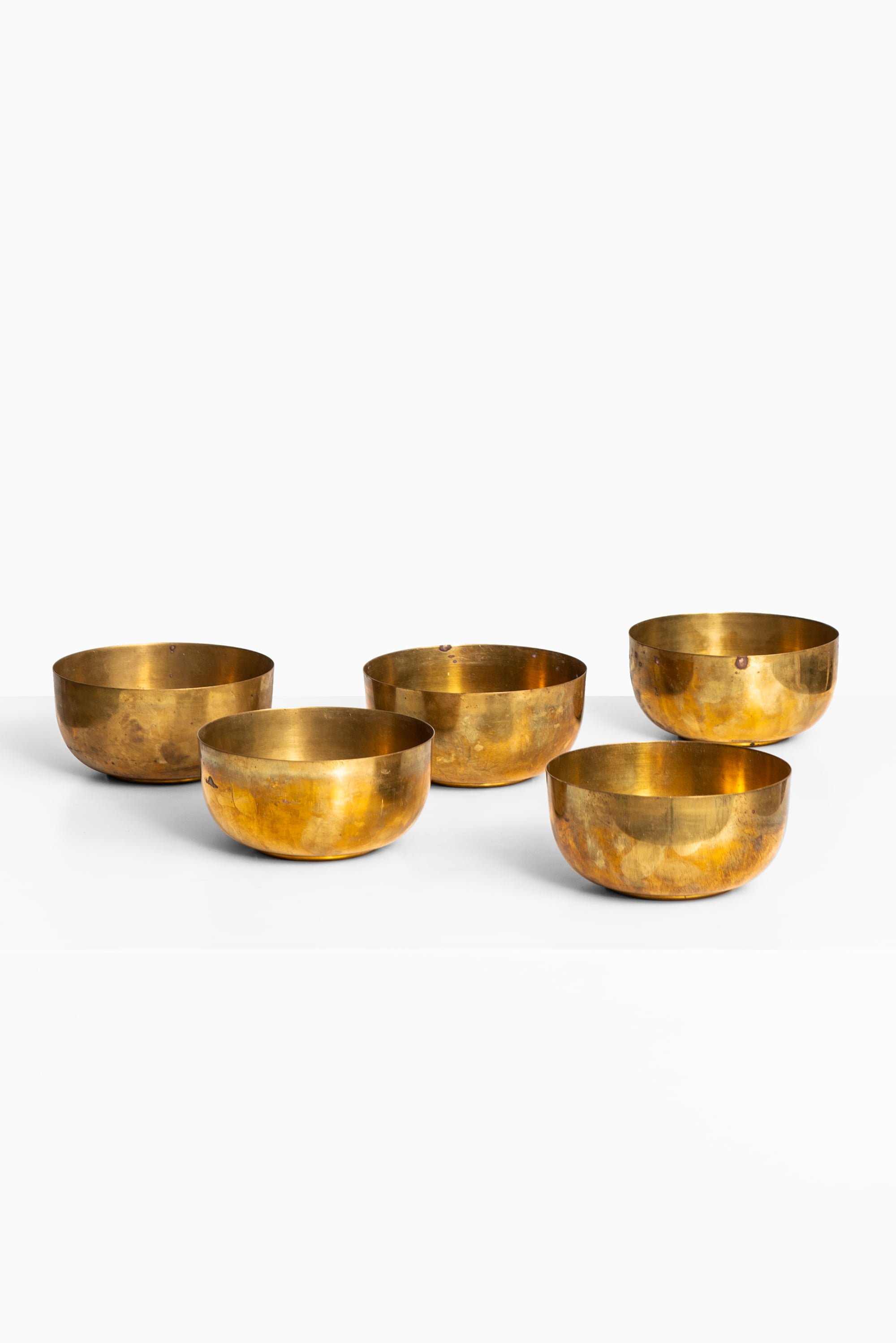 This rare set of five brass bowls is attributed to Carl Auböck and produced by the Carl Auböck workshop in Vienna, Austria, during the 1950s. The collection embodies the workshop’s signature approach — uniting modernist simplicity with artisanal warmth — and reflects the balance between precision craftsmanship and expressive imperfection that defines Auböck’s work.