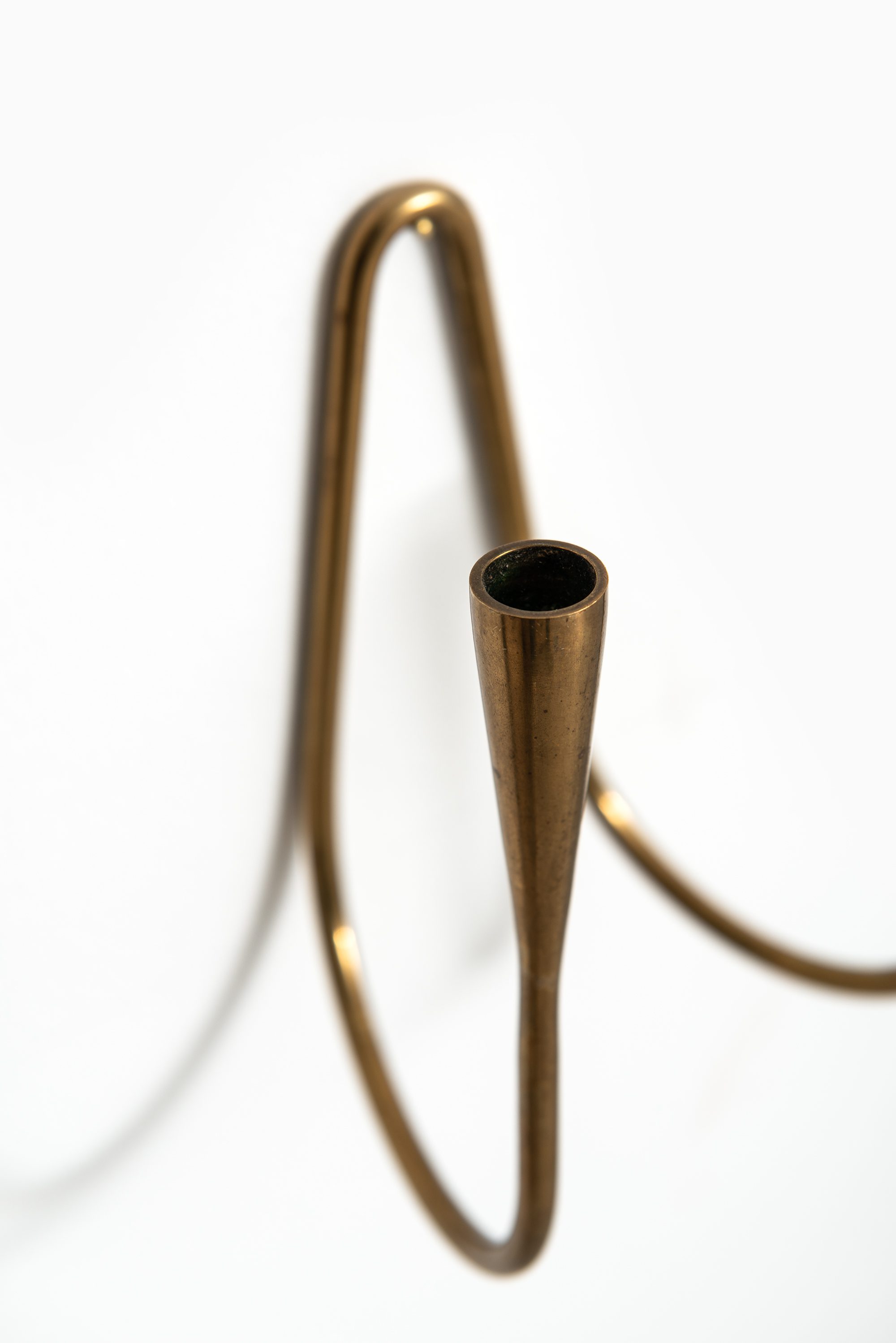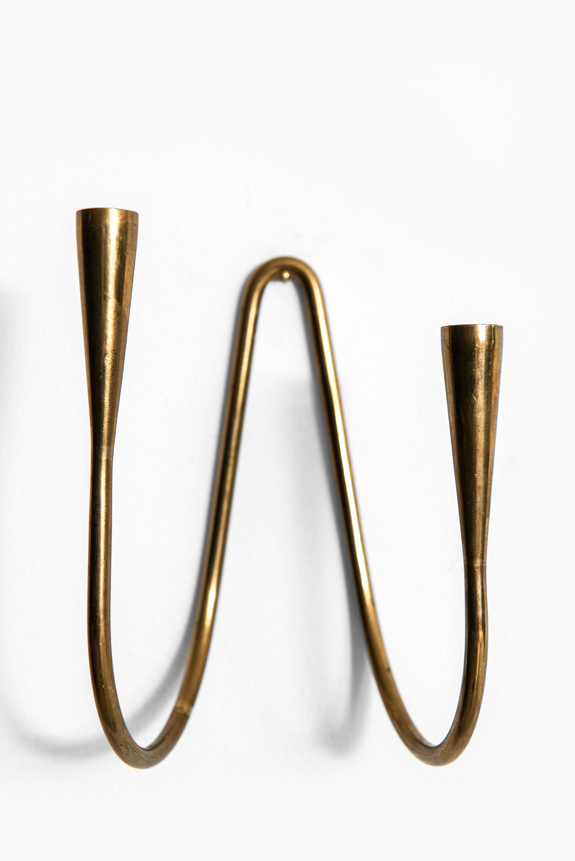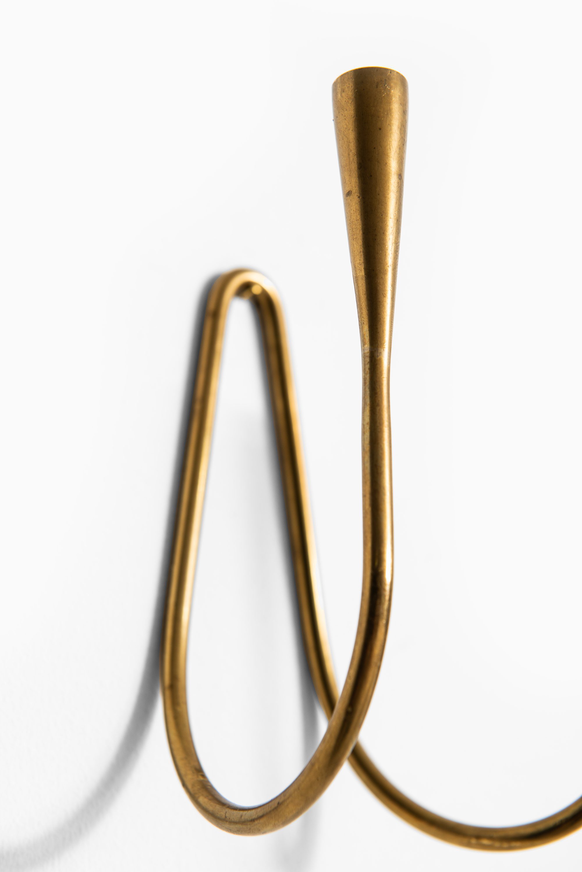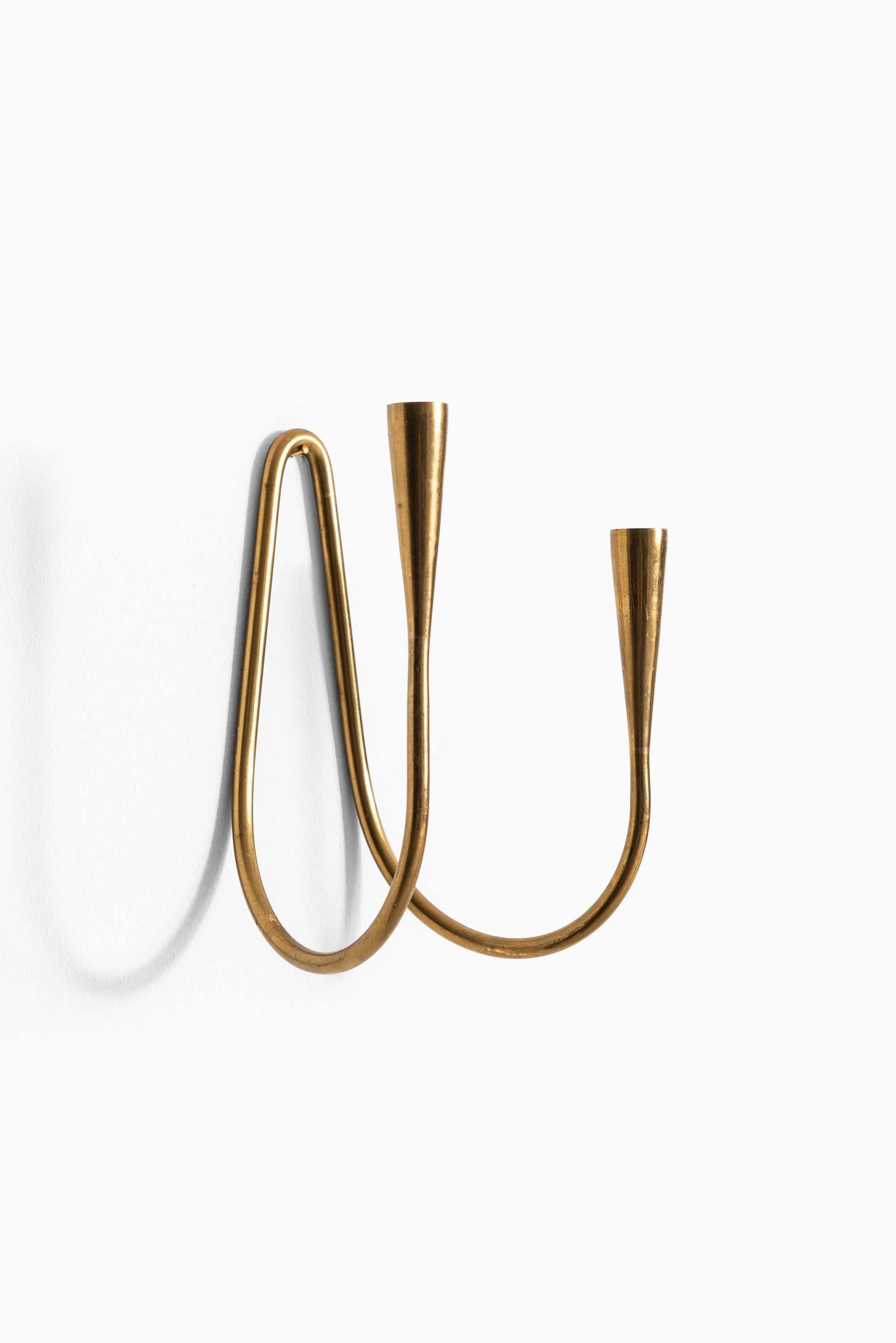 This pair of wall-mounted candlesticks is attributed to Austrian designer Carl Auböck and was produced for Illums Bolighus in Denmark during the 1950s. Crafted entirely from solid brass, the design embodies the understated yet sculptural qualities characteristic of mid-century Scandinavian and Viennese modernism.