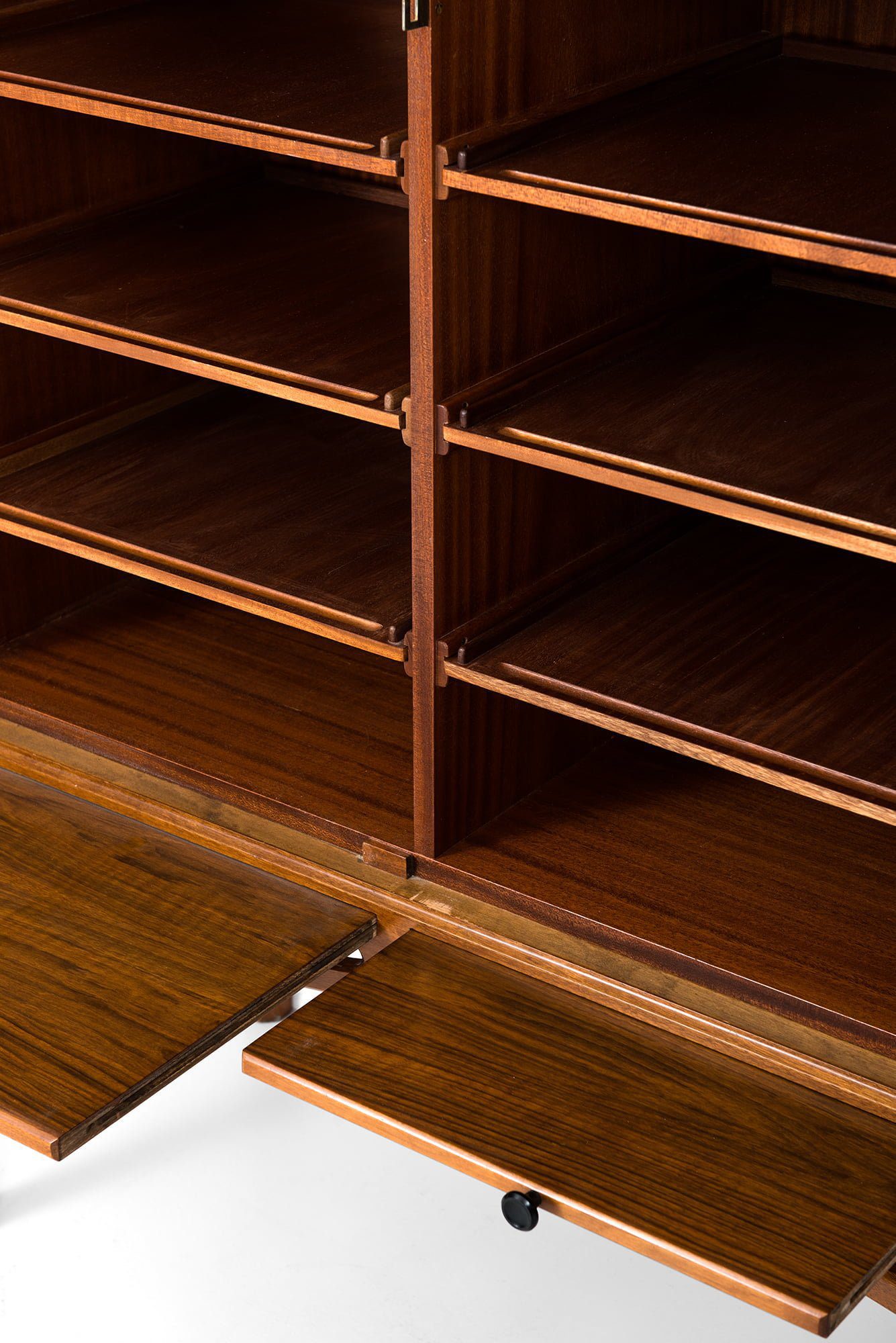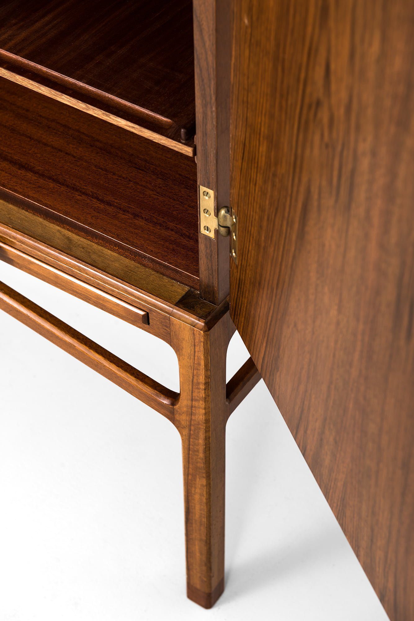 This example is in excellent vintage condition, with only minor signs of wear and a rich, warm patina that emphasizes the depth of the mahogany and walnut surfaces. The craftsmanship demonstrates the high quality of Swedish cabinetmaking of the period, combining function with sculptural refinement.