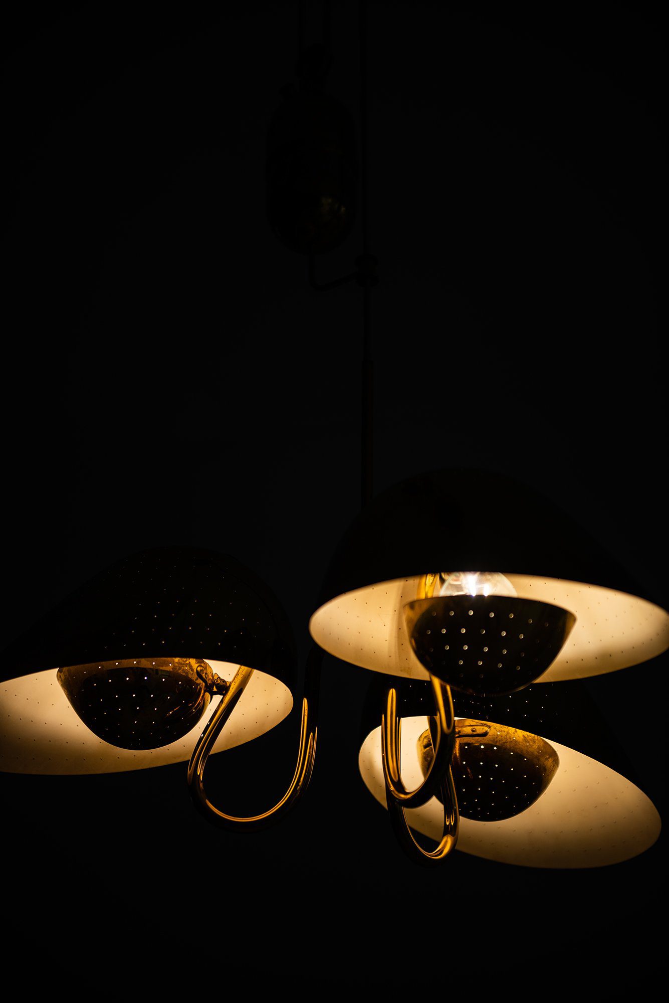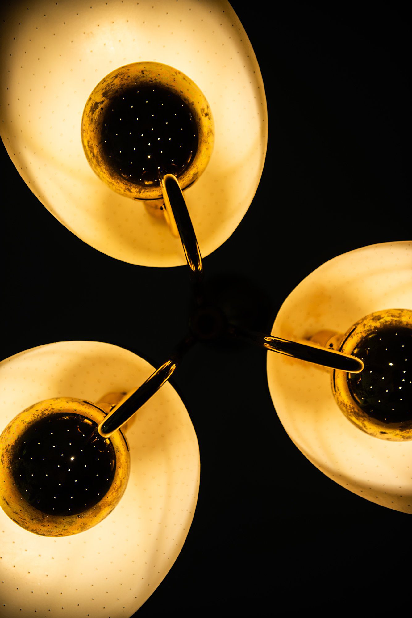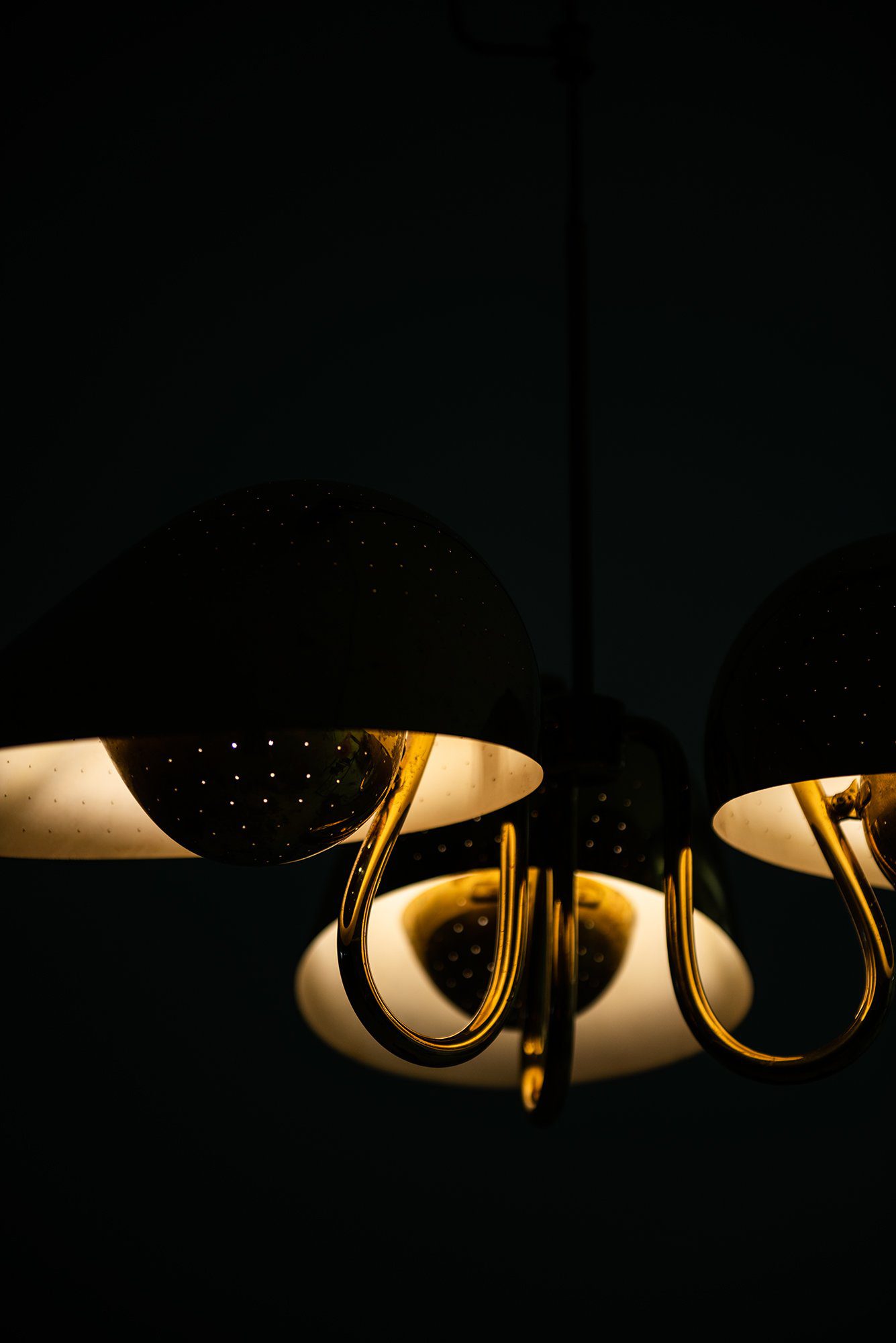 This rare height-adjustable ceiling lamp was designed by Carl-Axel Acking and produced by Bröderna Malmströms Metallvarufabrik in Sweden during the 1940s. Executed entirely in brass, the lamp demonstrates Acking’s refined understanding of both form and function. The material has developed a rich, naturally aged patina, highlighting its vintage character while preserving the original warm golden hue of the metal.