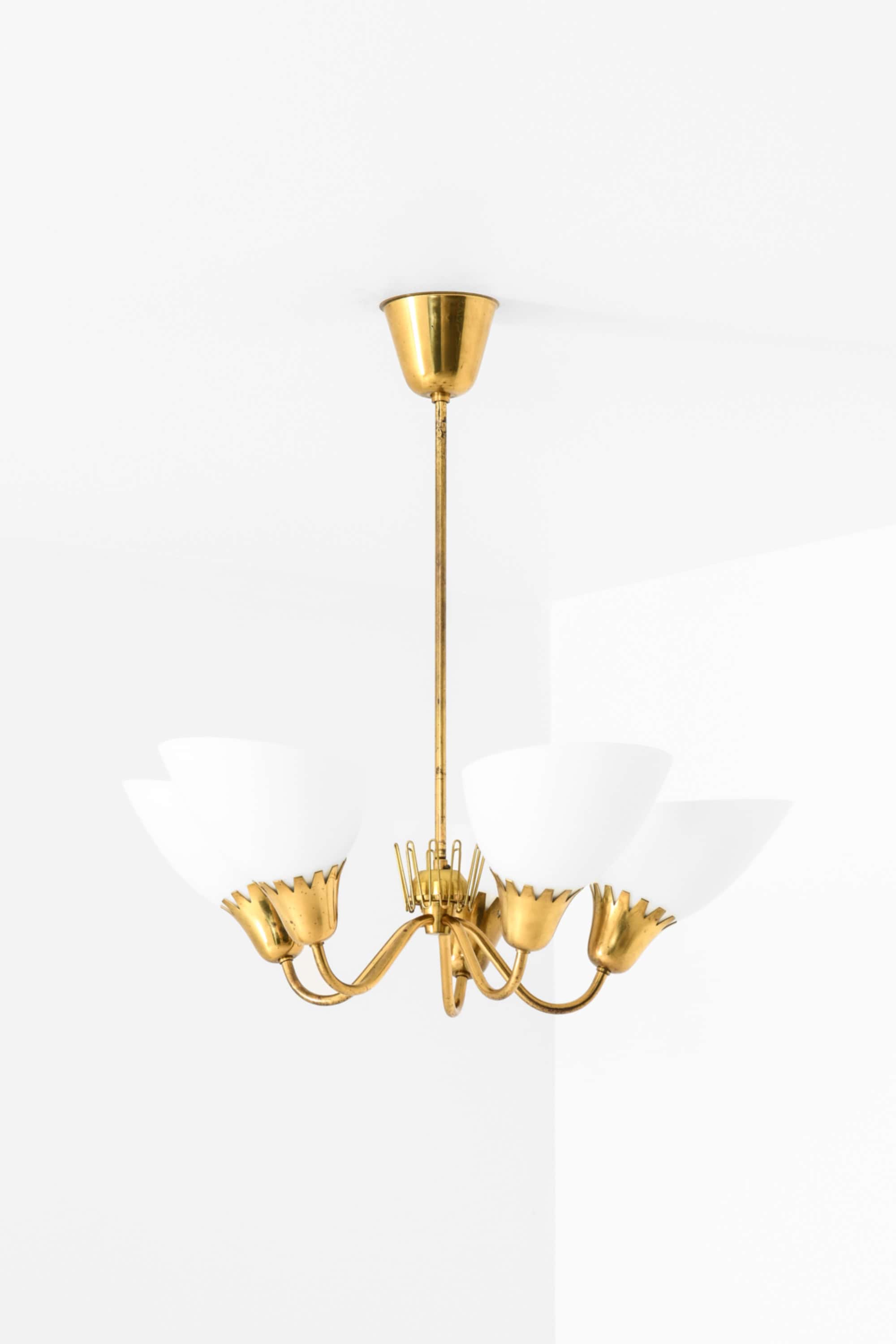 This piece was produced during the post-war golden age of Swedish lighting, when designers and manufacturers favored sculptural silhouettes rendered in noble materials such as brass and glass. It reflects the transition from more ornate pre-war aesthetics toward a more measured and modern sensibility, yet retains an expressive quality through its detailed curves and decorative gestures.