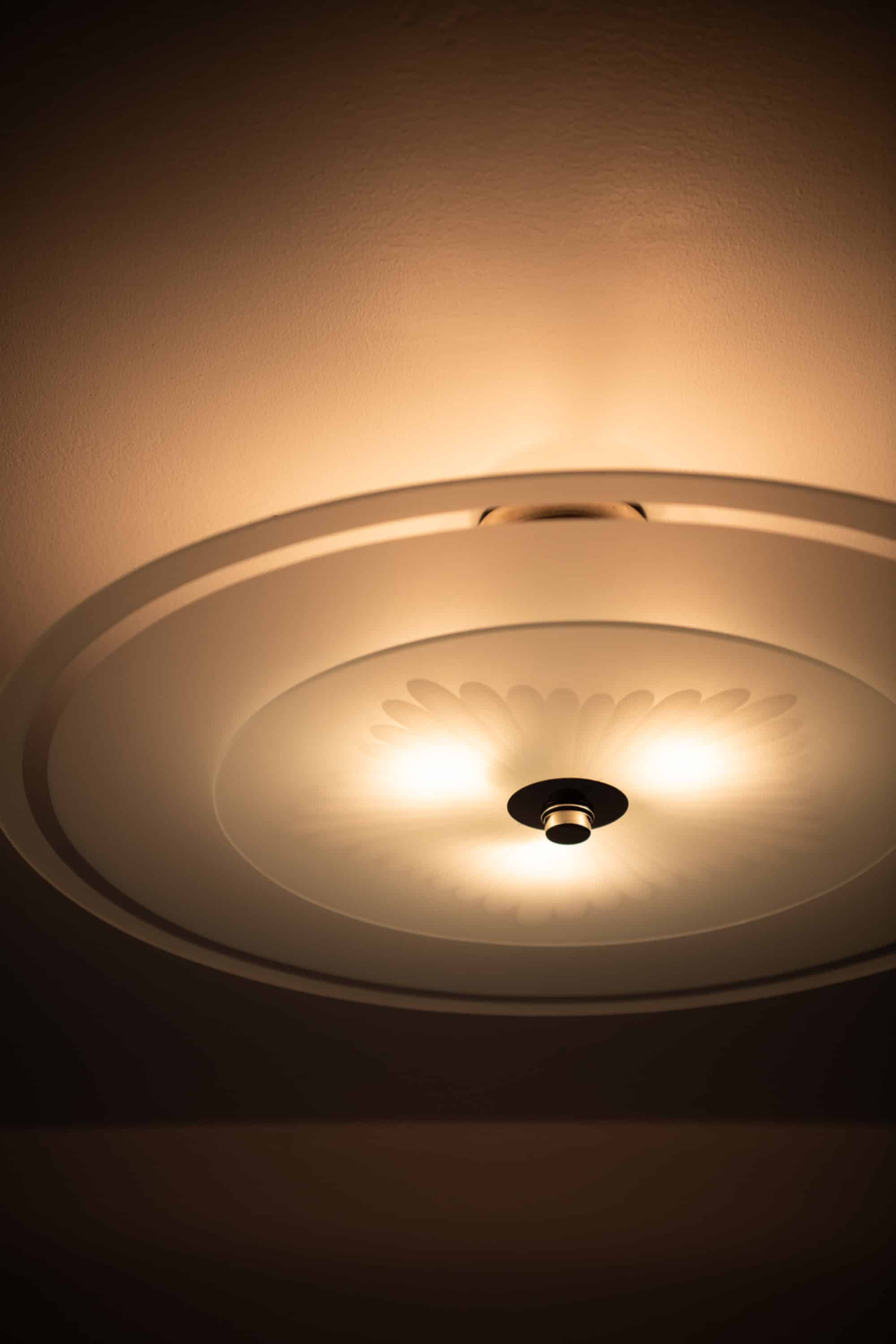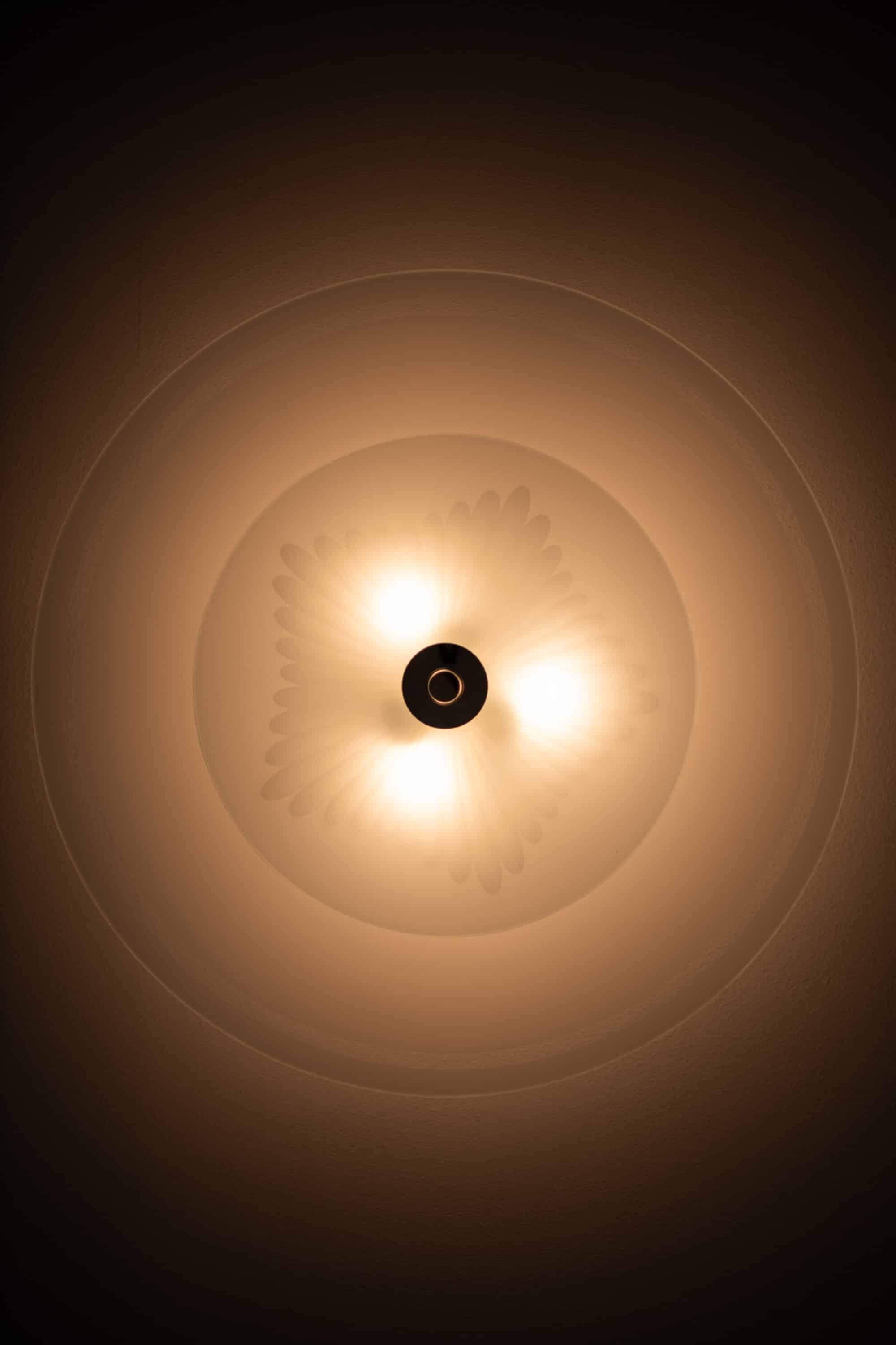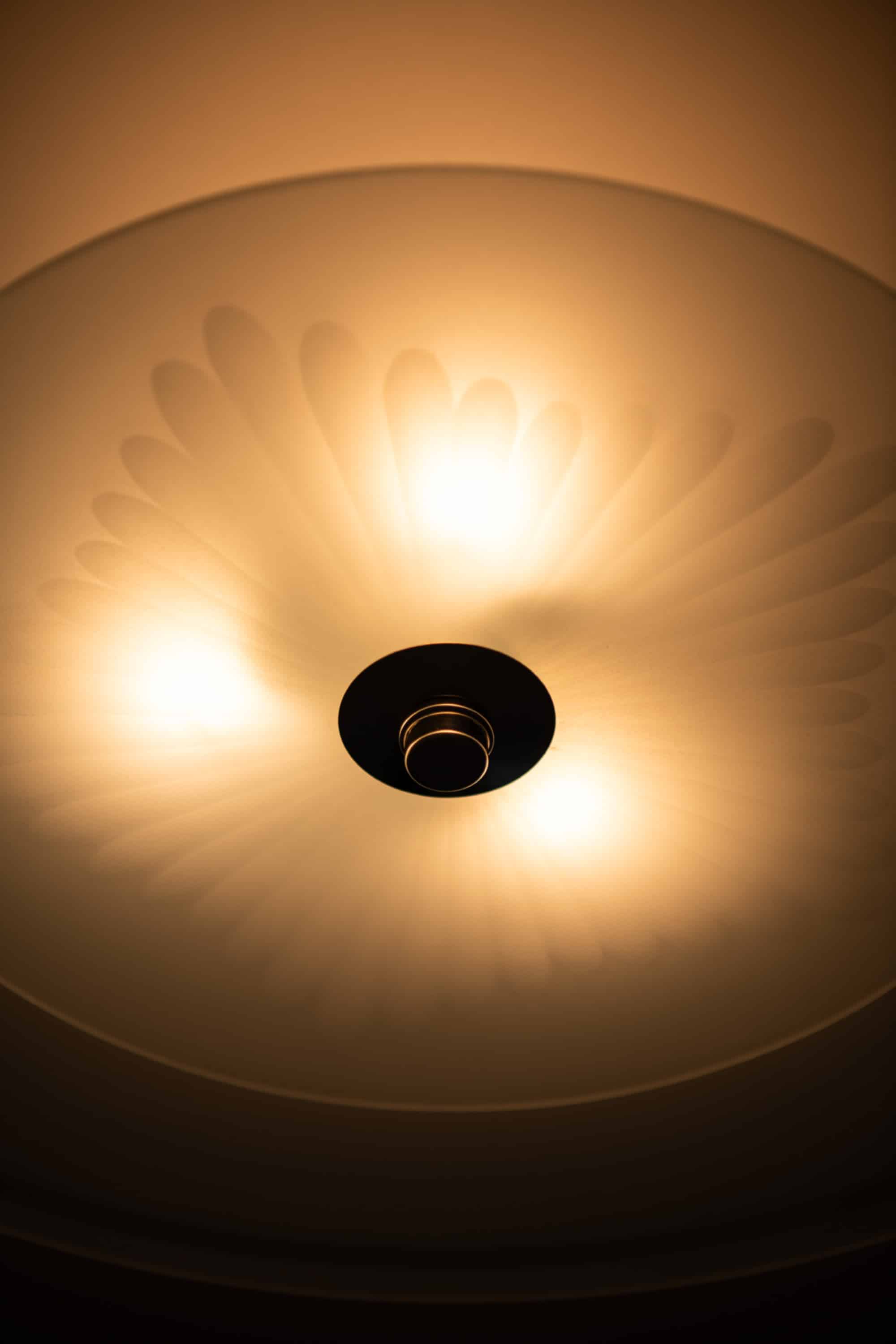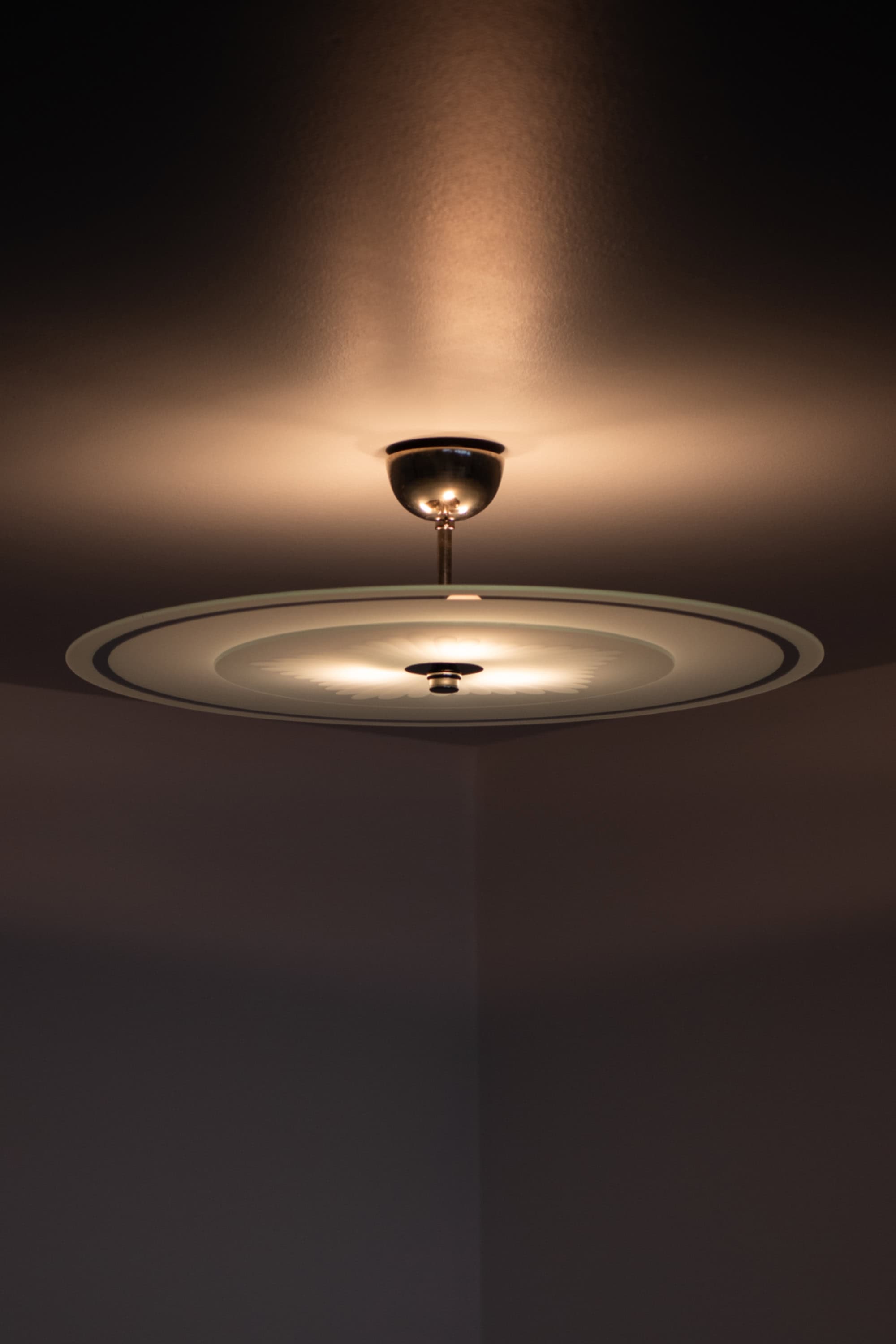 The lamps date from the 1940s, a period when Swedish lighting design was strongly influenced by Functionalist ideals, focusing on practicality, material honesty and visual clarity. Flush mount ceiling lamps of this scale were often used in public interiors as well as private homes, valued for their ability to provide generous illumination without dominating the space.