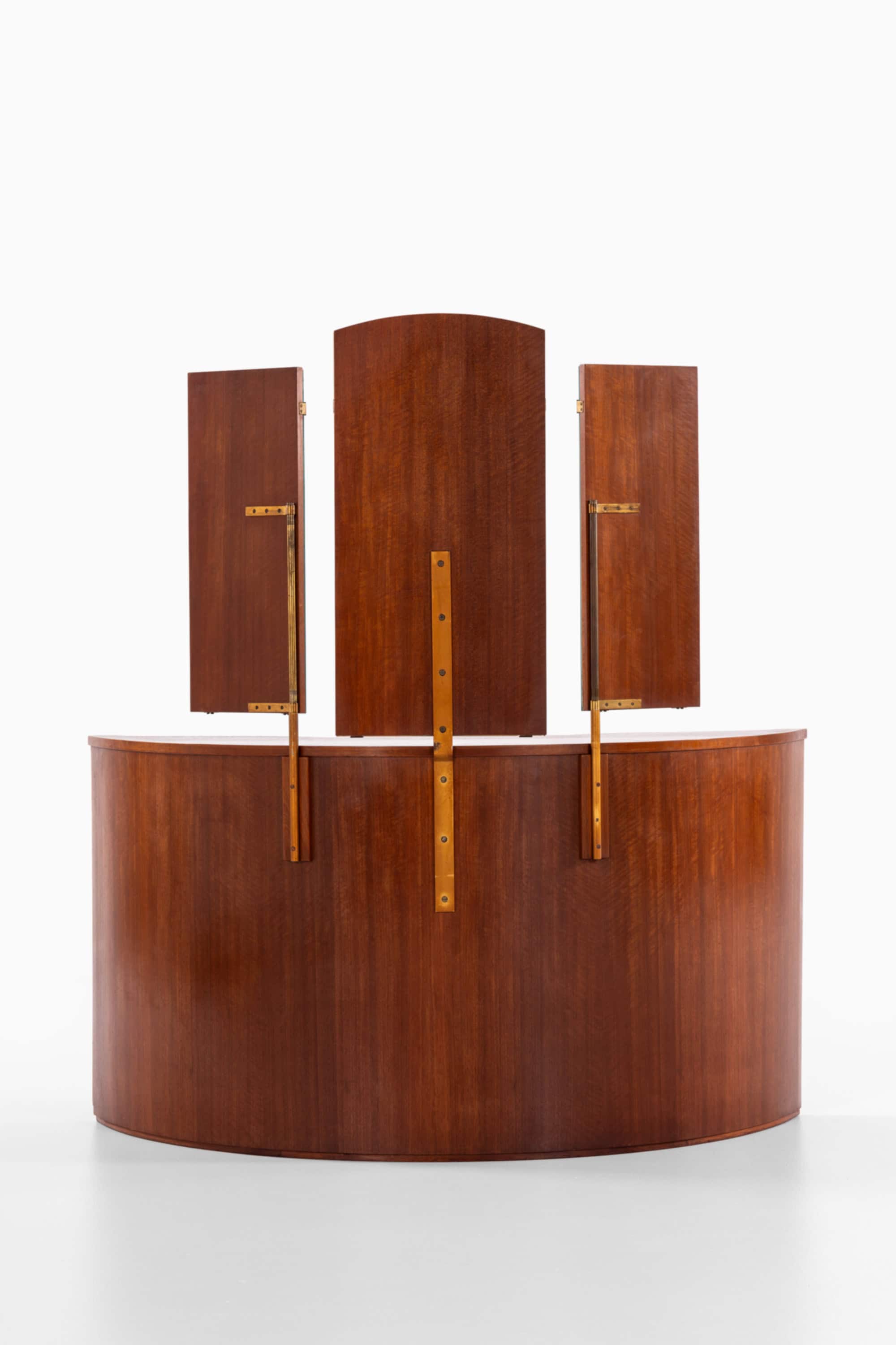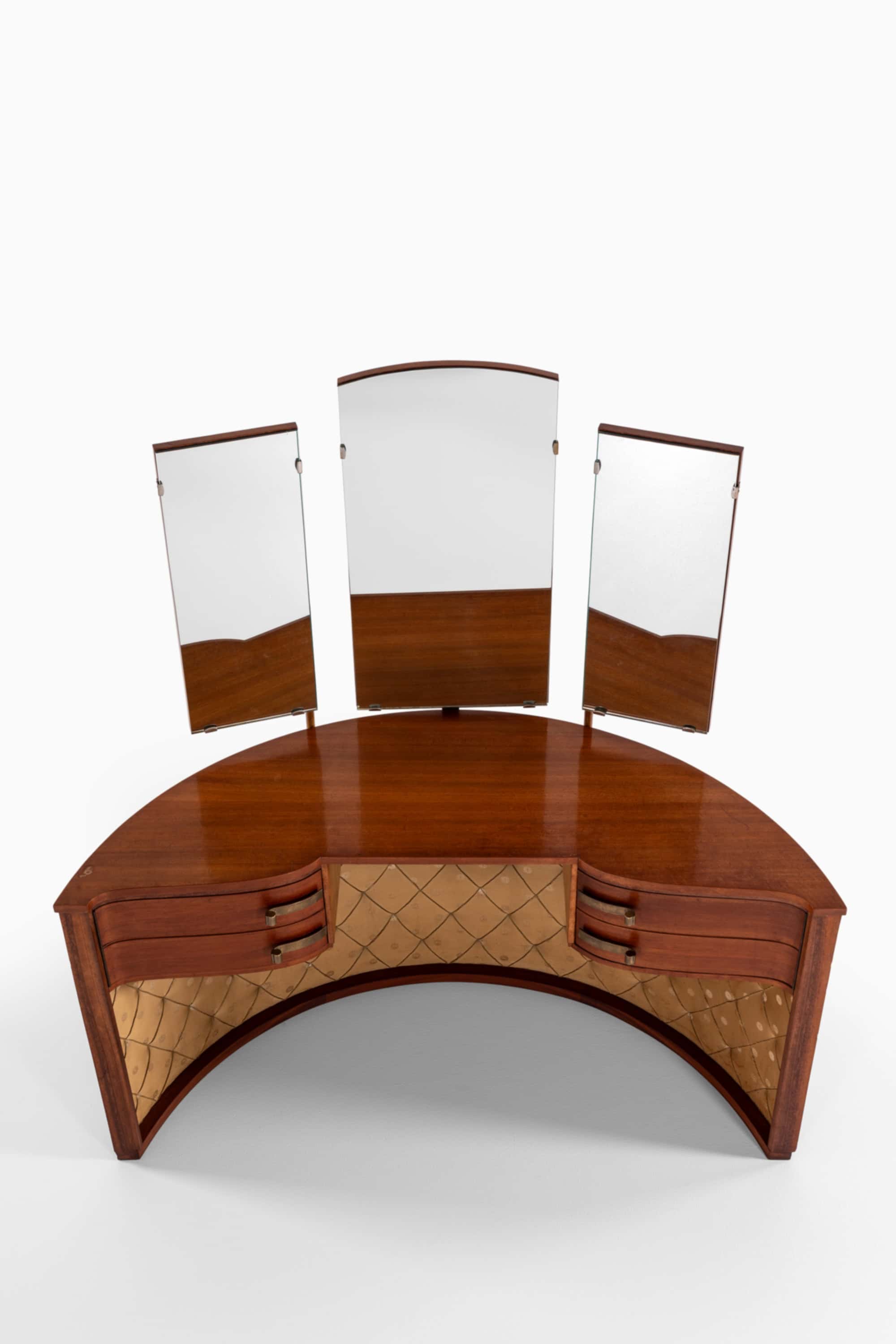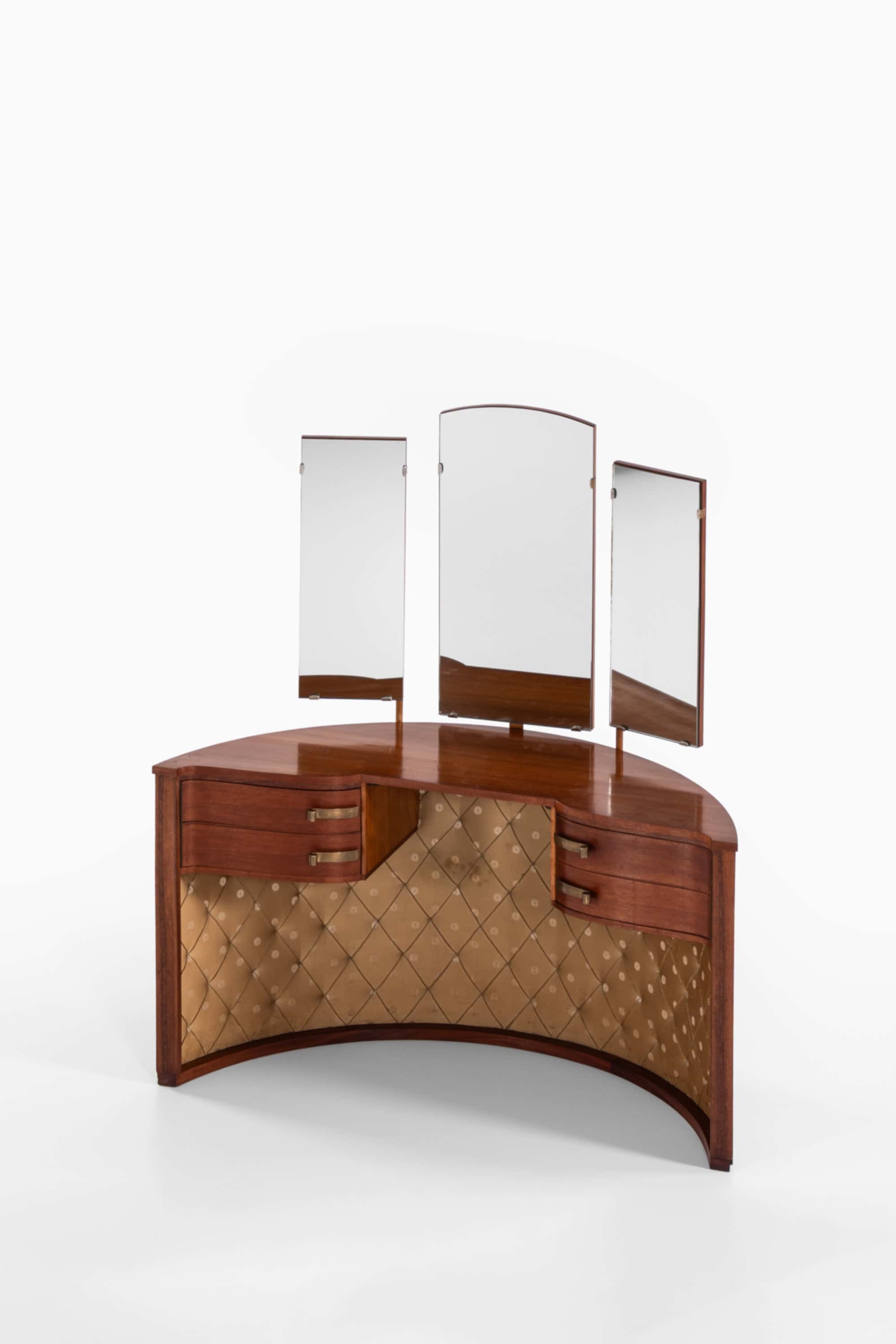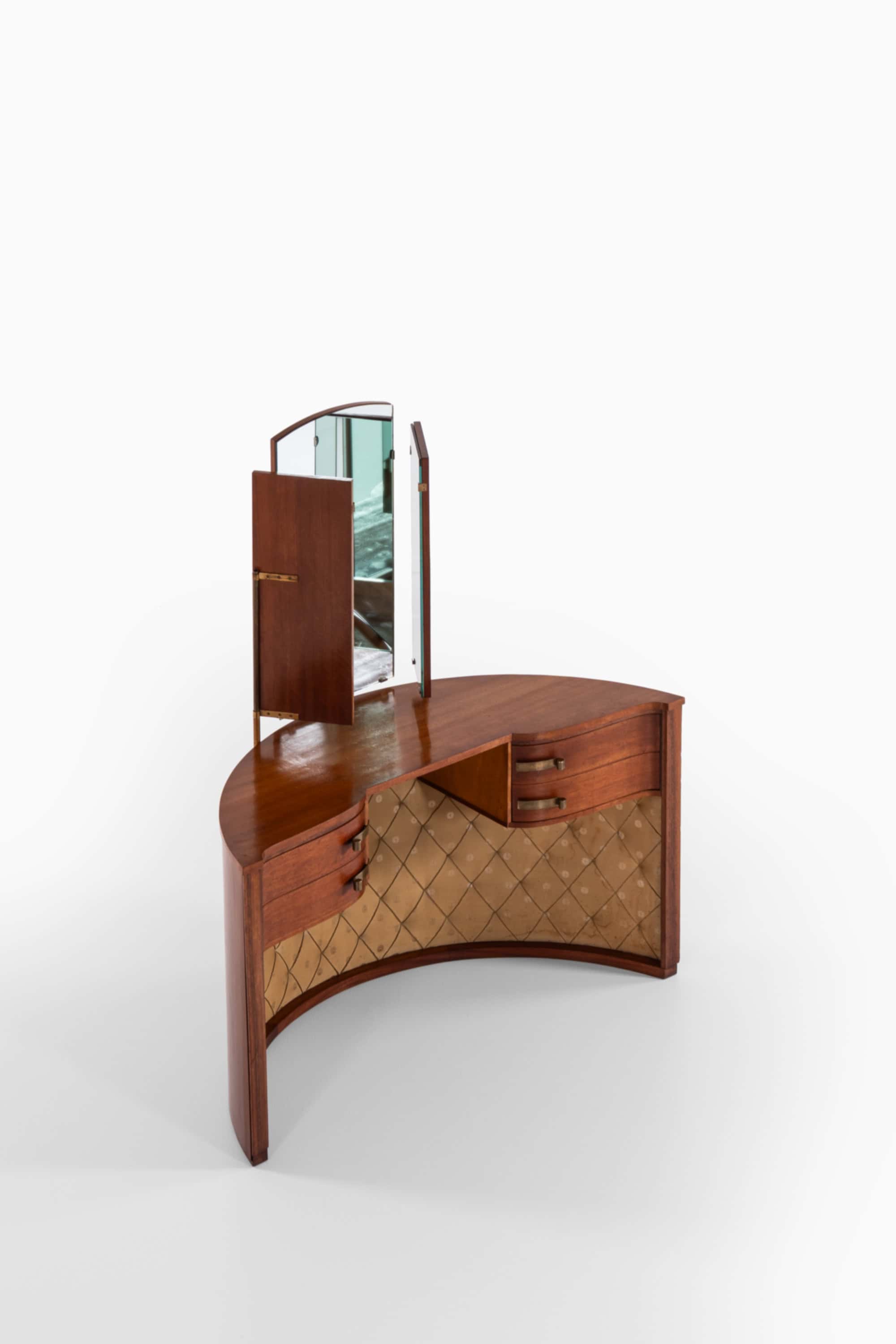 A very rare dressing table produced in Denmark during the 1930s, executed in a refined Art Deco style with a strong emphasis on curvature, material contrast, and decorative detailing. Although the designer remains unidentified, the piece reflects a high level of cabinetmaking typical of Scandinavian interpretations of Art Deco, where restrained elegance is combined with functional sophistication.