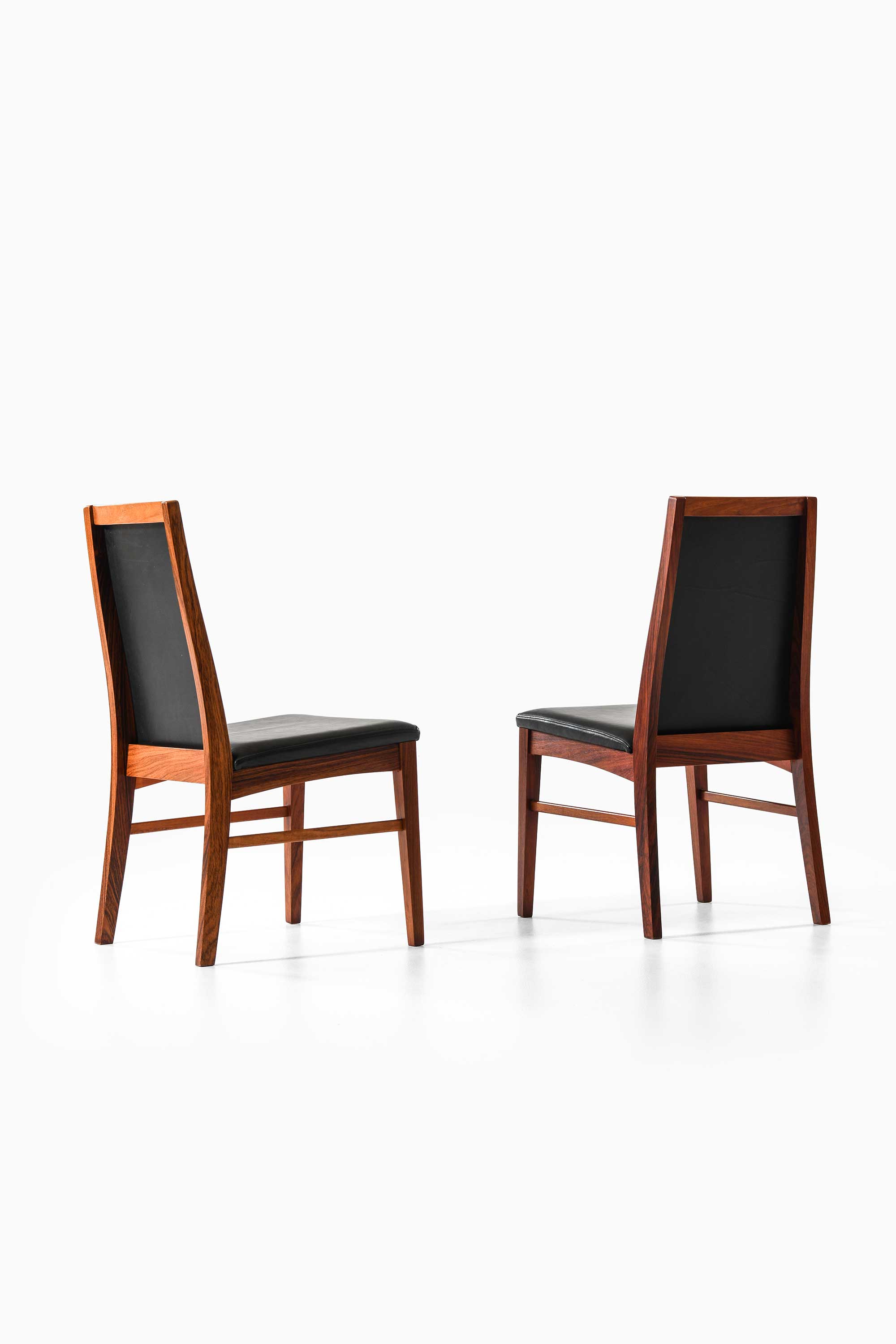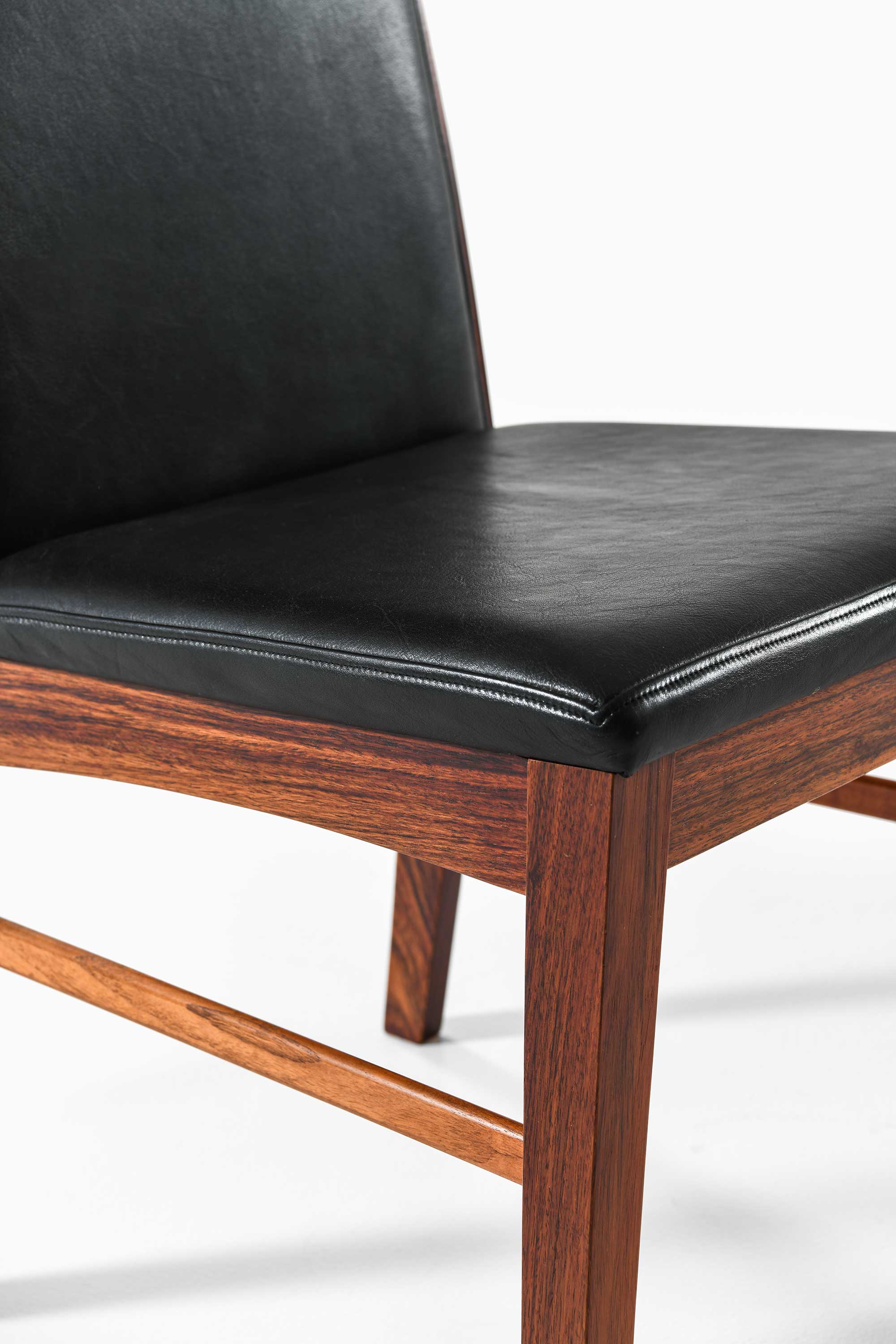 The chairs remain in very good vintage condition with a beautiful patina. The leather upholstery shows minimal signs of wear, and the rosewood frame has been well-maintained, with only minor marks consistent with age and use.