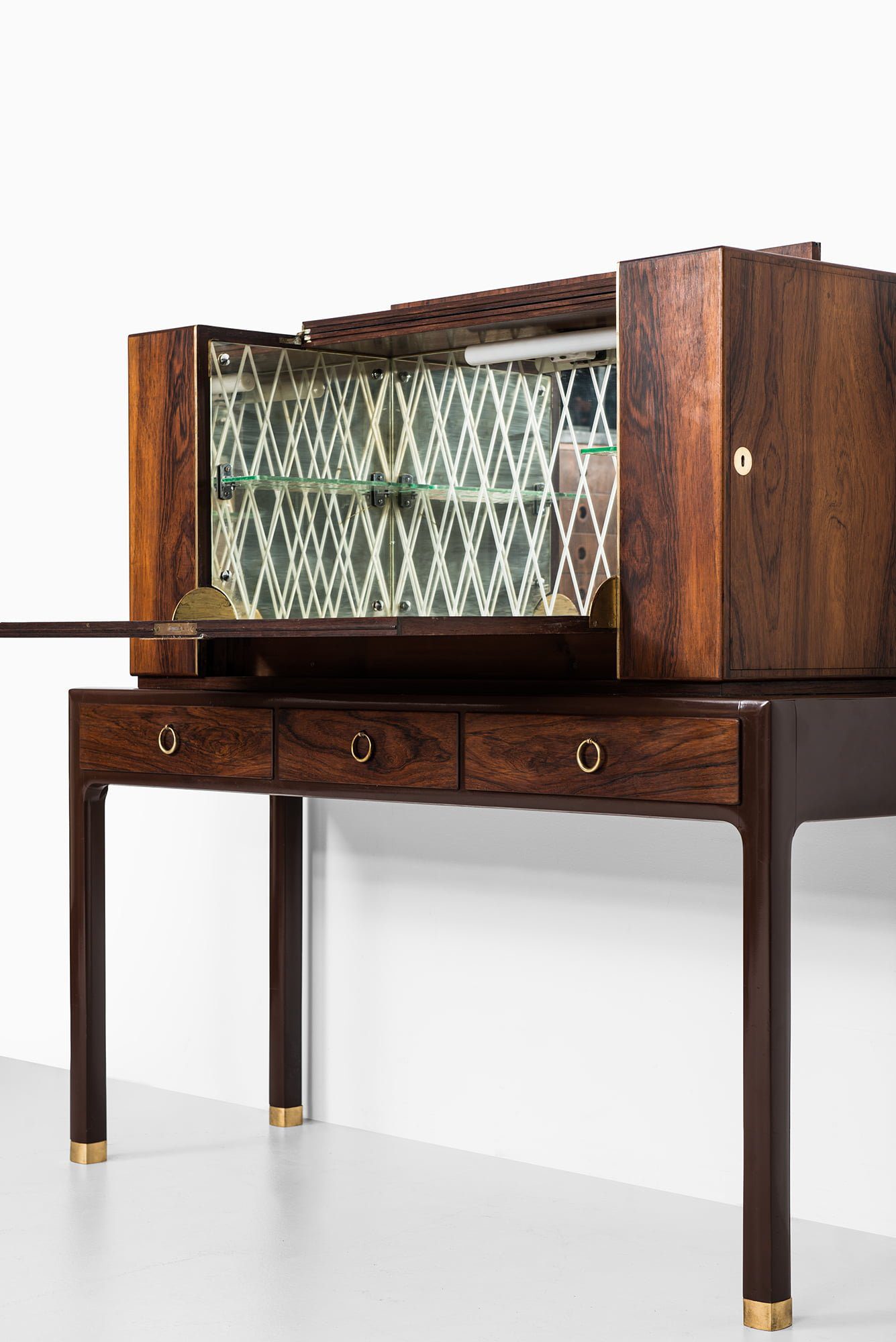 Ernst Kühn was known for his precise craftsmanship and his ability to balance functionality with decorative sophistication, which is evident in this design. Lysberg, Hansen & Therp was a leading Danish furniture manufacturer in the first half of the 20th century, celebrated for producing custom interiors and furniture of exceptional quality. This bar cabinet was exhibited at the World Exposition in Brussels in 1935, highlighting its status as a significant example of Scandinavian design from the period.
