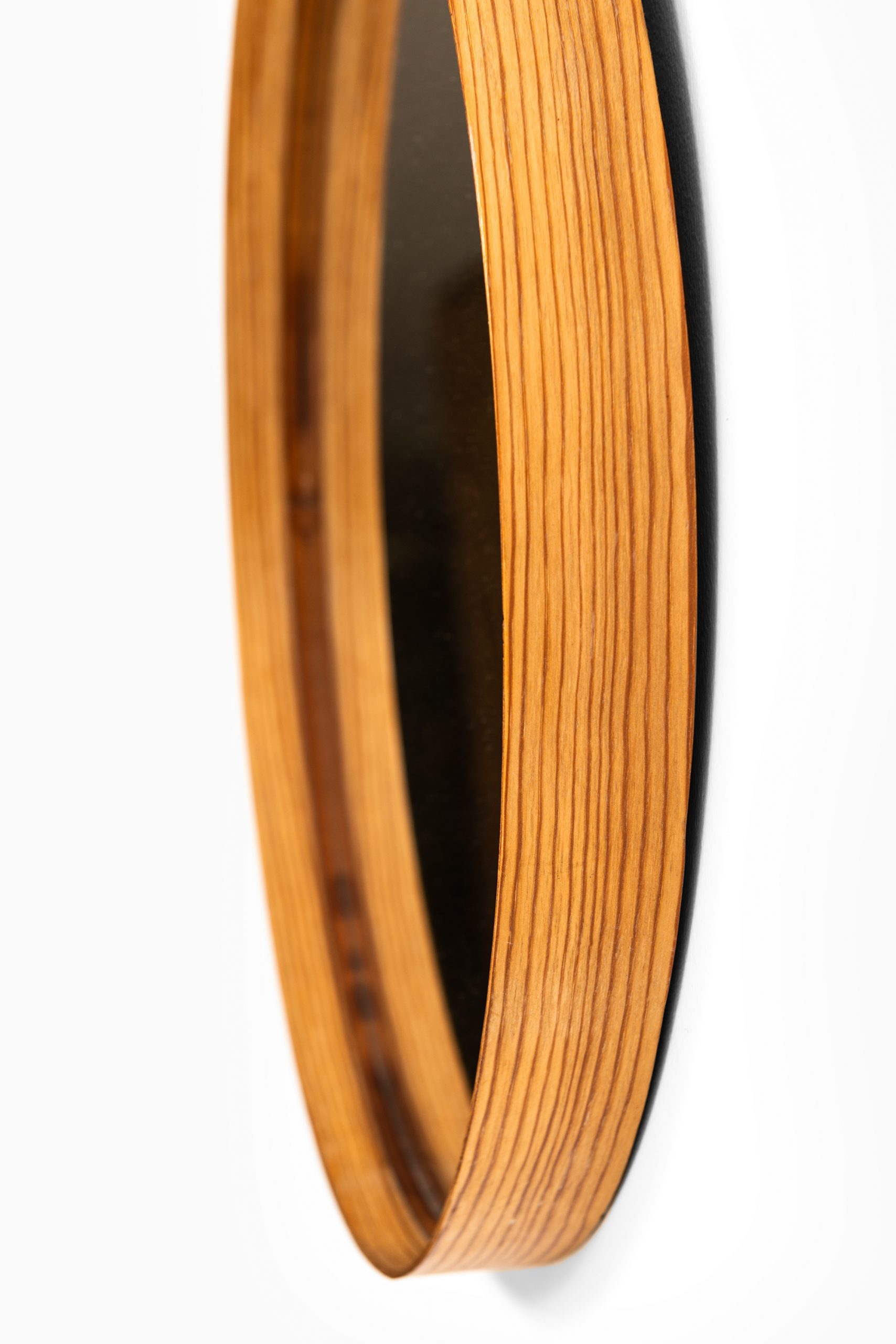 This rare circular wall mirror was produced by Glas Mäster in Markaryd, Sweden, during the 1950s. The design is a refined example of mid-century Scandinavian decorative arts, combining natural materials with minimalistic form and precision craftsmanship.