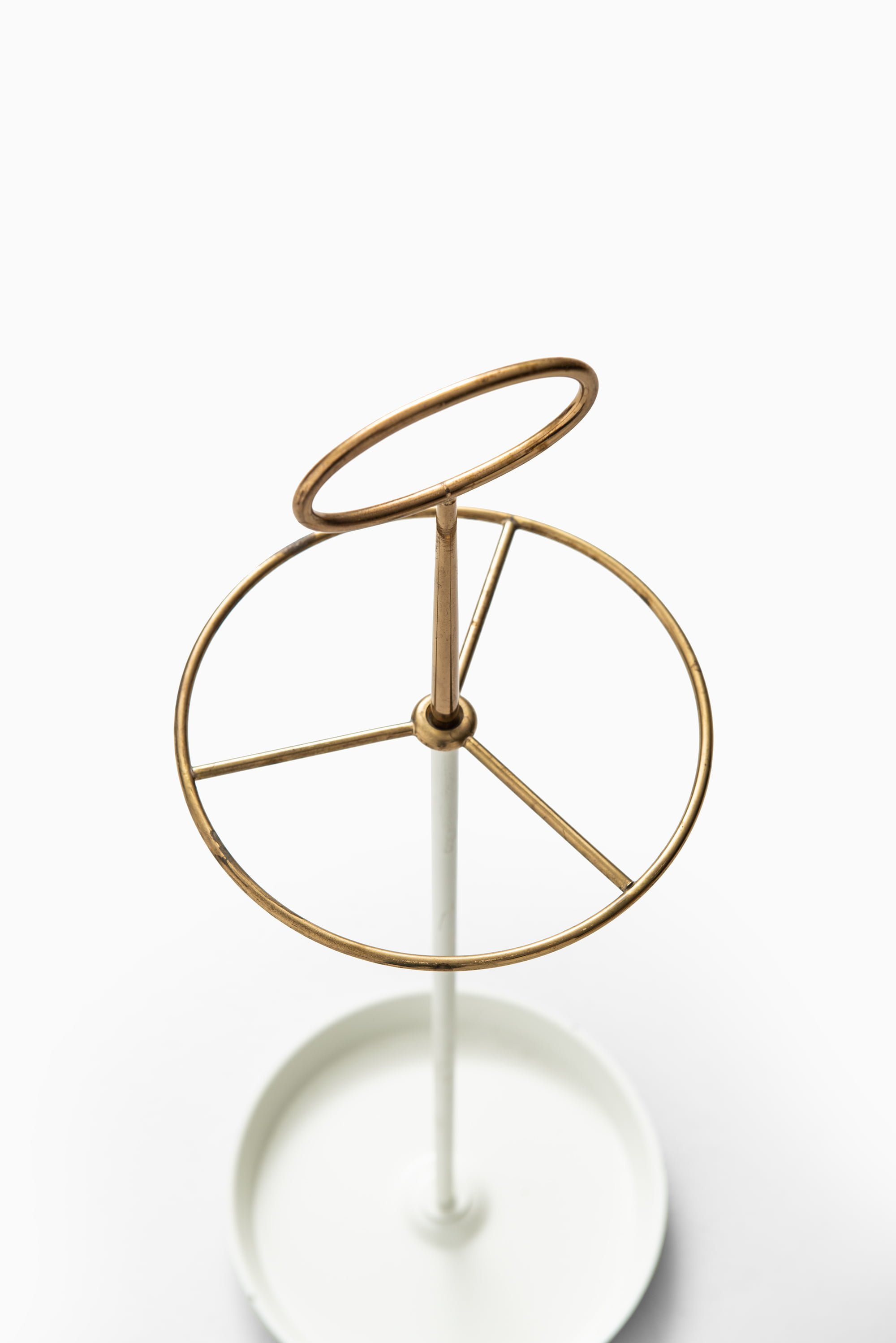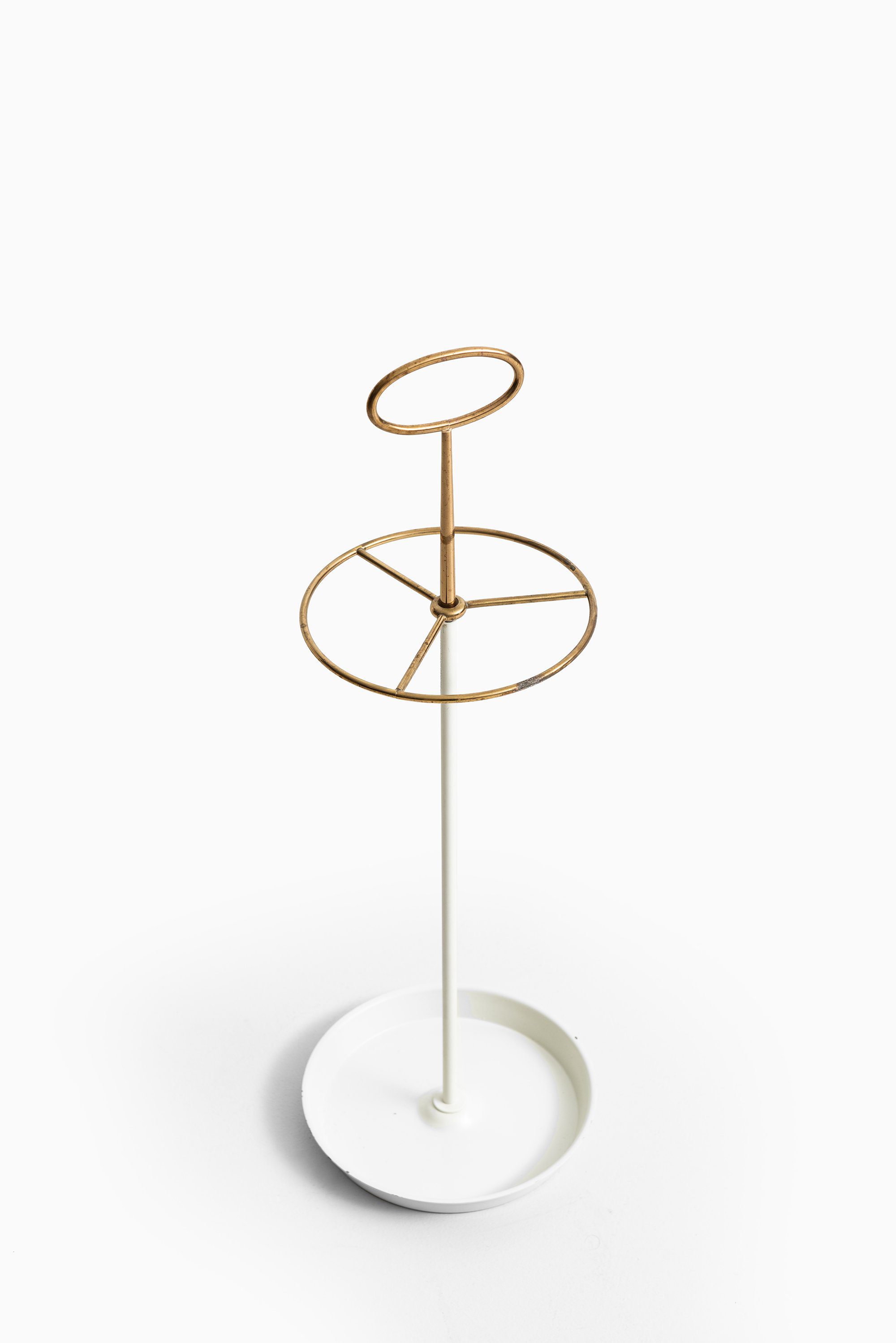 This elegant and minimalist umbrella stand was designed by Swedish designer Gunnar Ander and produced by Ystad Metall in Sweden during the 1950s. It exemplifies the refined aesthetics and functional craftsmanship characteristic of Scandinavian mid-century design, combining graceful lines with thoughtful material contrasts.
