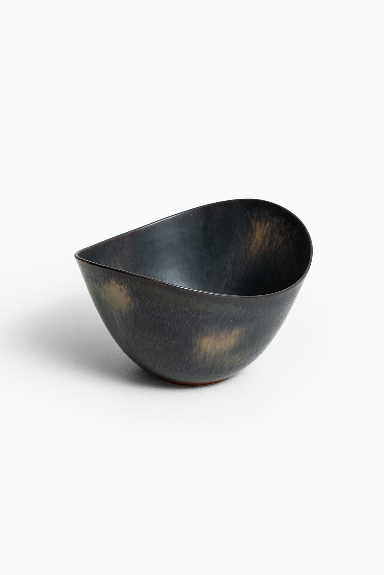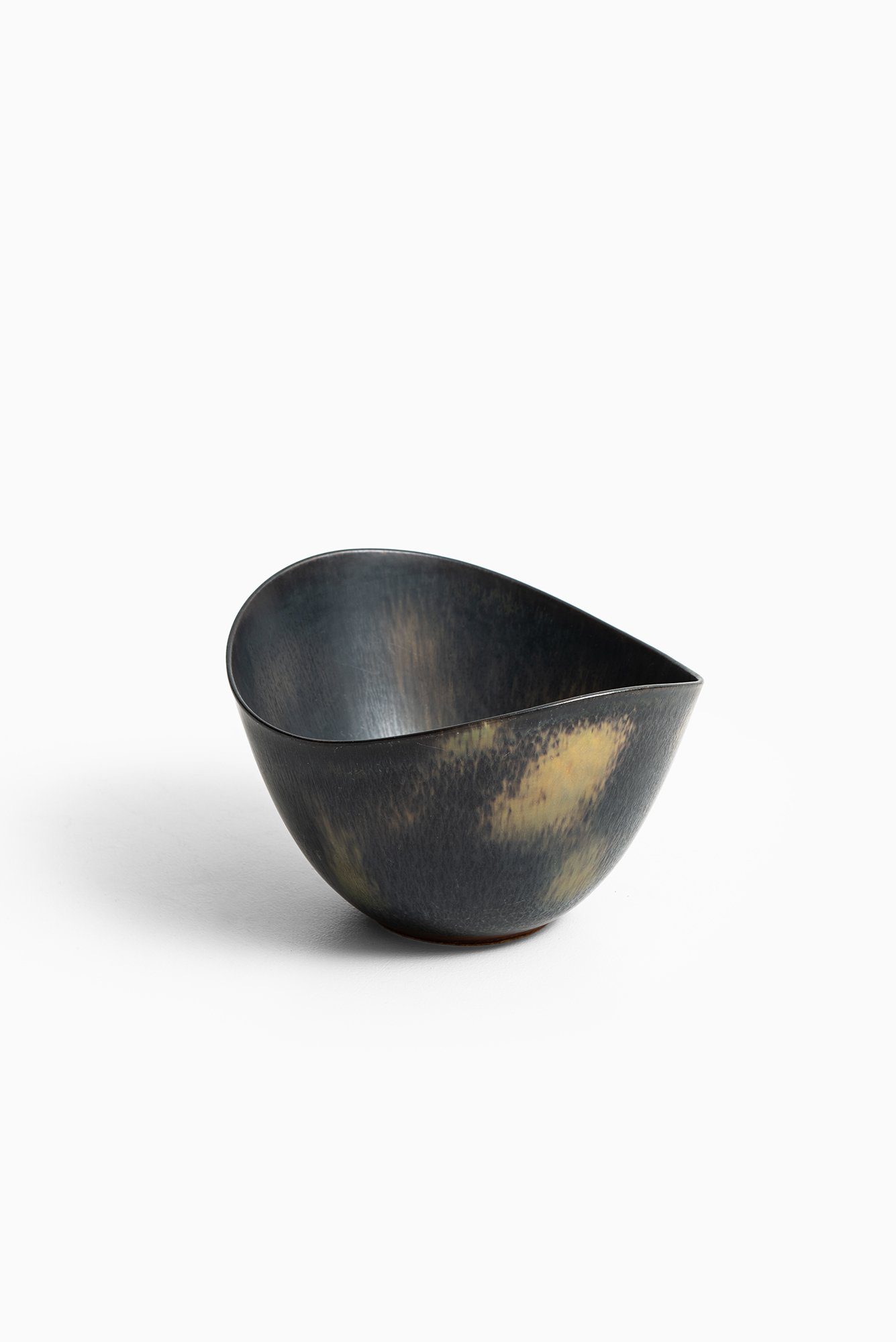 This ceramic bowl, model AXK, was designed by Gunnar Nylund for Rörstrand in Sweden. The piece is an excellent example of Nylund’s refined modernist aesthetic and his deep understanding of glazes and form. Executed in stoneware, it displays a softly asymmetrical shape with a fluid, organic contour, typical of his mid-century work.