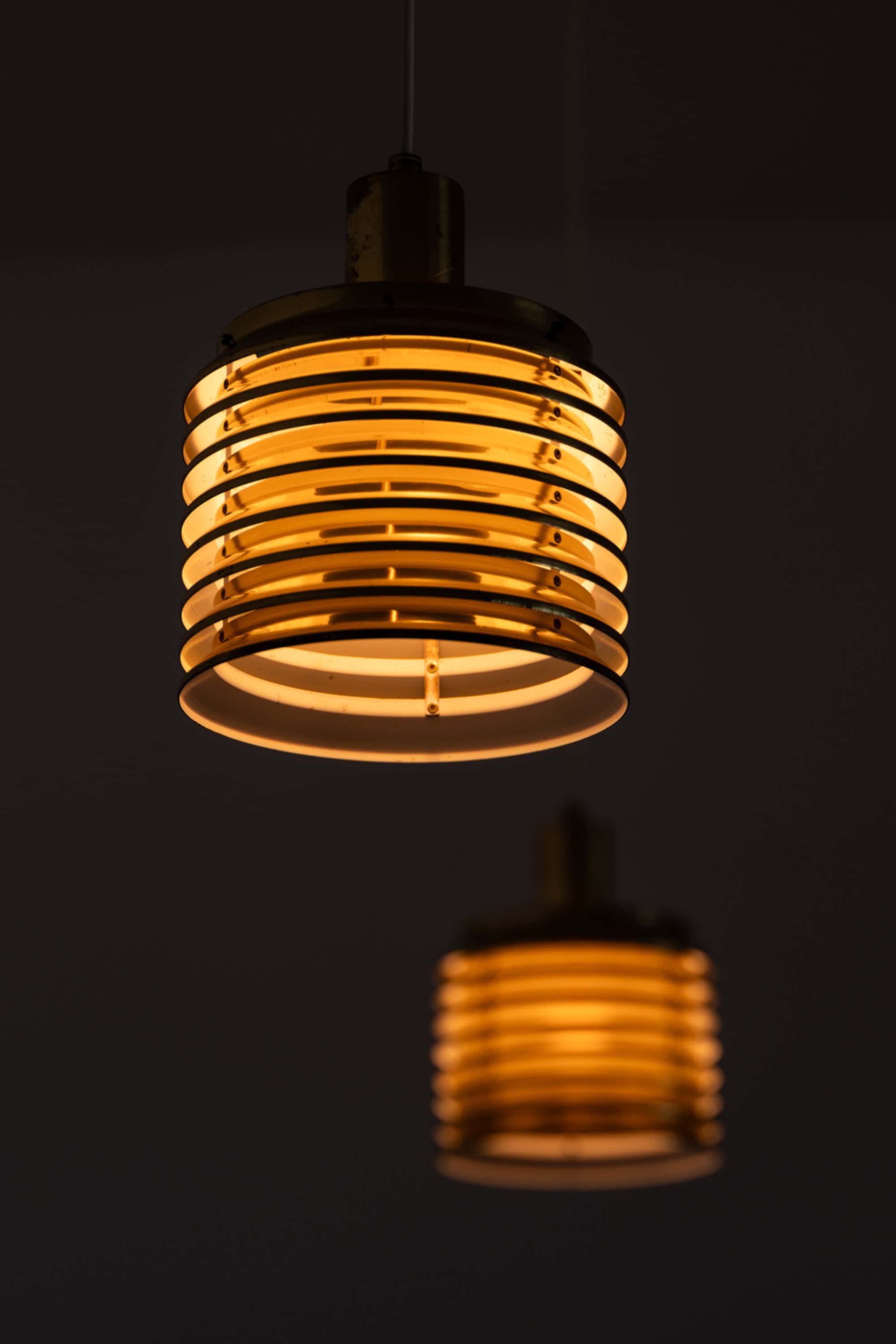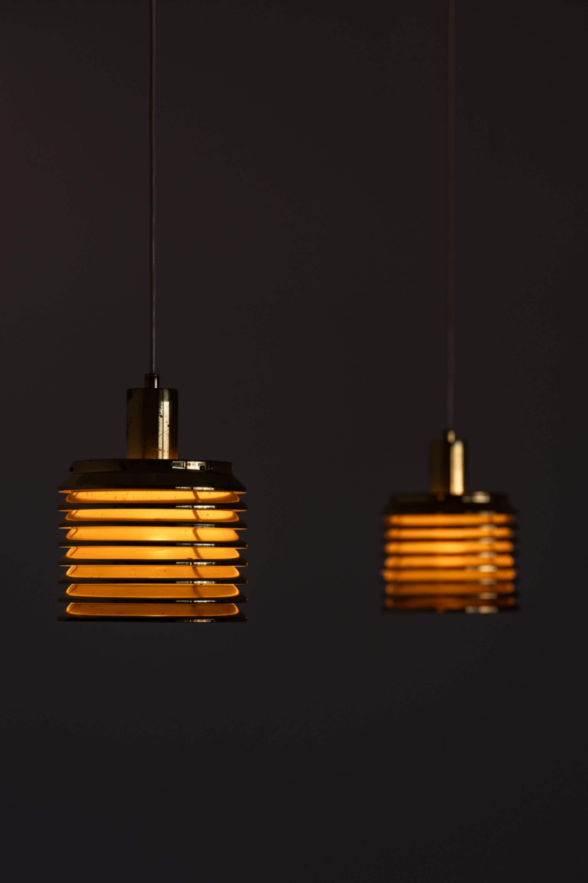 Rare ceiling lamps, model T-642, designed by Hans-Agne Jakobsson and produced by his own company in Markaryd, Sweden during the 1950s. The model reflects Jakobsson’s refined approach to atmospheric lighting, where layered construction and material warmth are central elements.