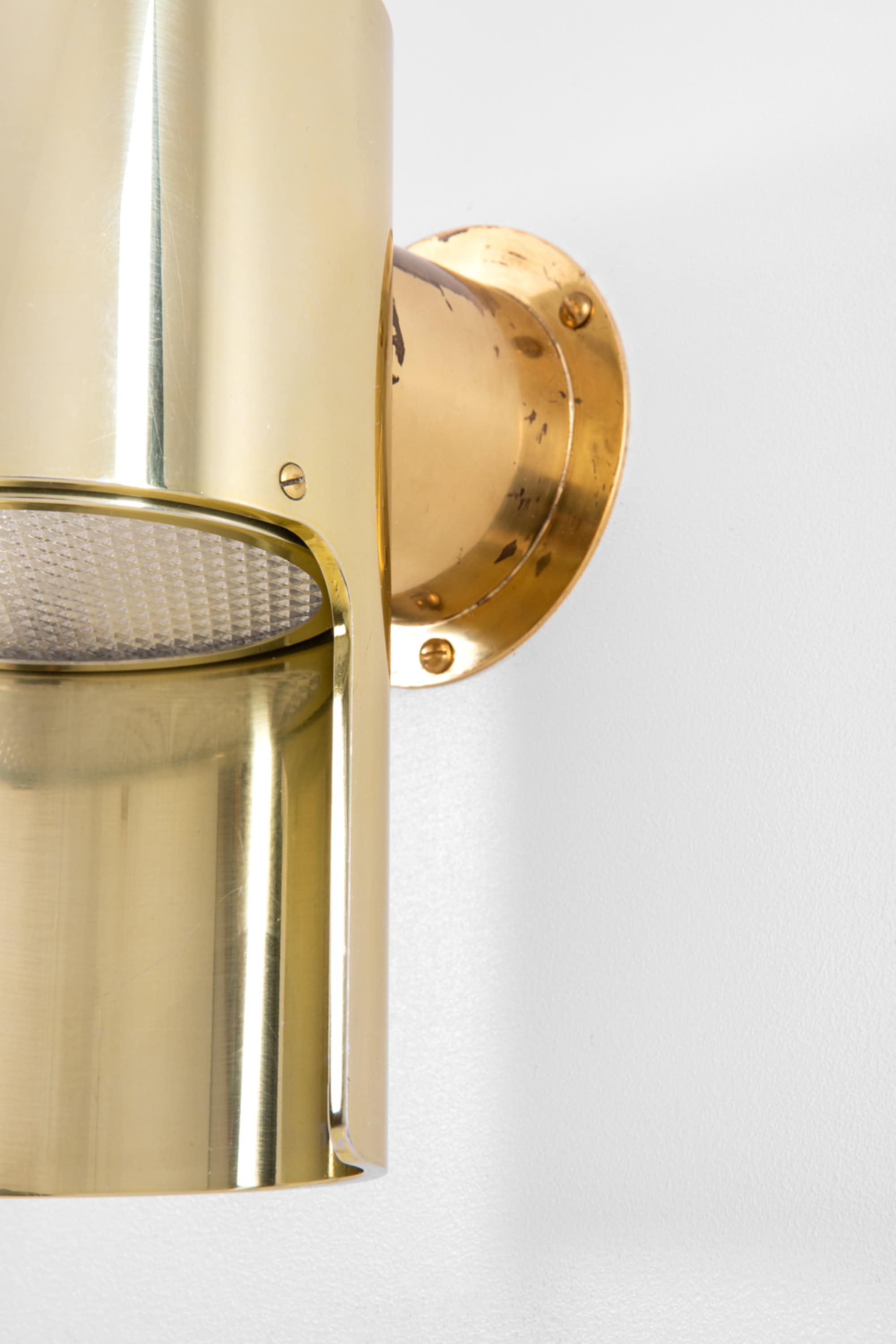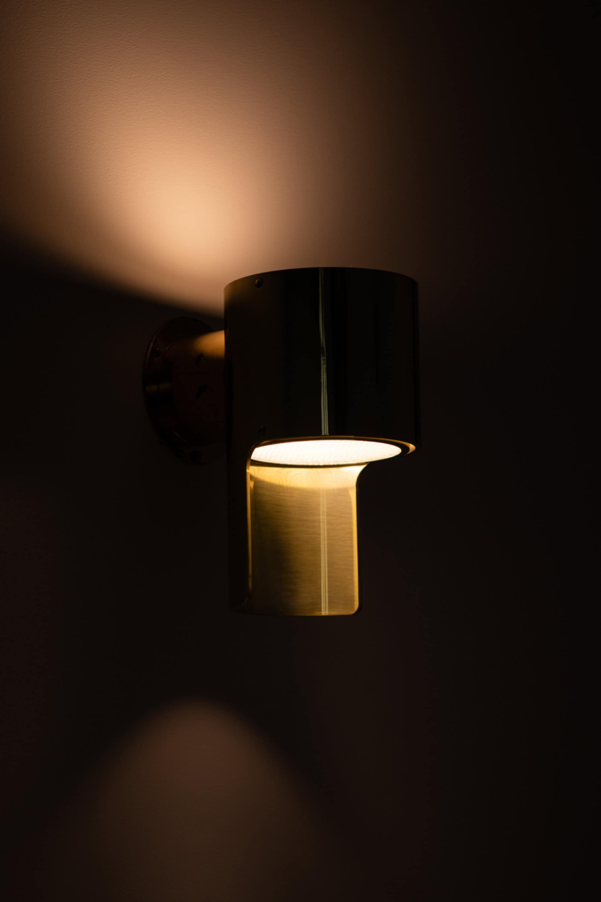 Hans-Agne Jakobsson is especially recognized for his contribution to Swedish lighting design in the post-war period, combining industrial precision with atmospheric lighting characteristics. While he is widely associated with perforated and layered brass shades, his design practice also included smaller architectural wall fixtures like this, often intended for public interiors and hospitality environments where durability, controlled light output, and a refined visual presence were required. This model was custom made for a hotel in Sweden, which adds a specific historical context.