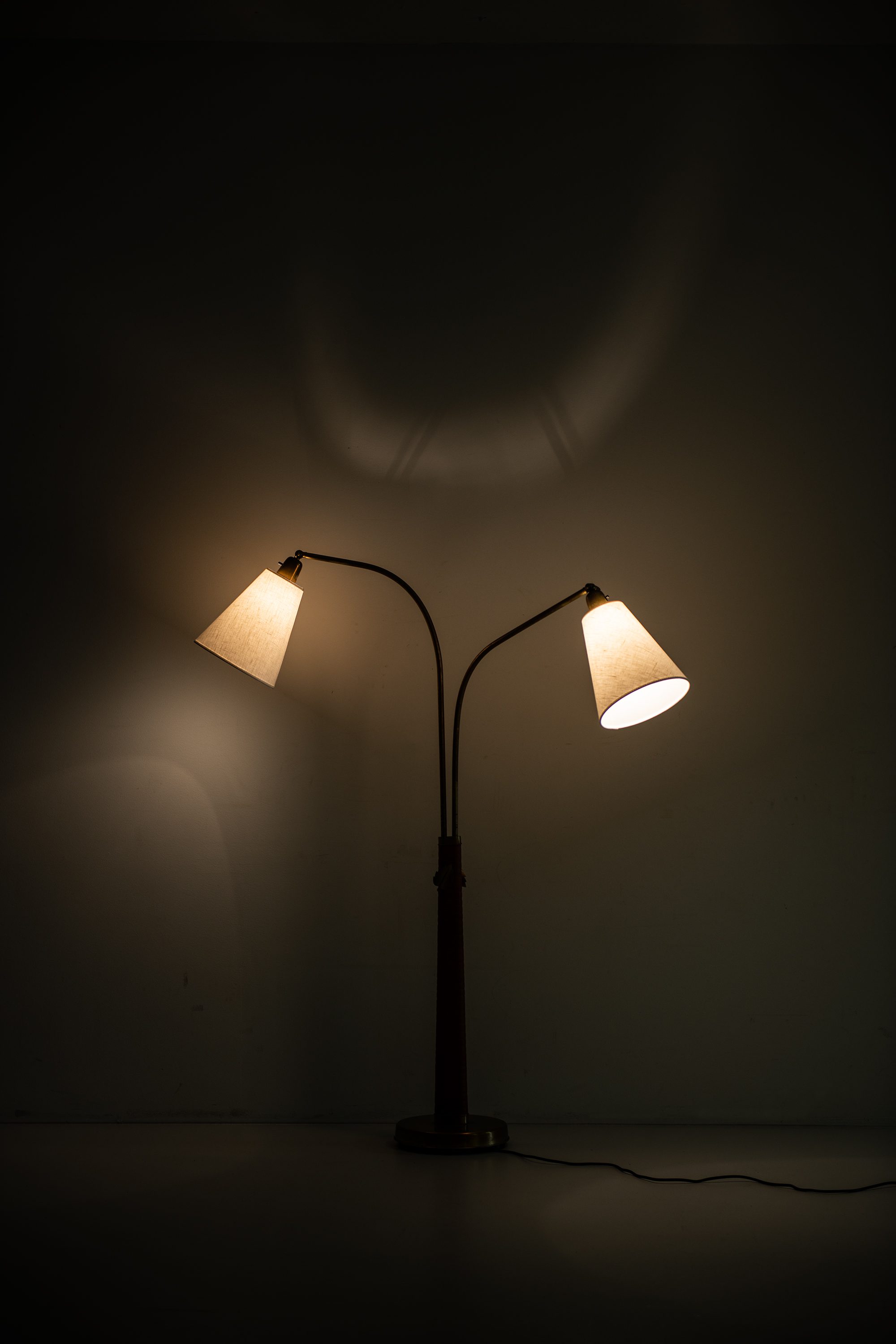 This is a rare example of model no. 500, a dual-shade floor lamp designed by Hans Bergström and produced by Ateljé Lyktan in Åhus, Sweden, during the 1940s. The lamp reflects Bergström’s early postwar design ethos, combining material refinement with sculptural sensibility, and exemplifies his important contributions to Scandinavian lighting design.