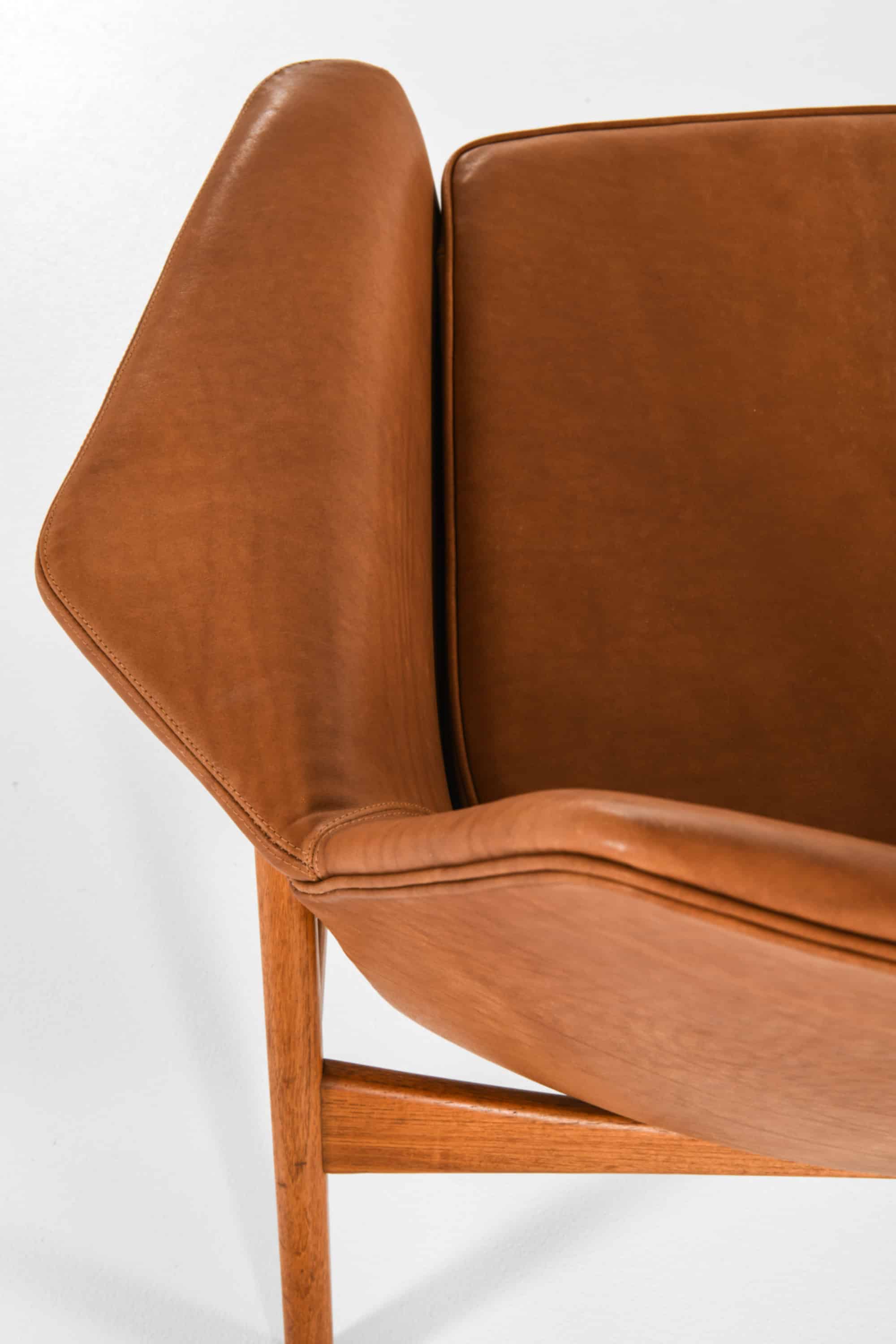 Ib Kofod-Larsen was known for his refined approach to seating design, where organic lines, ergonomic consideration, and high-quality materials were carefully balanced. His work from the late 1950s often explored wider, more relaxed seating forms, intended for modern domestic interiors. The collaboration with OPE resulted in a number of technically accomplished pieces, characterized by solid craftsmanship and a clear Scandinavian modernist identity.