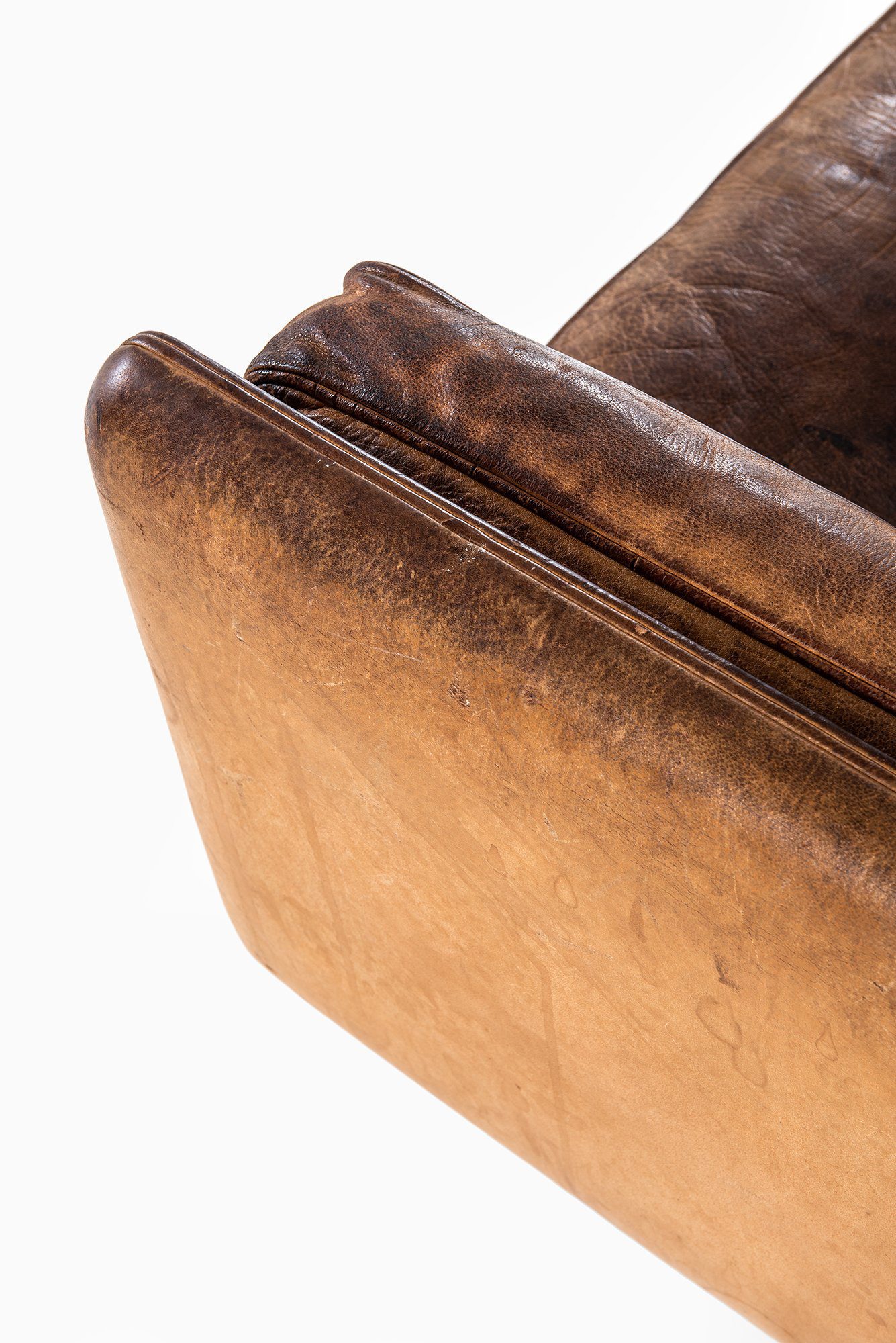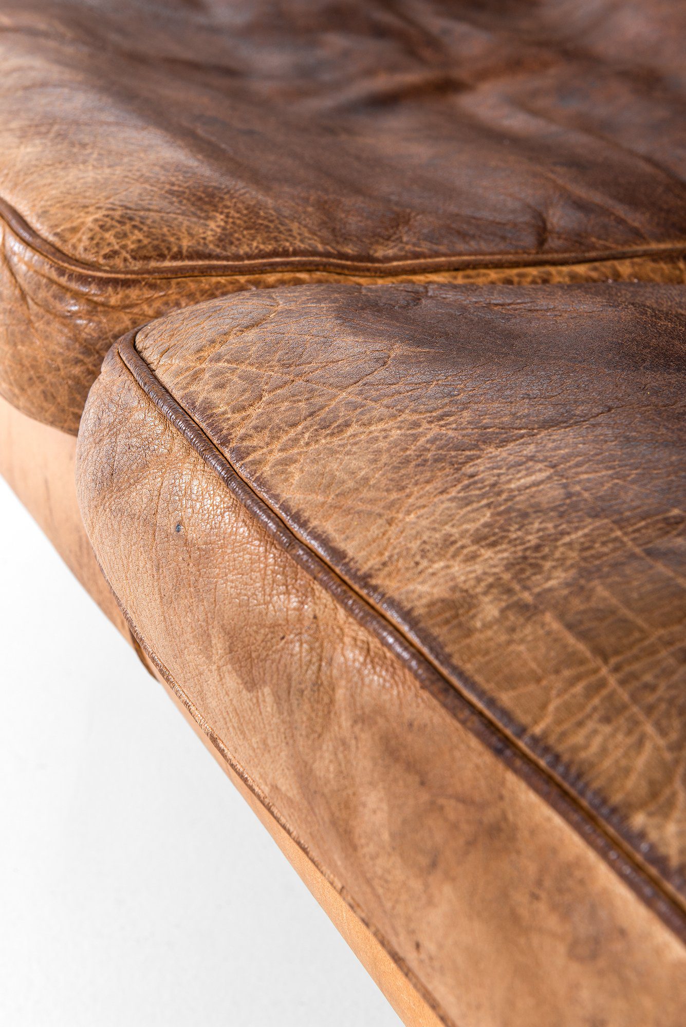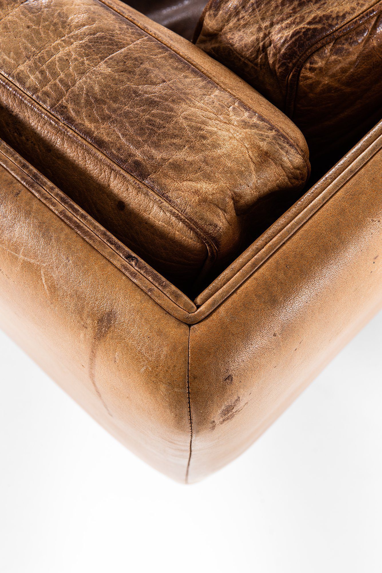 The sofa remains in good vintage condition, showing an appealing patina and wear consistent with use and age. The leather retains suppleness, and the structure is stable and well-preserved, highlighting the longevity of its craftsmanship.