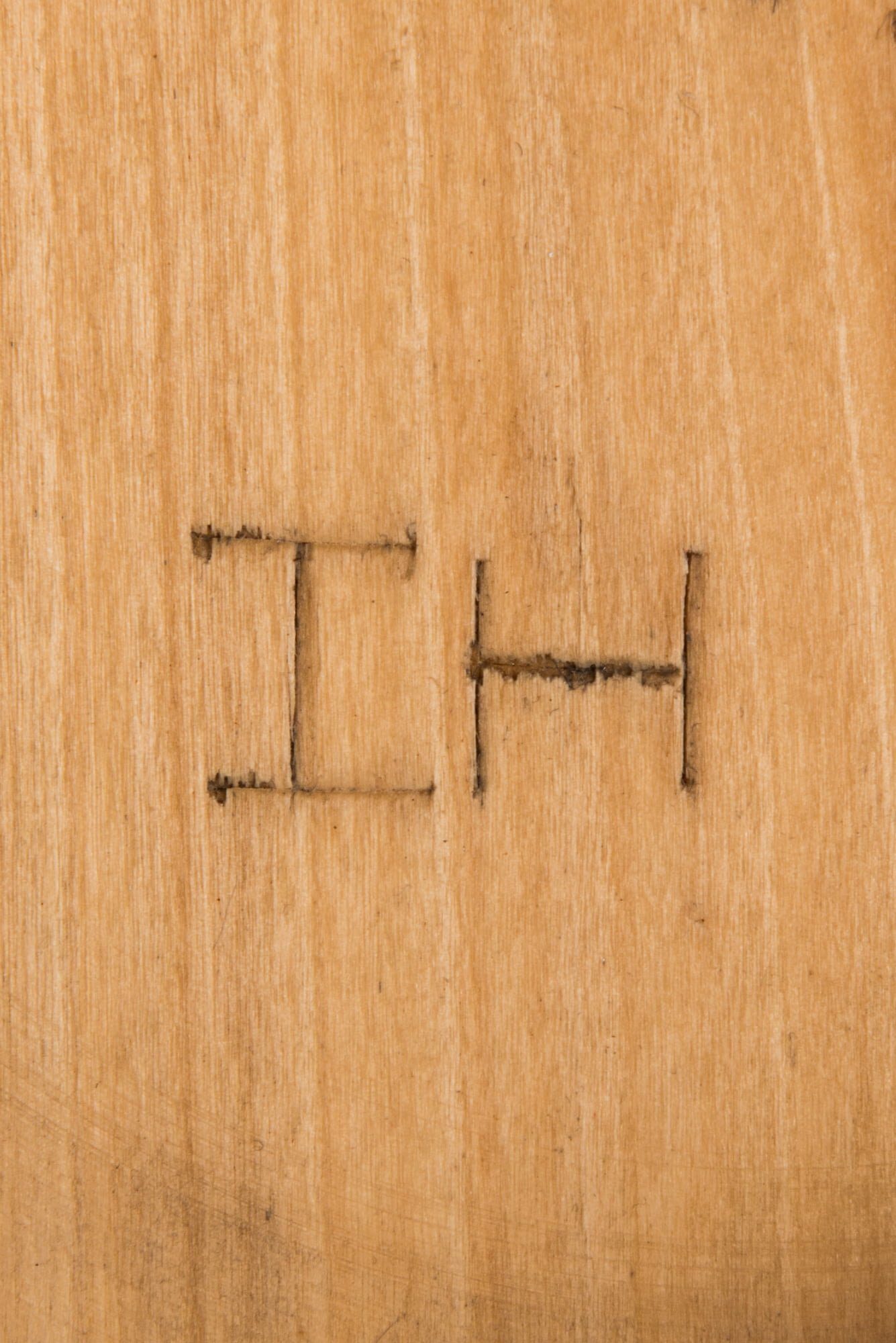 The stool is in excellent vintage condition, with only small signs of usage consistent with its age. The piece has a sculptural quality due to its well-proportioned dimensions and the visual weight of the solid birch construction. The designer’s initials, I H, are carved into the underside, providing authenticity and a connection to its maker.