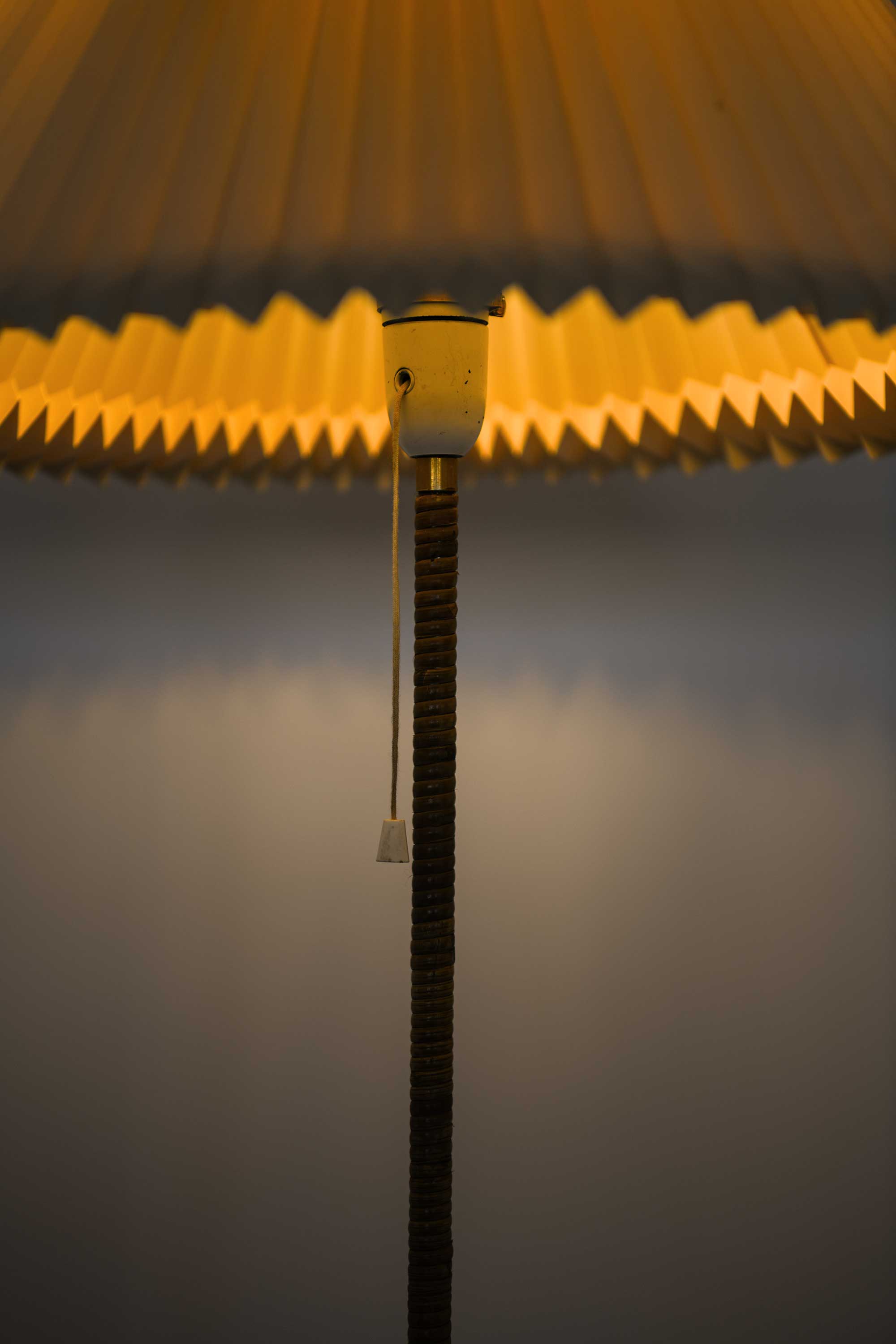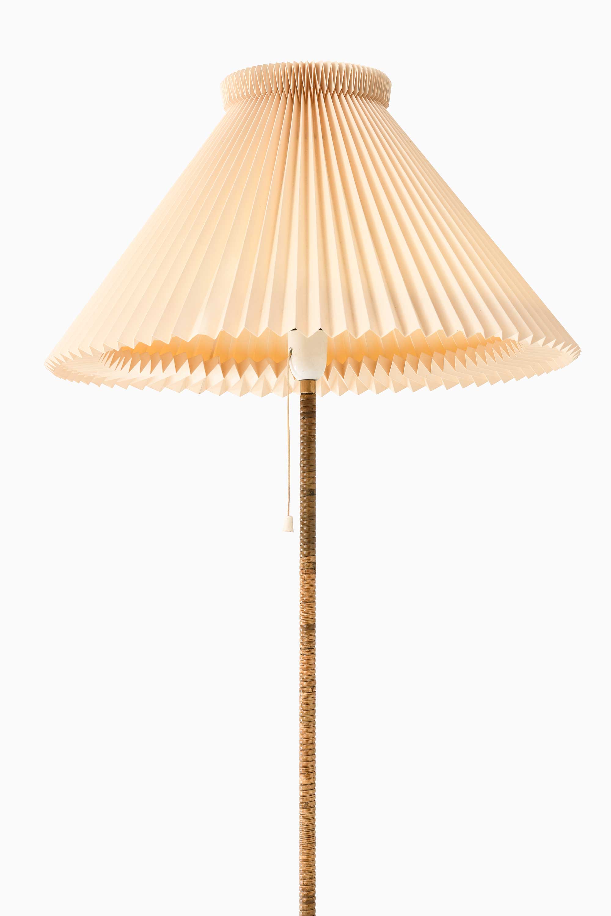 This rare pair of floor lamps, produced by Itsu in Finland, reflects a distinctly Scandinavian approach to materials and form. Designed by an unknown maker, the lamps exhibit a vertically oriented composition that blends organic and refined elements—leather, cane, and brass—into a cohesive and elegant profile. Their construction and material palette suggest a mid-century Finnish design sensibility, emphasizing tactile quality and understated detailing.