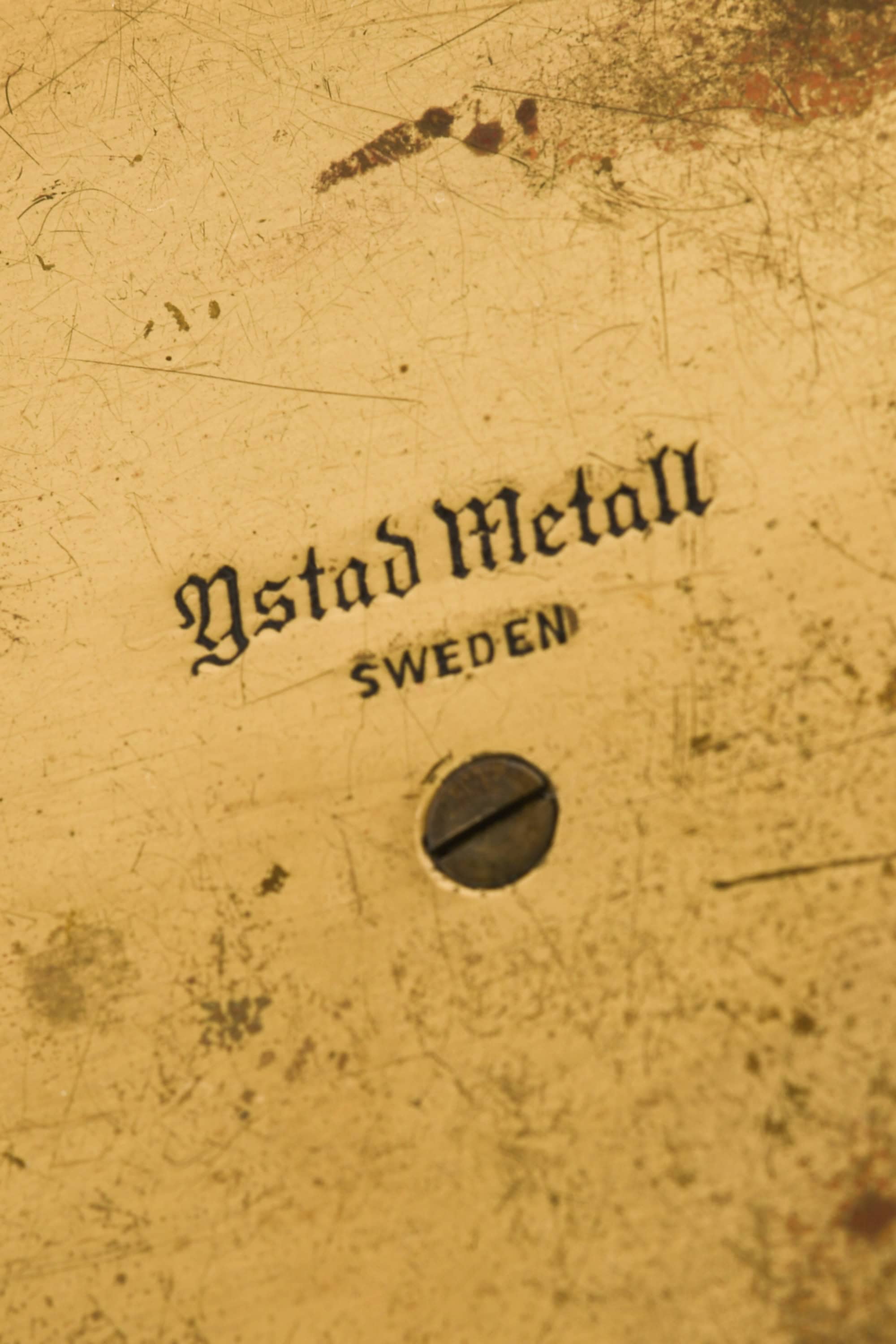 Ivar Ålenius-Björk (1905–1978) was a prominent Swedish sculptor and designer, known for his elegant metalwork and for numerous designs for Ystad Metall, one of Sweden’s most important producers of decorative metal objects during the 20th century. This mirror is a fine example of his work, reflecting his ability to combine sculptural form with functional design. The clean circular geometry and slender frame align with the Scandinavian modernist aesthetic, prioritizing simplicity and refined proportions.
