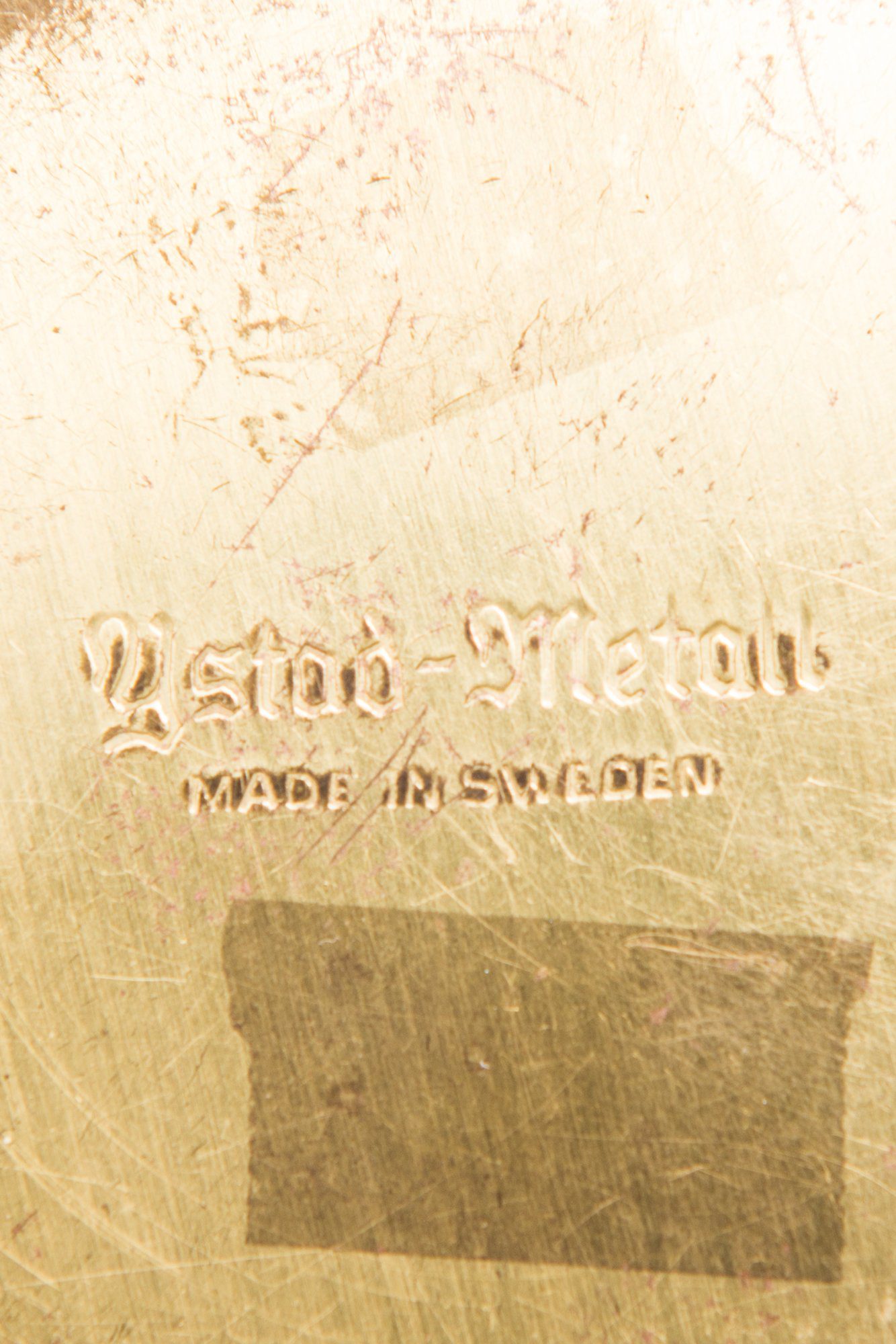 Ystad Metall, founded in the late 19th century in southern Sweden, was a leading producer of decorative brass and bronze objects throughout the early and mid-20th century. The company collaborated with some of Sweden’s foremost designers, producing objects that combined traditional craftsmanship with modern stylistic trends, particularly Art Deco. Their work is recognized for its quality and elegance, contributing significantly to the international reputation of Scandinavian design.