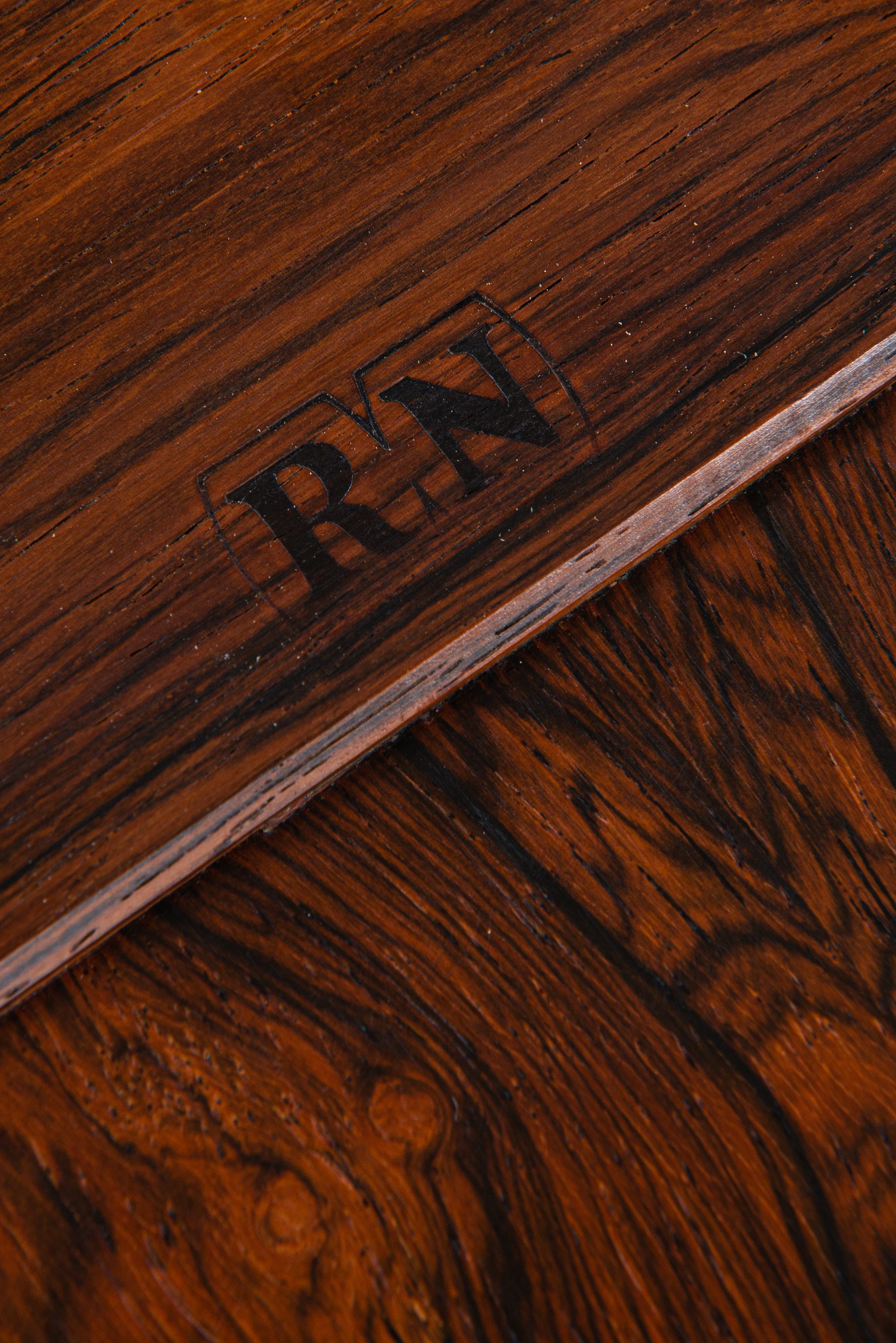 Jens Harald Quistgaard, known internationally for his long-standing work with Dansk Designs, brought a sculptural and functional sensibility to furniture and tableware alike. His collaboration with Nissen Langå reflects his ability to blend traditional woodworking techniques with modern Scandinavian design principles. The combination of rosewood and artisan ceramics is characteristic of Danish design in the 1960s, when natural materials and refined detailing defined the aesthetic.