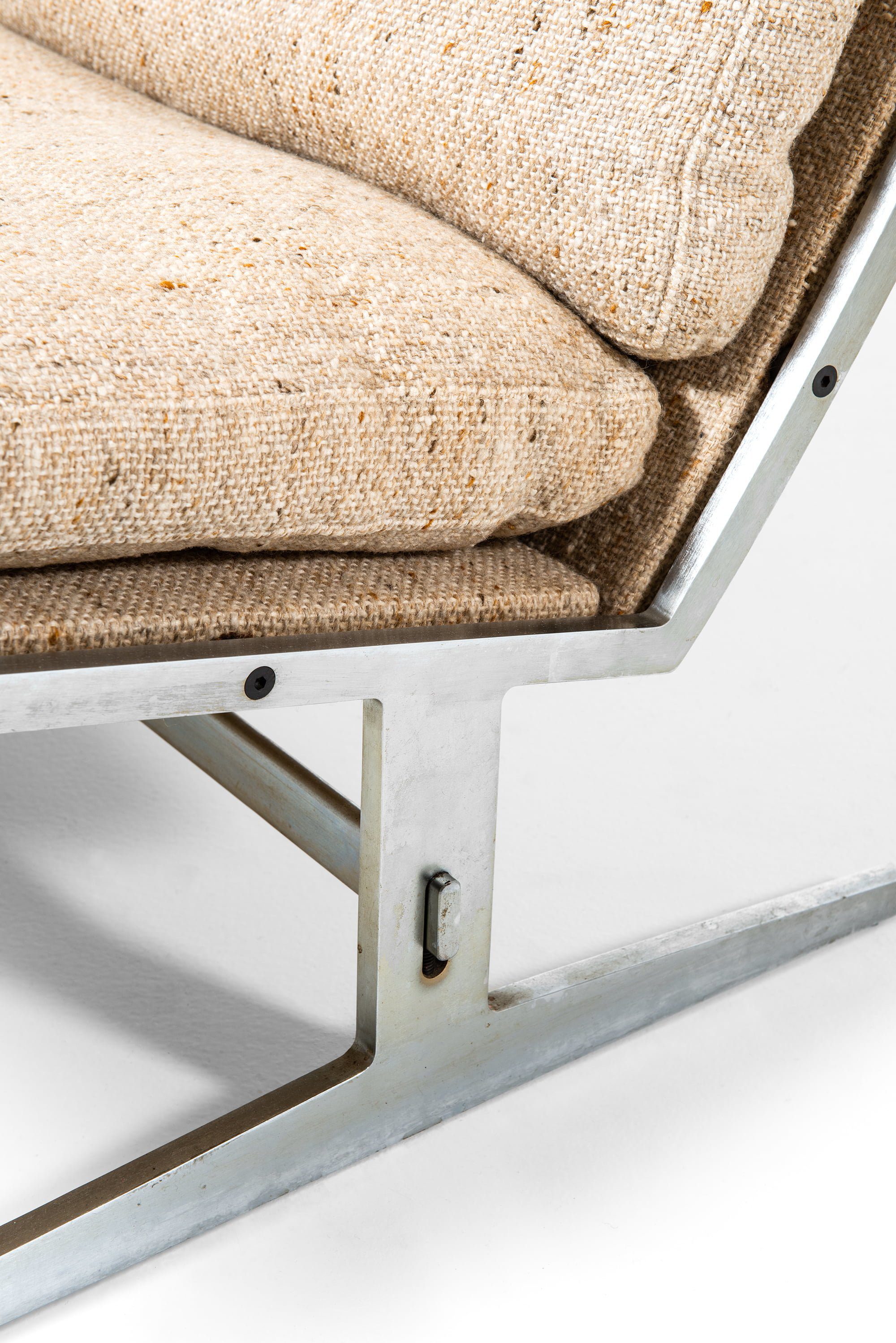 Produced by Bo-Ex, a company known for pushing the boundaries of Danish furniture design through experimentation with metal and new production techniques, this sofa stands as a rare example of mid-century innovation. The original fabric has aged gracefully, maintaining its texture and character, while the steel frame shows light patina consistent with use and age.