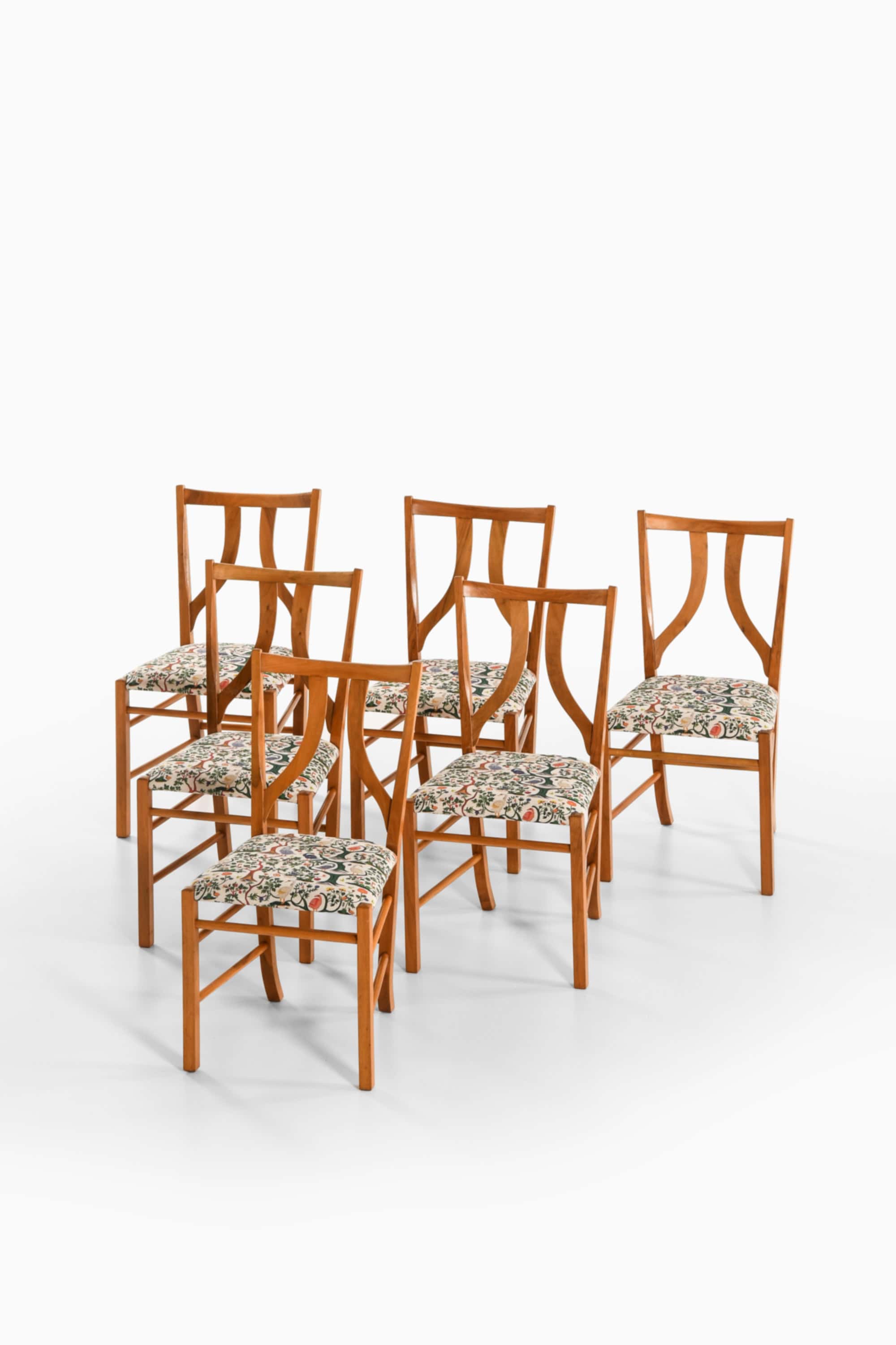 This set of six dining chairs, model B2027, was designed by Josef Frank and produced by Svenskt Tenn in Sweden during the 1950s. The chairs are constructed in walnut, a material chosen for its warm tone, refined grain structure, and stability. Each frame displays smooth, gently shaped elements with the characteristic clarity of Frank’s furniture designs, where structural lines remain visually light while maintaining strength and durability.