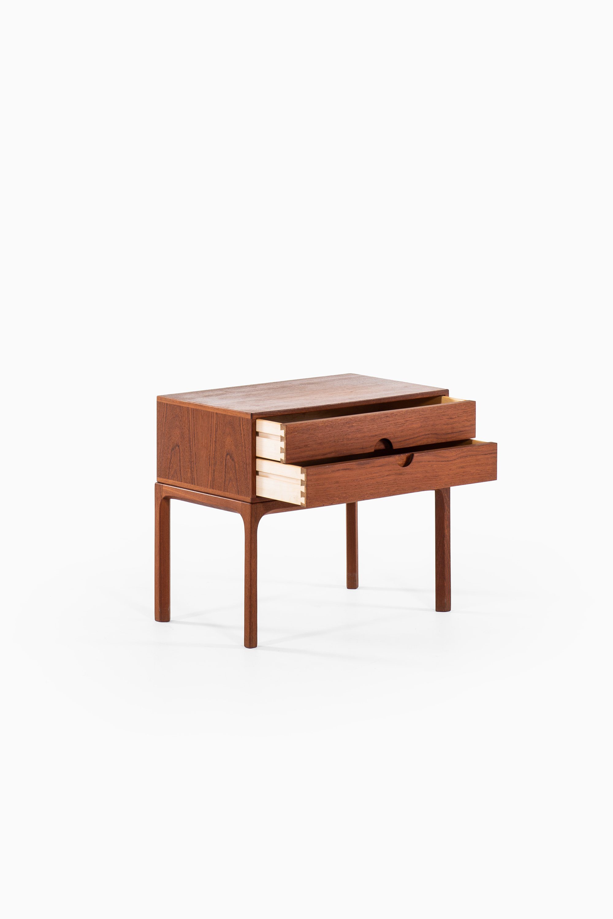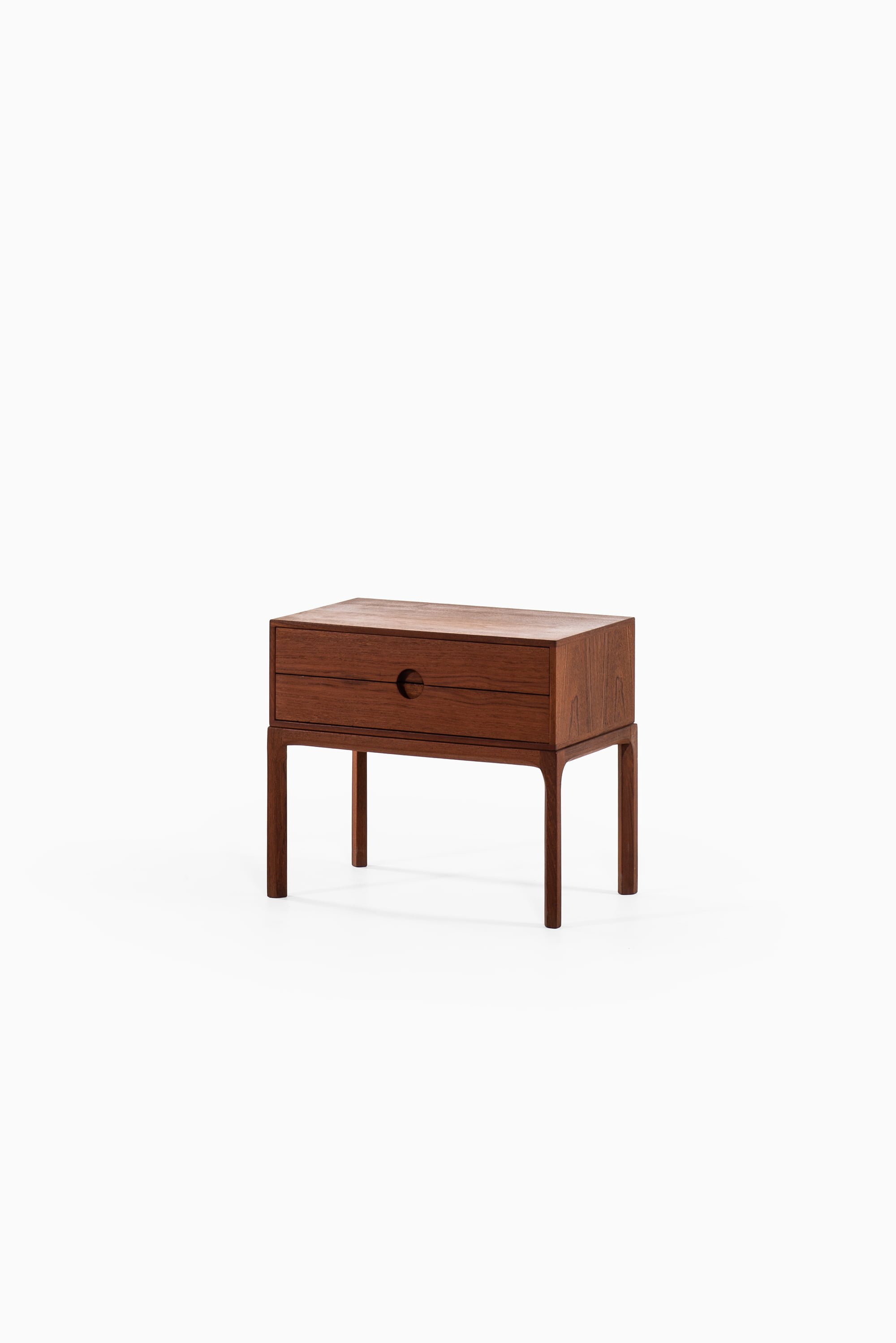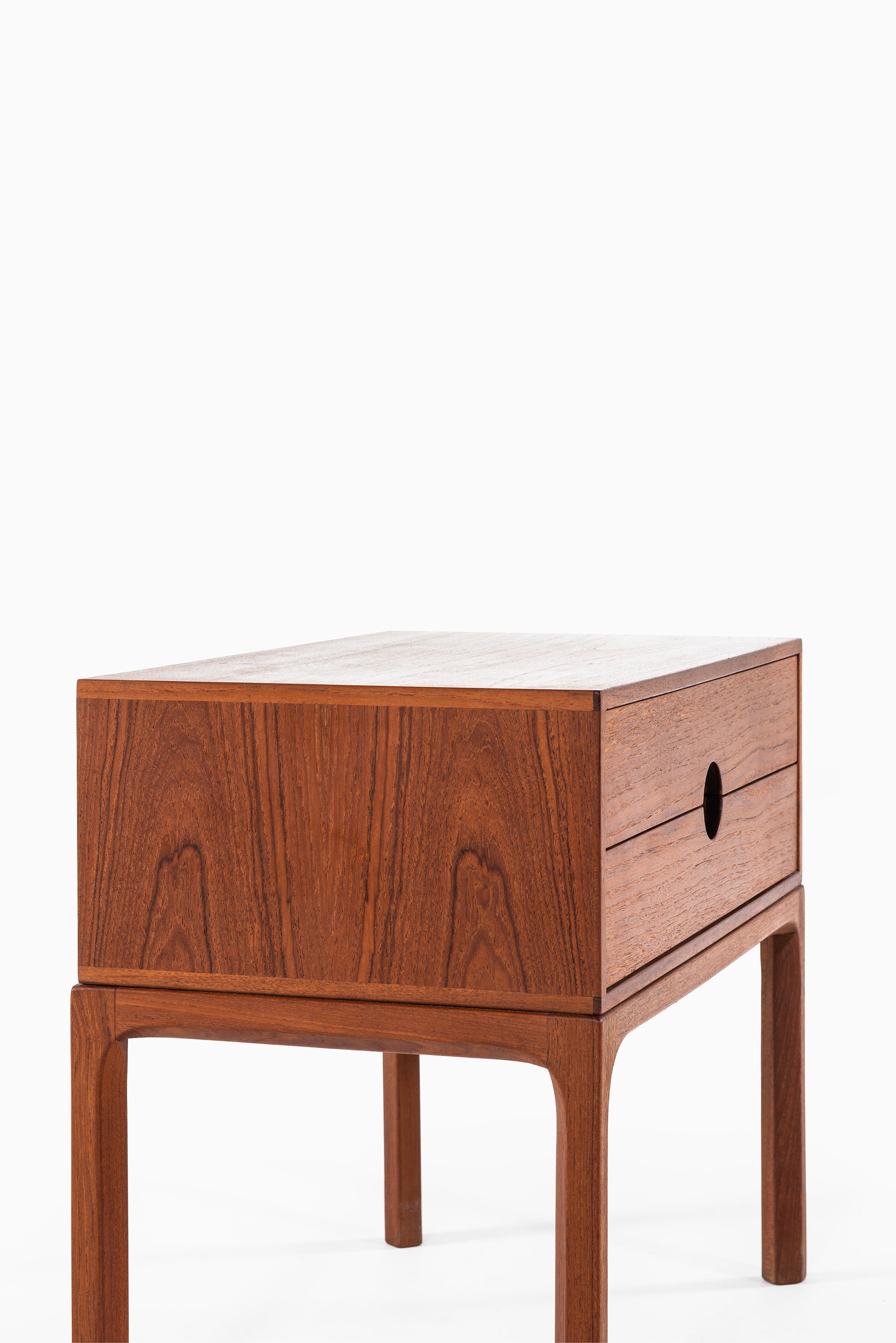 This rare bedside or side table, model 384, was designed by Danish designer Kai Kristiansen and produced by Aksel Kjersgaard in Denmark during the 1950s. It exemplifies the restrained elegance and functional clarity of mid-century Scandinavian design, characterized by its refined proportions, clean lines, and dedication to craftsmanship.
