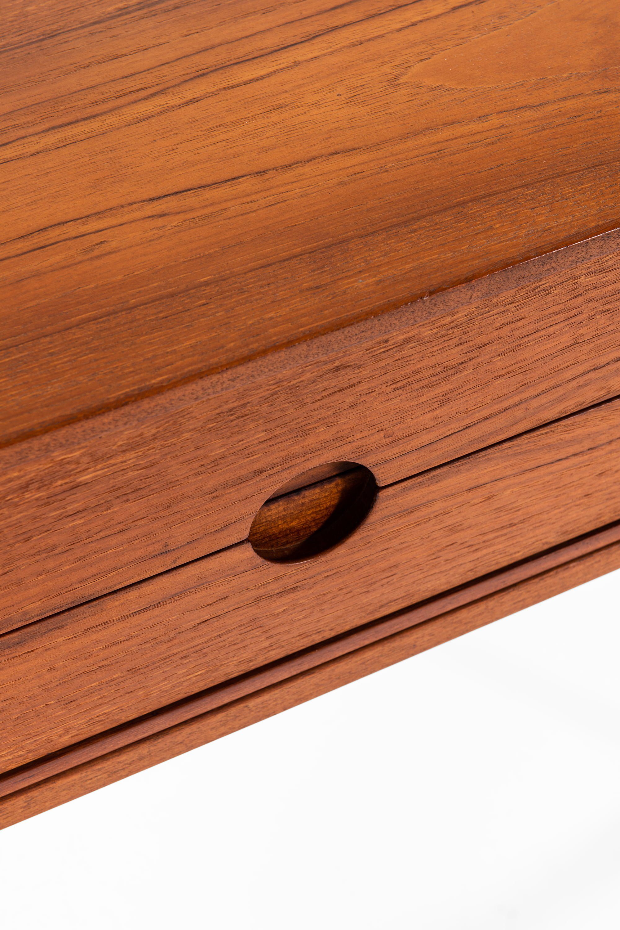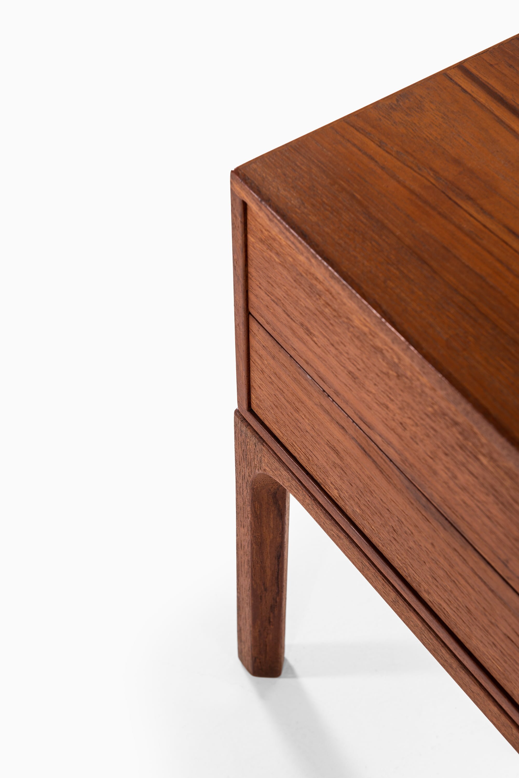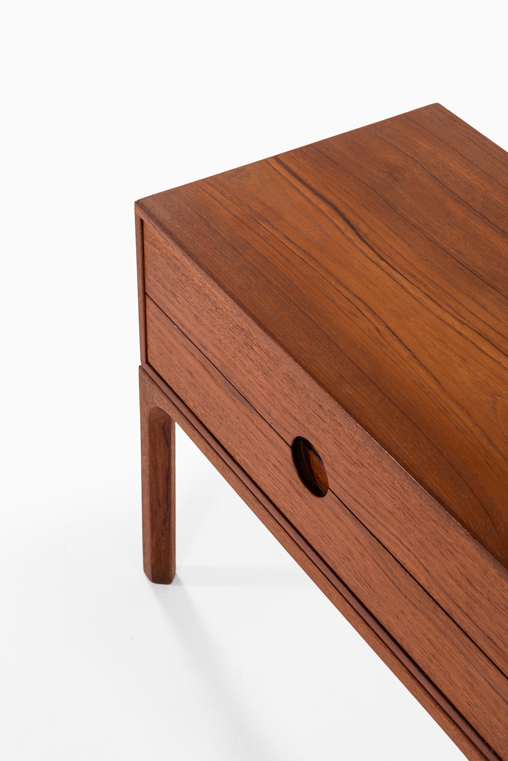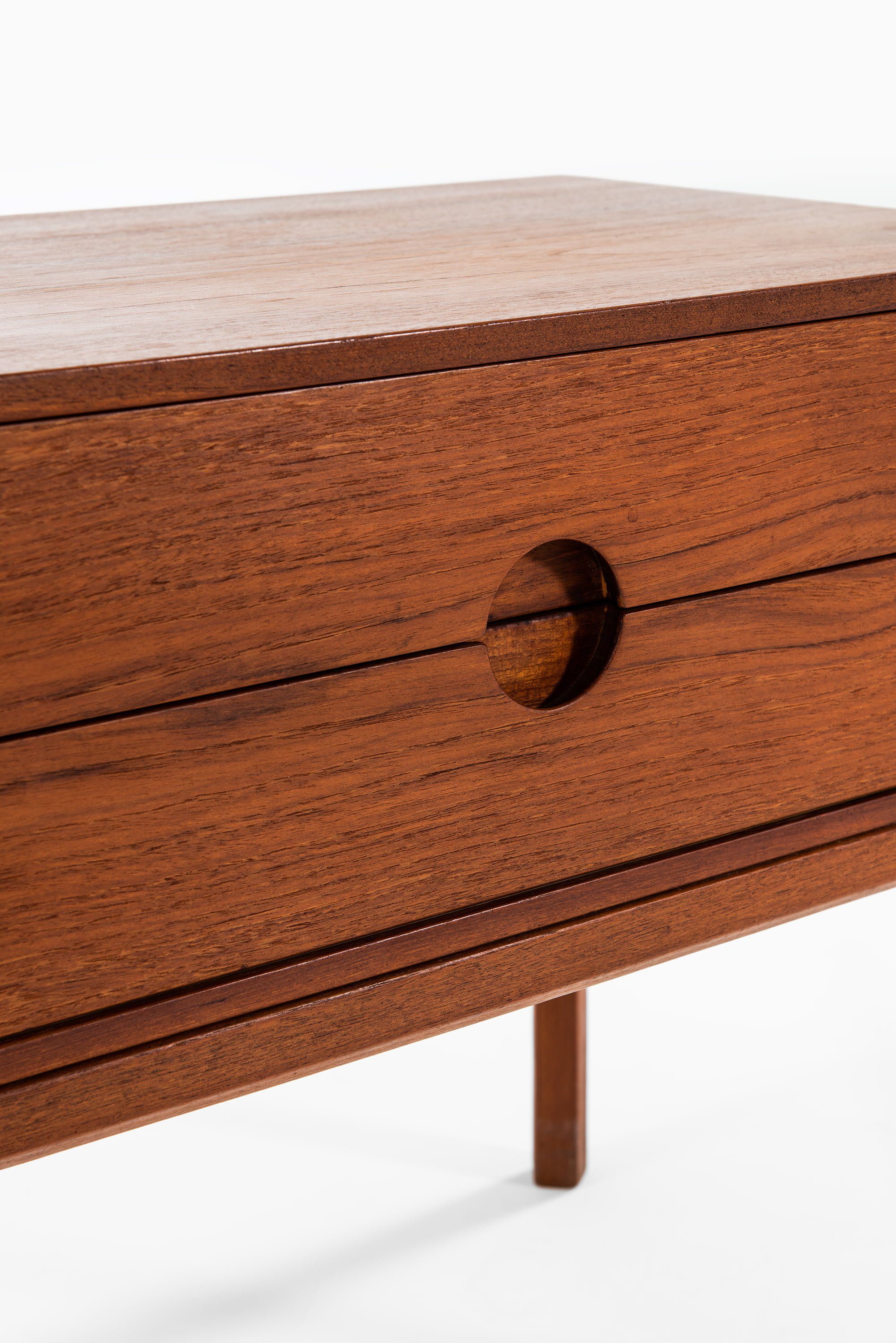 This rare bedside or side table, model 384, was designed by Danish designer Kai Kristiansen and produced by Aksel Kjersgaard in Denmark during the 1950s. It exemplifies the restrained elegance and functional clarity of mid-century Scandinavian design, characterized by its refined proportions, clean lines, and dedication to craftsmanship.