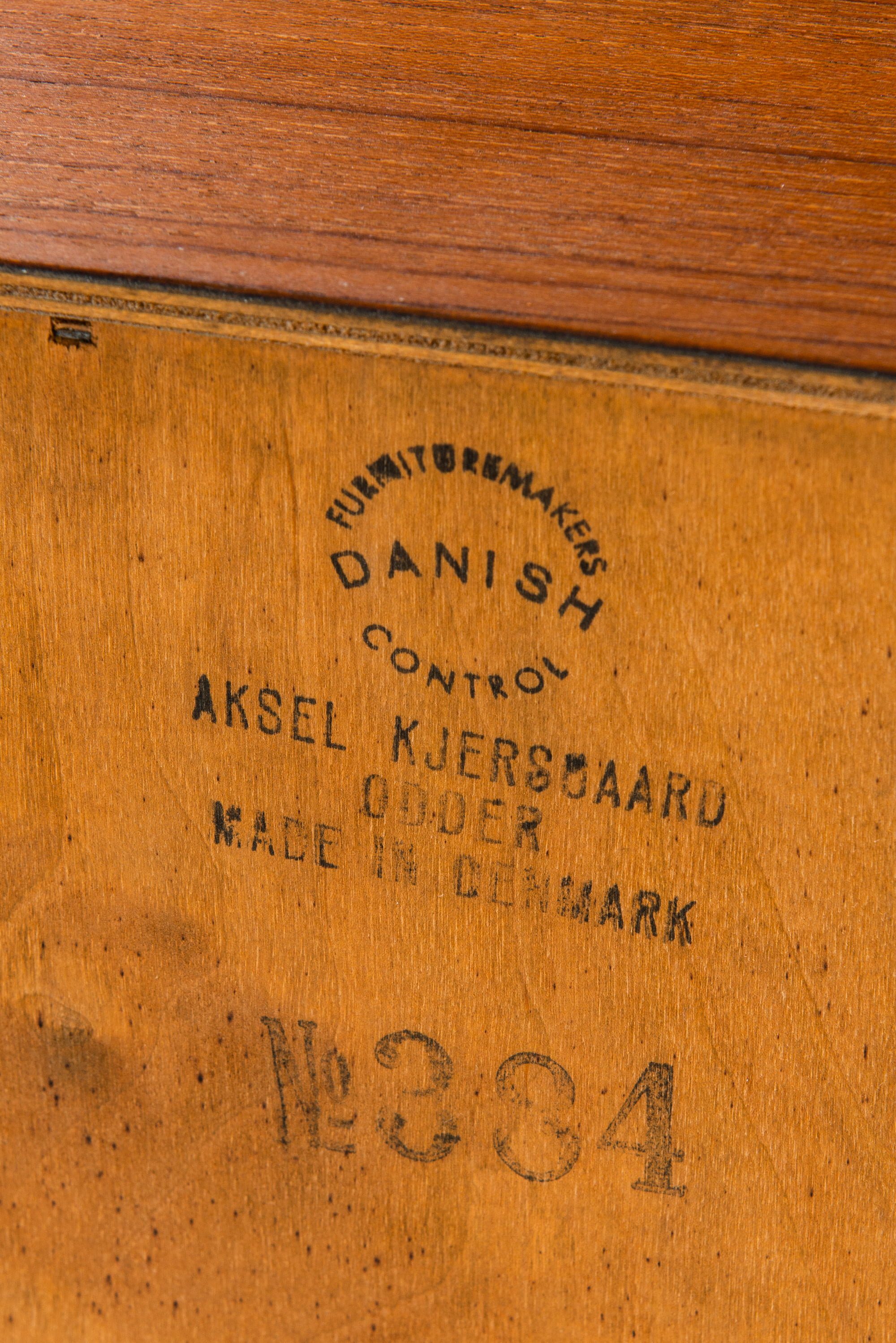The table is a testament to Kristiansen’s design philosophy, which prioritized practical utility combined with sculptural elegance. Aksel Kjersgaard, known for his high-quality cabinetmaking and collaborations with leading Danish designers, produced many of the era’s most refined wooden furniture pieces, and this model is a notable example of their shared commitment to timeless modernism.