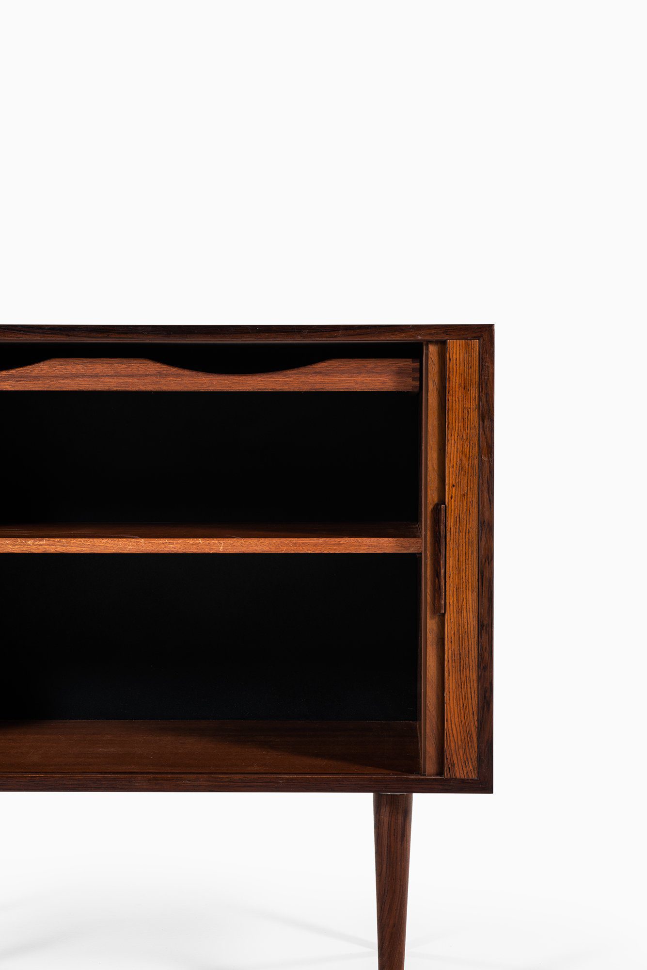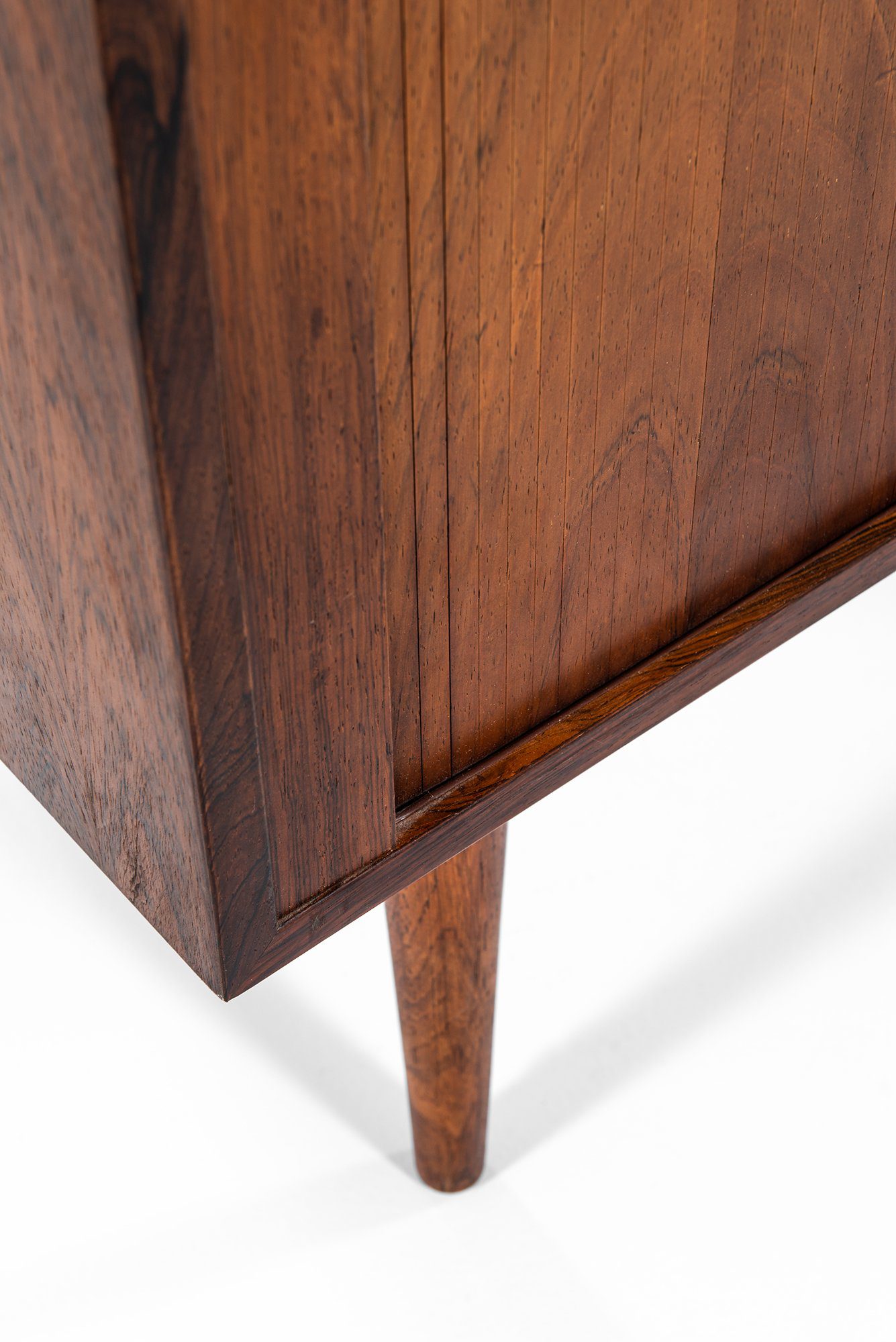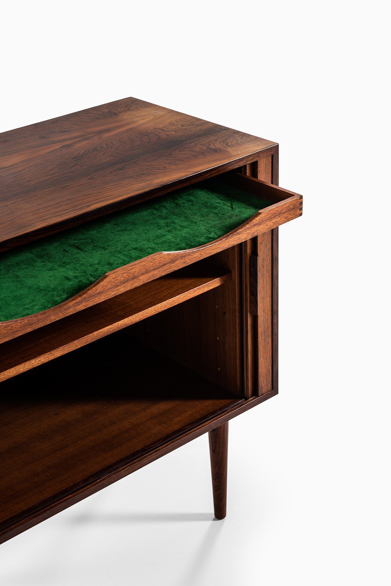 This small sideboard, model 42, was designed by Kai Kristiansen and produced by Feldballes Møbelfabrik in Denmark in 1958. The piece represents the refined precision of Danish mid-century cabinetmaking and Kristiansen’s commitment to elegant functionality and proportion.