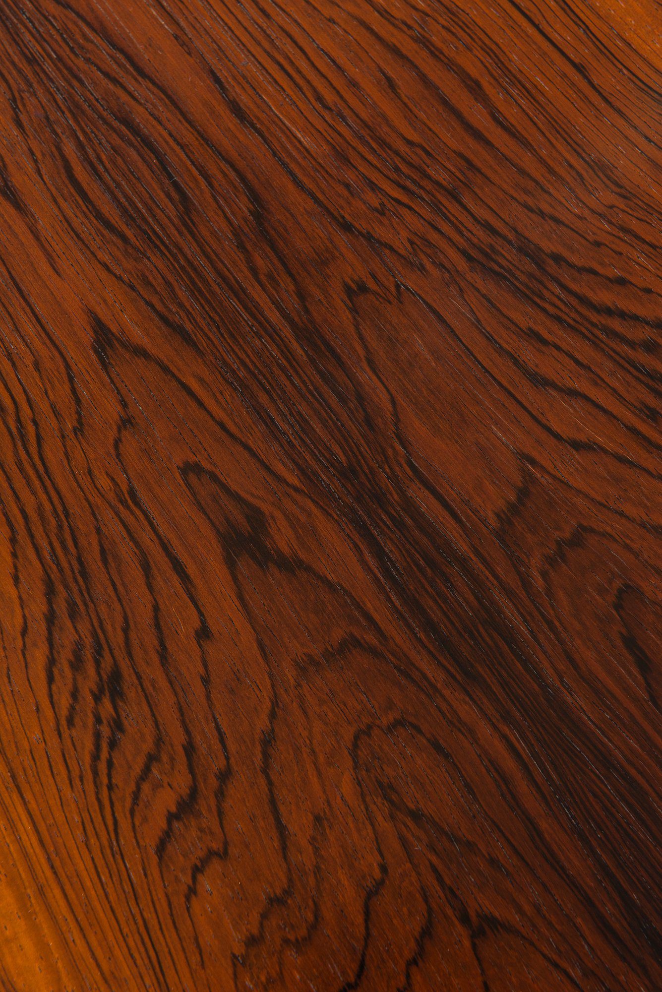 Executed in richly grained rosewood, the cabinet displays a deep, warm tone and expressive veneer patterning that accentuates the natural rhythm of the material. The craftsmanship is evident in the subtle detailing: integrated handles carved directly into the door fronts, precisely mitered corners, and slender, tapered legs that lift the cabinet with lightness and balance.