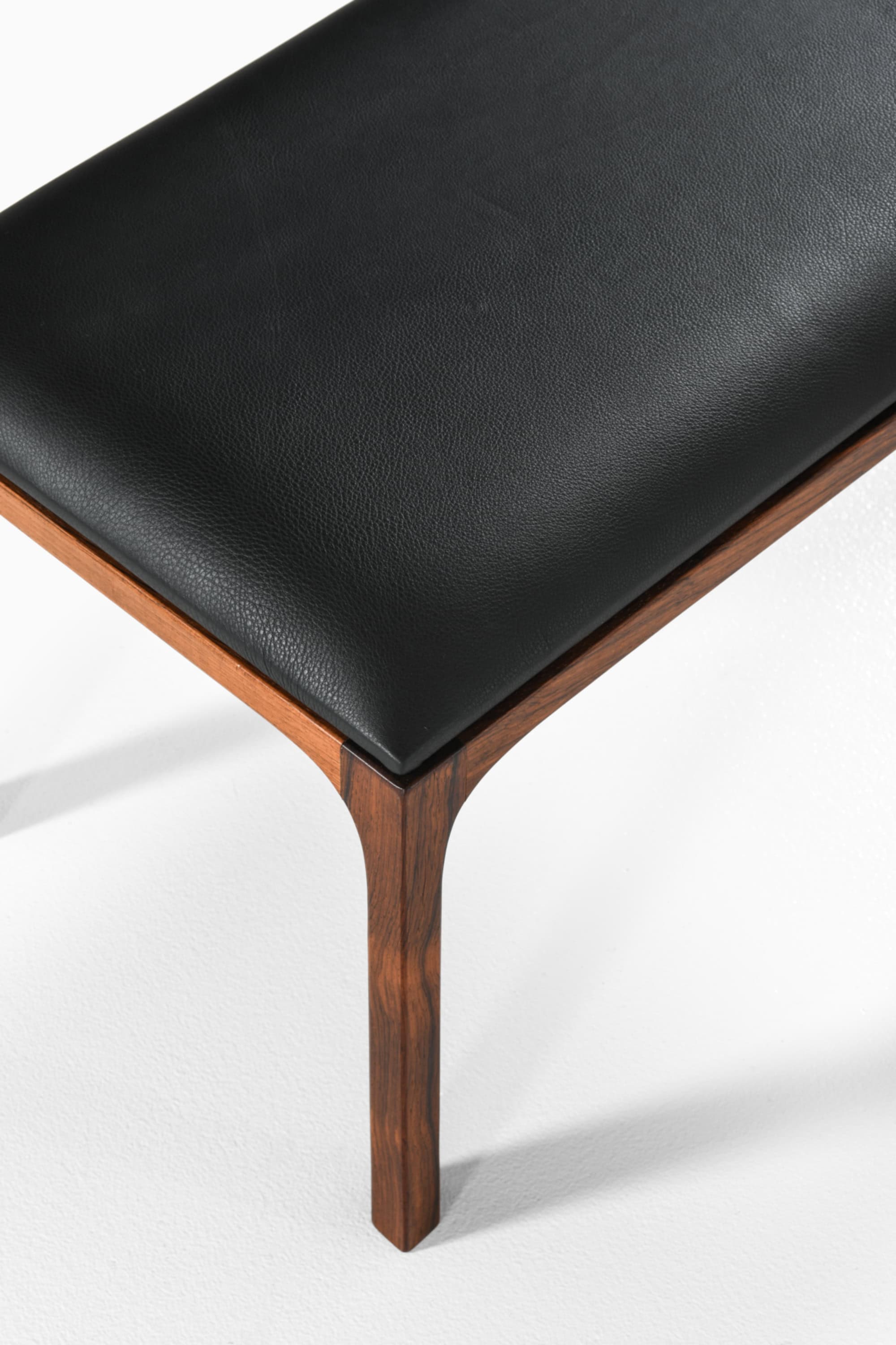 Measuring 60 cm in width, 36 cm in depth, and 35 cm in height (23.6 x 14.2 x 13.8 inches), this example remains in excellent vintage condition with only minor signs of use. The combination of rosewood and black leather lends the piece a restrained sophistication, characteristic of Kristiansen’s design language and the Danish Modern movement’s pursuit of simplicity through craftsmanship and material excellence.