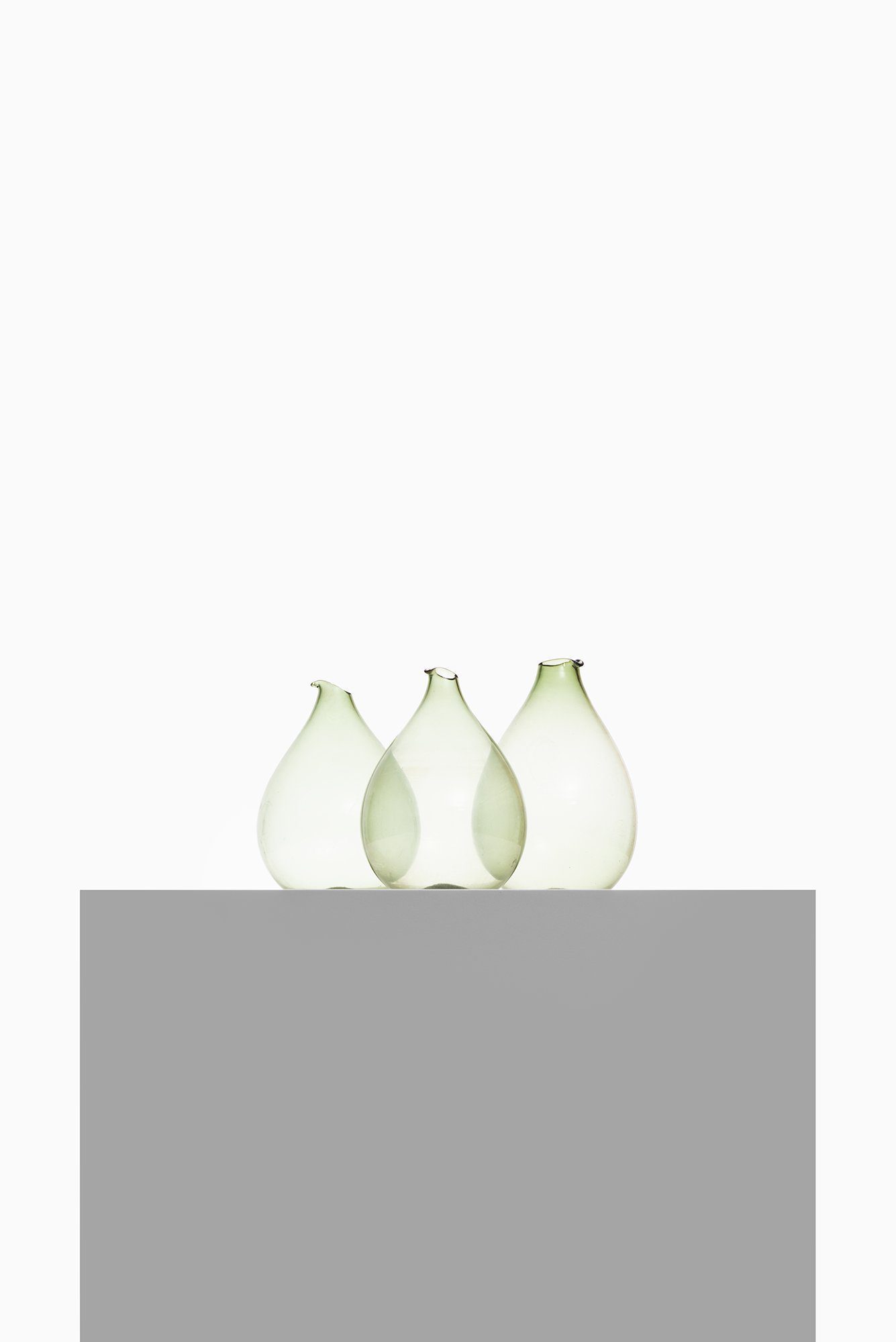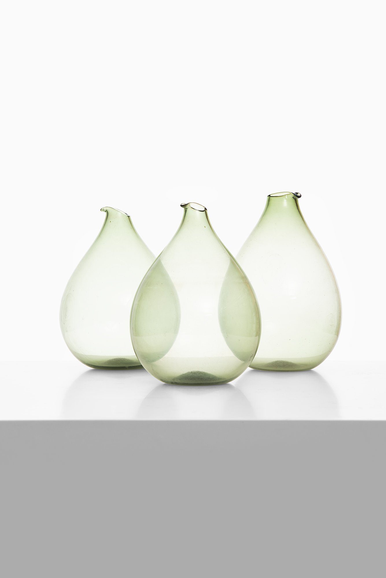 This set of three glass vases was designed by Kjell Blomberg and produced at Gullaskruf glassworks in Sweden in 1963. The group represents a refined example of Swedish mid-century glass design, characterized by controlled organic form and restrained use of color.